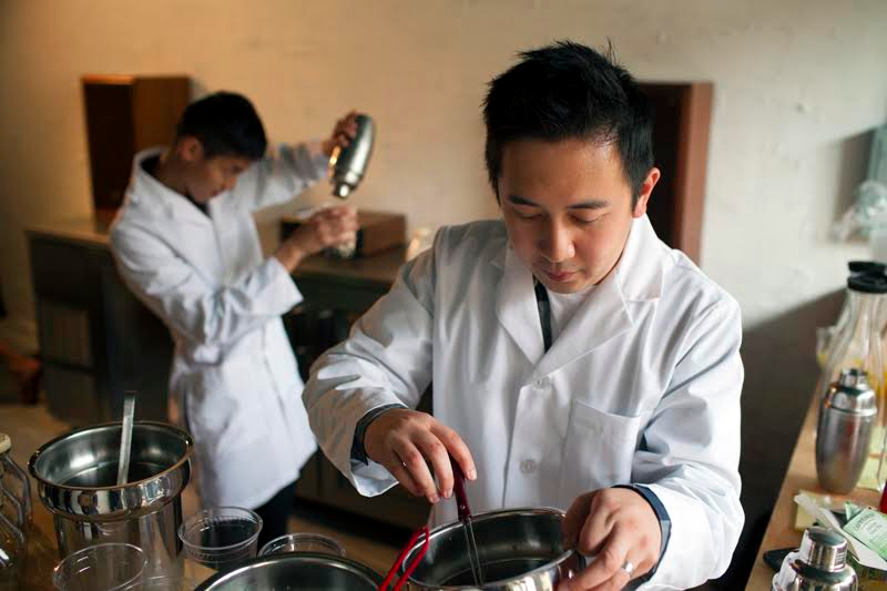 In 2011, after much careful study, Bin and Andrew nailed a winning recipe and set up a pop-up stand in their friend’s restaurant, Ken Ken Ramen, donning white lab coats while at work to pay homage to the chemistry of their adventure. Also, Breaking Bad. This marriage was fortuitous, and the rest is history.