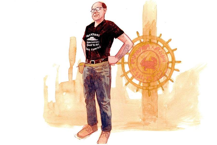 Living in San Francisco means being enamored by the legend of Emperor Norton. It means seeing Frank Chu and telling him, “Give ’em hell, Frank!” Wondering when Omer, a.k.a. “Bum Jovi,” stopped playing horrible guitar on Valencia. Being terrified of the Filipino guy with the megaphone screaming about “honoring your mother and father!” at the cable-car turnaround. Mourning the death of the Bushman but not being sure which one died. Realizing that the death of the Brown Twins is really the end of an era. It means being absolutely gutted when you heard about Robin Williams, because he represented San Francisco at its very best.