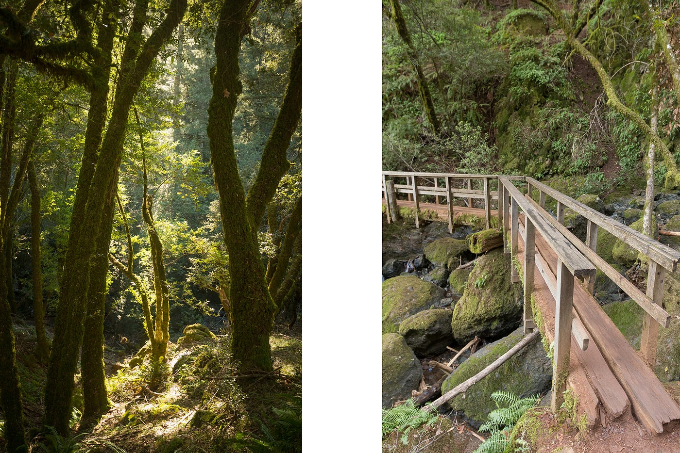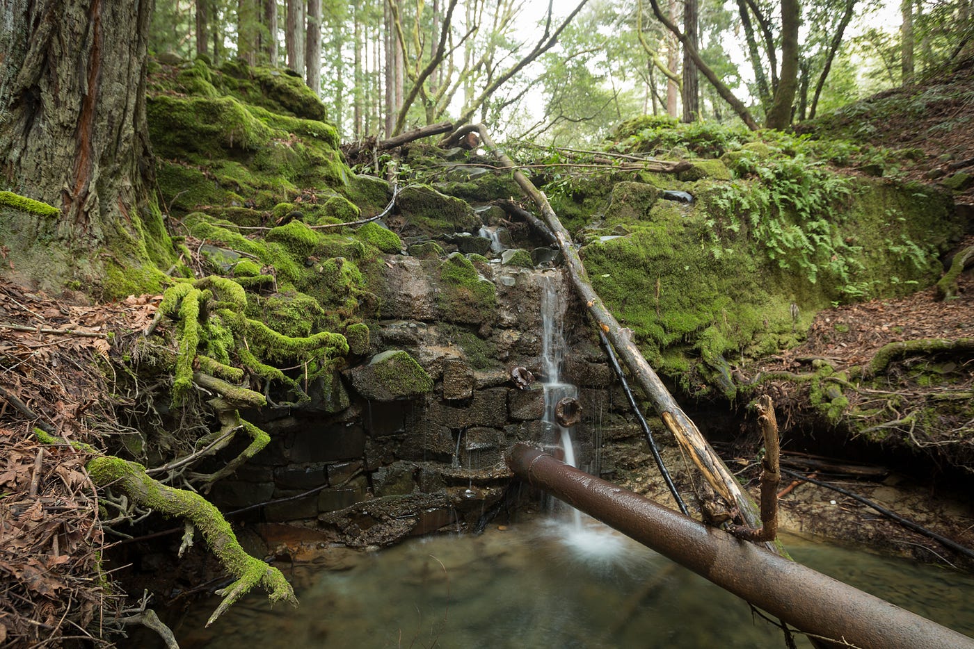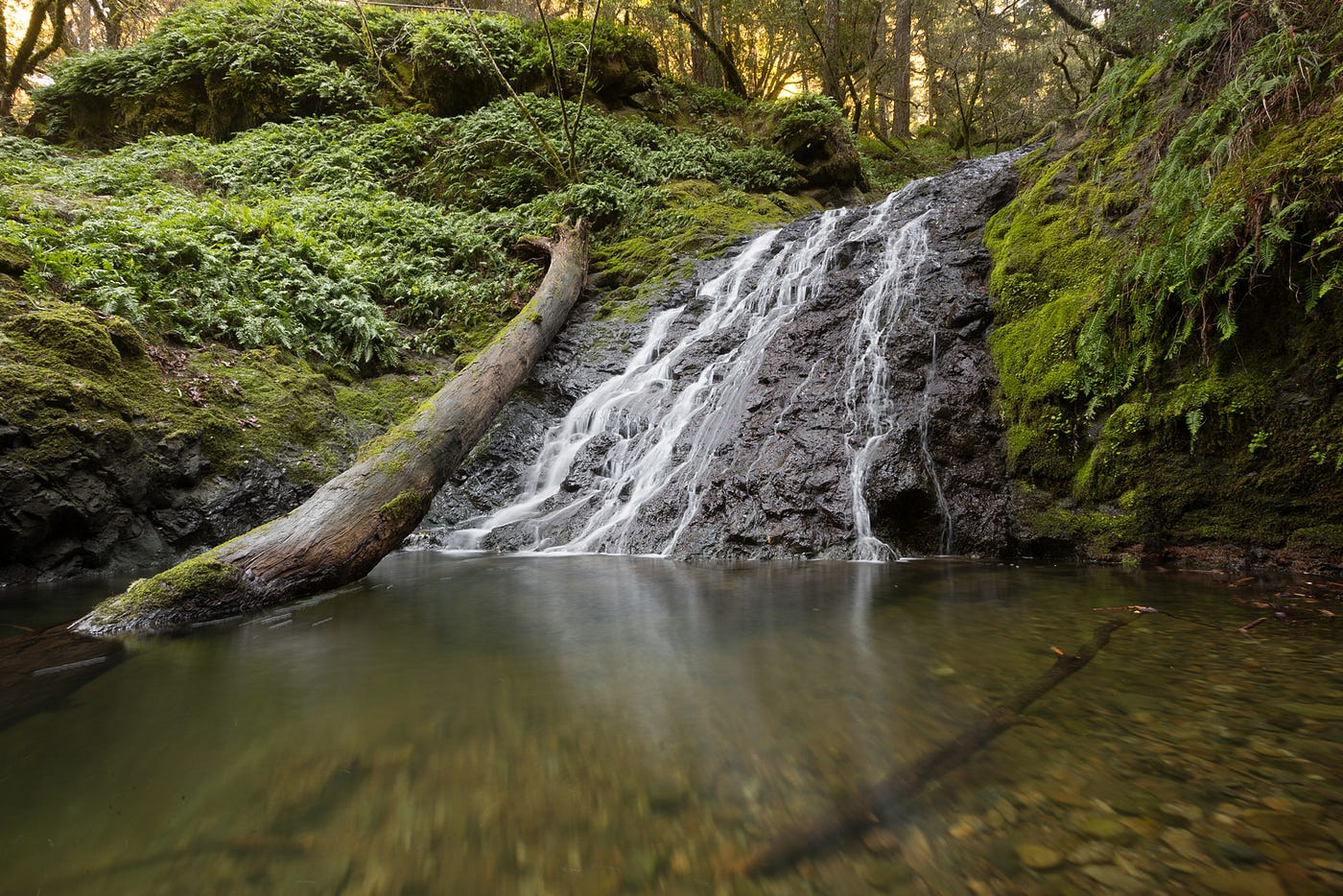 Almost the entire trail is covered by trees, and every surface that’s not being walked on is blanketed in moss. It’s the kind of scene where you’d expect to find fairies and gnomes. The creek fills in pools at the bottom of each waterfall that look inviting after a long hike, but swimming here is totally off-limits. Alpine Lake serves as the main source of drinking water for Marin County, and nobody likes hiker-flavored water.