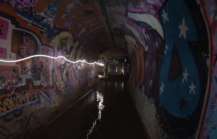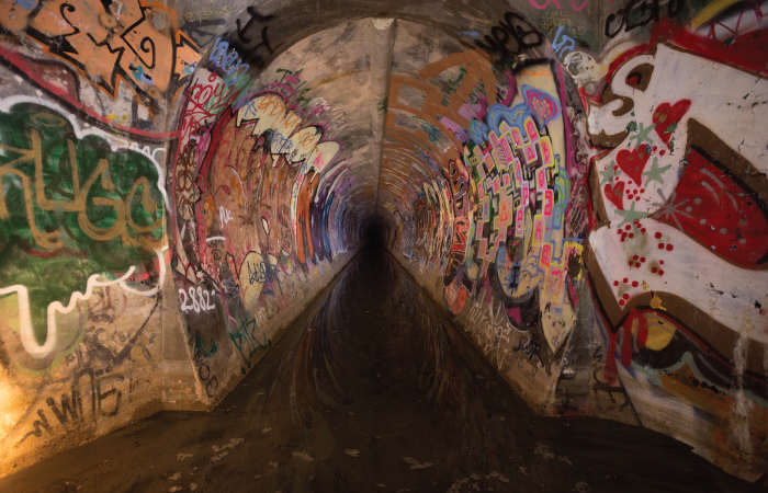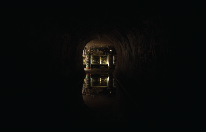 In the early ’90s, my friends and I used to tape flashlights to the handlebars of our bikes and go riding around in underground storm-drain tunnels. There was a whole network of these tunnels under the city that sat empty for most of the year. We would go for miles snaking up and down the sides of the tubes, clapping and yelling to see how far our echoes would carry, eventually popping out in some other part of the city covered in cobwebs and bat guano. When the tubes got too small, we laid down on skateboards and kept going. If we found a flooded part, we taped garbage bags around our legs and crossed our fingers.
