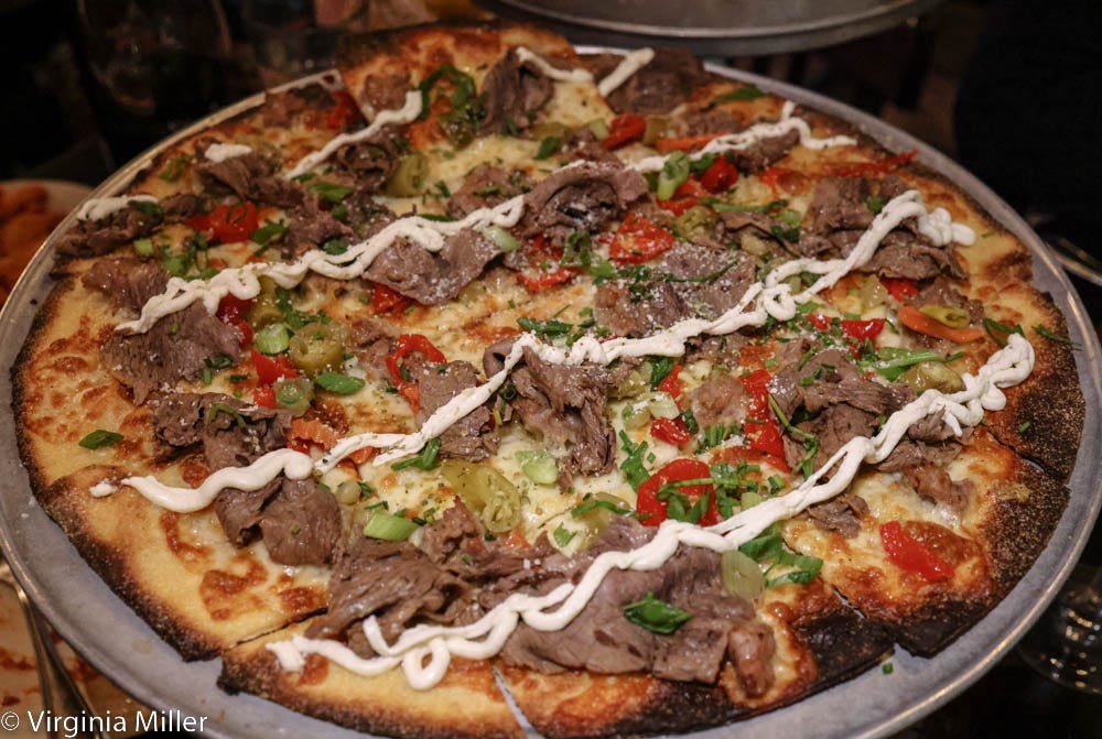 My all-time favorite Capo’s pizzas, however, include award-winning Cal Italia, a white pie originally (and still) at Tony’s Pizza and worth ordering in any form. This combo of gorgonzola, asiago, parmigiano, imported fig preserves, prosciutto di Parma and balsamic reduction is a Tony classic. But the Italian Stallion likewise deserves to be so. Another white pie, I find this one best in Chicago cracker-thin form to partner with that thinly sliced Italian beef. This crispy, meaty combo is enhanced by crumbled Chicago-Italian sausage, chives, oregano, spicy-sweet peppers and the clincher: horseradish cream sauce. Flour-based crust gains texture from a dusting of cornmeal, while a key to its impeccable taste and crunch is European butter and a bit of lard.