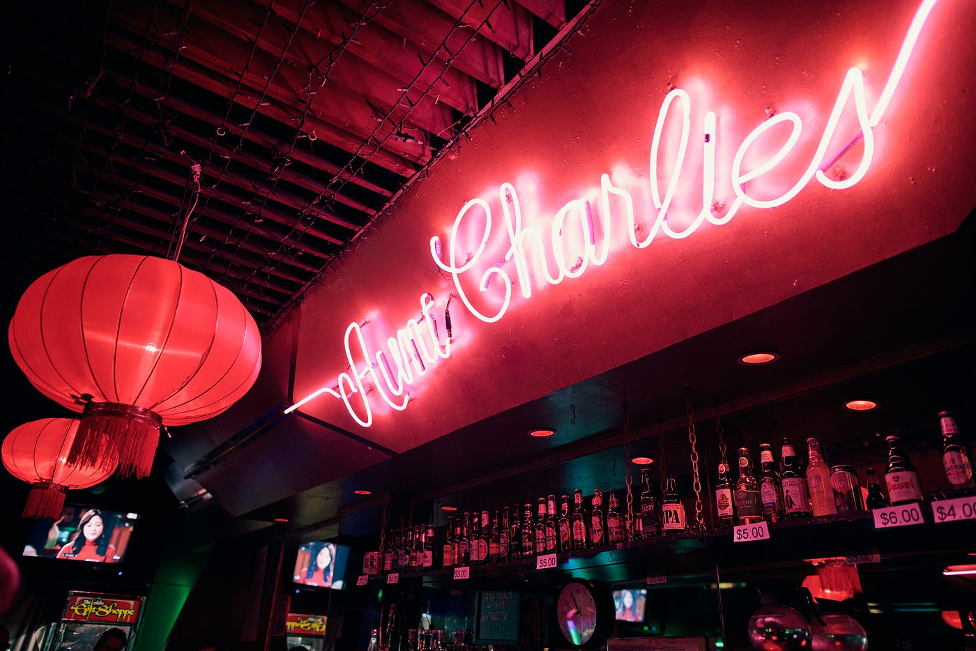 The bar, dimly lit except for a neon pink “Aunt Charlie’s” sign and three red lanterns, is manned by Joe, who is “stern and doesn’t hesitate to yell,” Mini Minerva says.