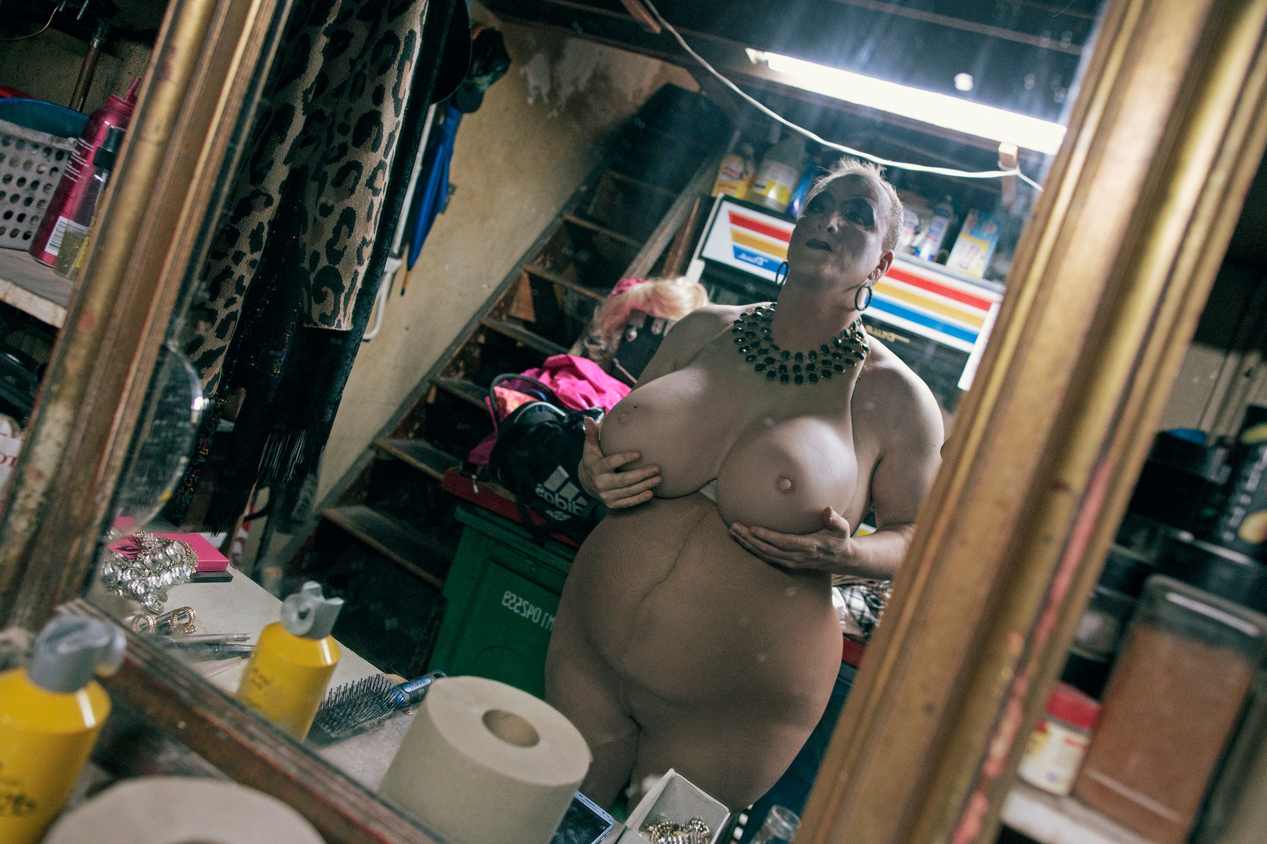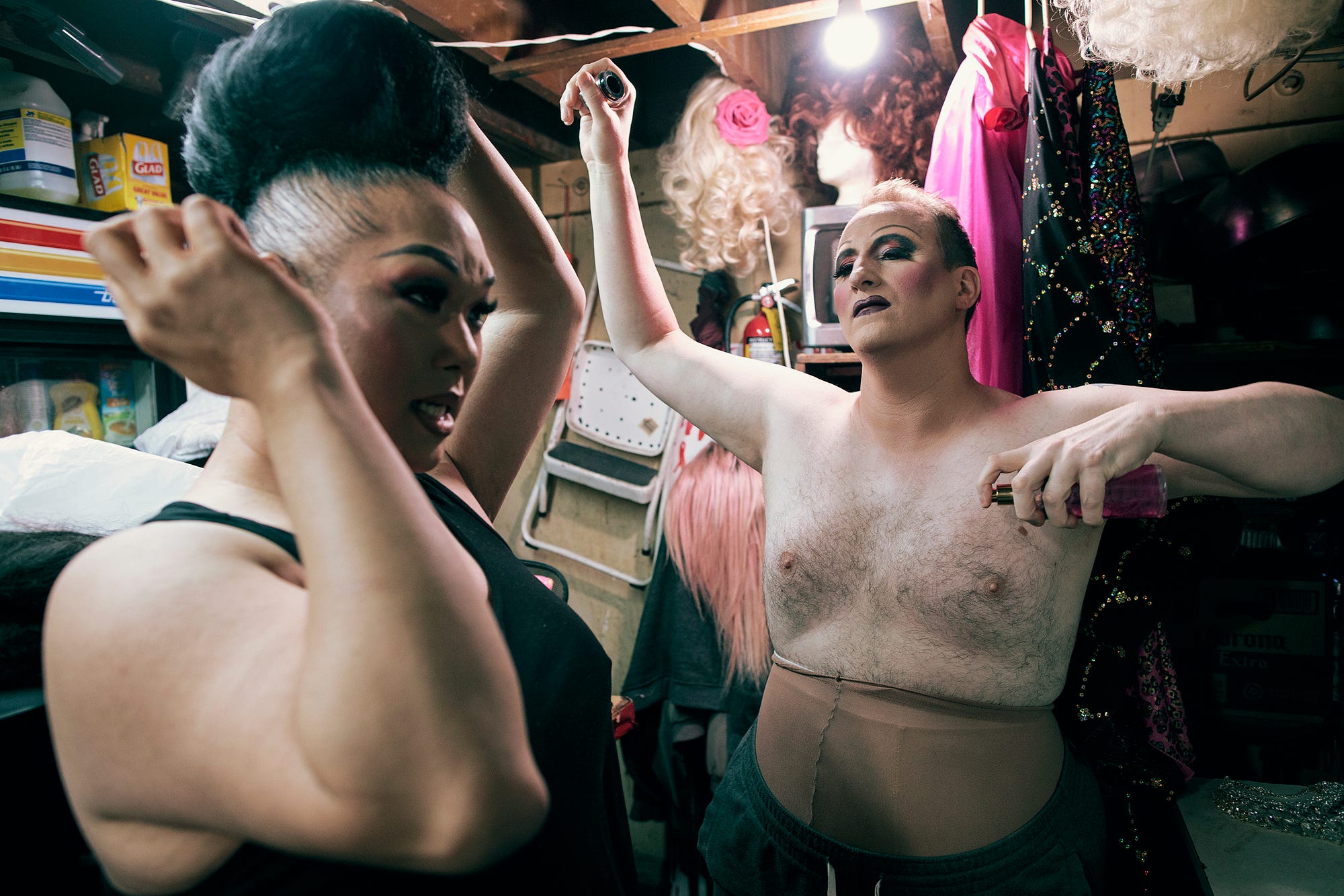 “It costs a lot to look this cheap” is the motto of the Hot Boxxx Girls, and that’s very much a reality. The gowns, wigs, makeup, jewelry, and bright nails add up quickly. In some cases, body modifications and hormone treatments are part of the package.