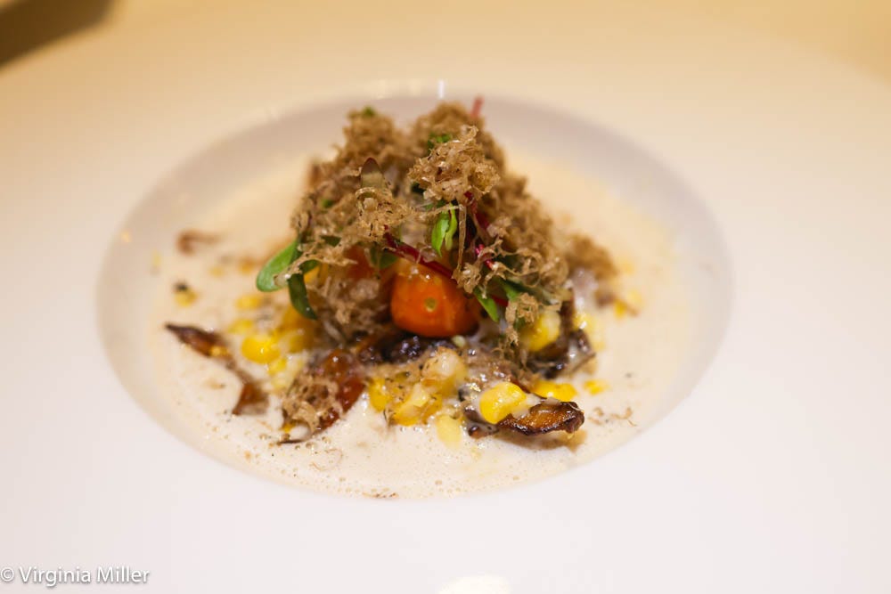 Unexpectedly, the dish that wowed most was sweet corn ricotta agnolotti. Yes, it’s an Italian pasta, but with French spirit, down to wild mushrooms and mushroom cream. Think of it as a sister to Parisian gnocchi and French pastas like coquillettes or crozets. Stuffed with fluffy ricotta in that mushroom cream with fresh corn, toy box tomatoes and Pecorino Romano, this dissolve-in-your-mouth pasta gains French nuance from a shaving of black truffles. I left dreaming of this dish — and we have a lot of Italy-worthy agnolotti pasta in town.