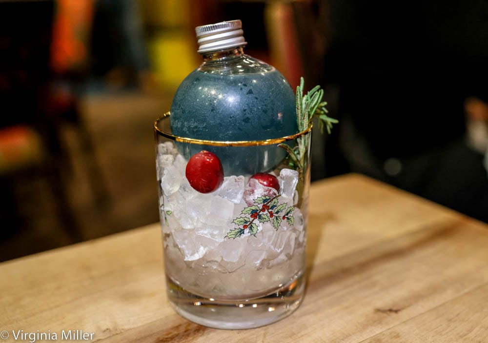 Running through December 31 is their holiday menu with a beautiful run of low-ABV drinks (Mejicanos has long had a hand with sherry and the like), like a blessedly savory 50/50 Martini amped up with juniper tincture and an olive oil wash. There are mini-shots, like Boozy Egg Nog, and a striking Blue Christmas cocktail served in a clear Christmas ornament ball glass on ice. But of the six cocktails I tasted, I was mesmerized by three in particular:
