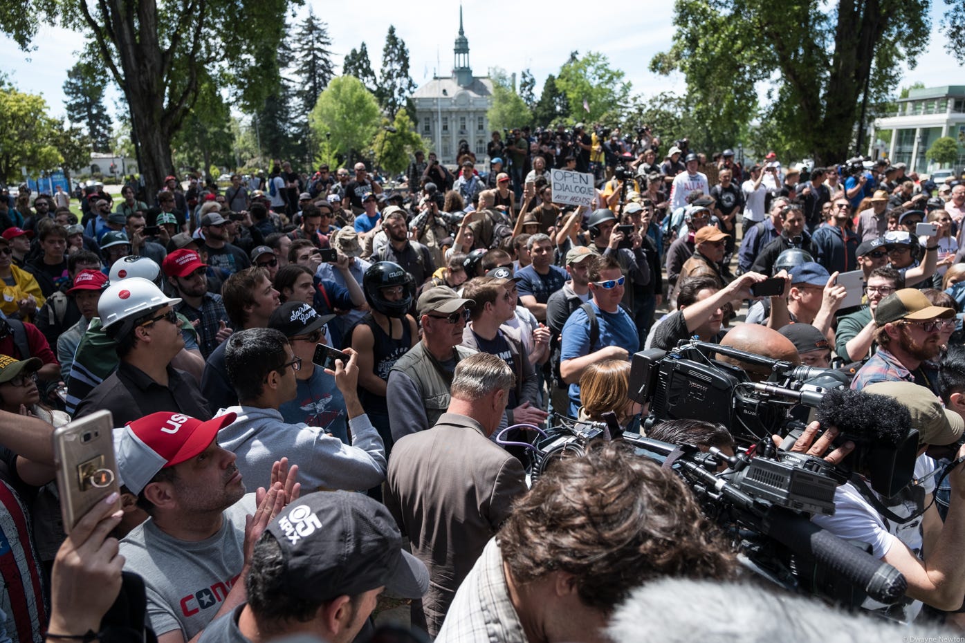 Interestingly, the alt-right had a somewhat diverse cross section of supporters at the microphone: blacks, whites, Asians and Latinos stood alongside the Oath Keepers, American Freedom Keepers, Sovereign Nation, Bikers for Trump, Latinos for Trump and various and sundry neo-Nazi, anti-immigration, skinhead and militia groups.