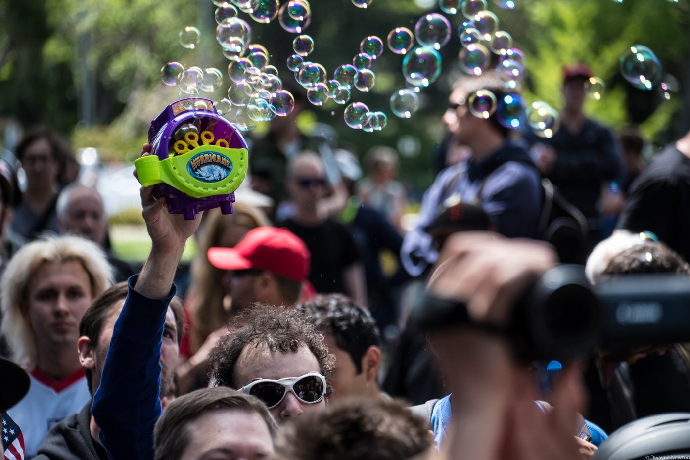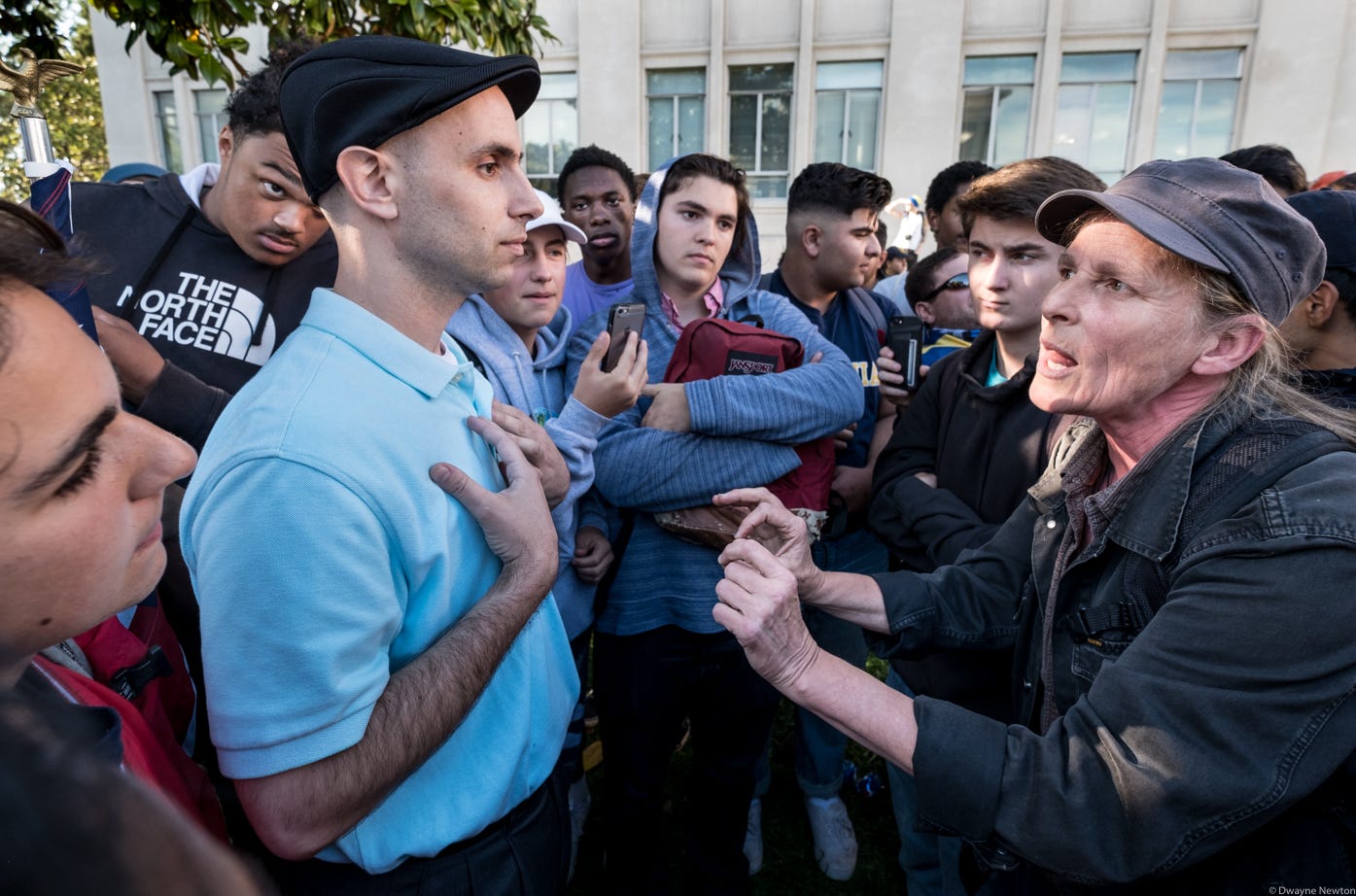 But the battle gear was for nought. The anti-fascists had better things to do. Speeches were spoken, and fists and slogans were hurled over Berkeley police in riot gear at their opponents across the street. Vigorous debating wasn’t quite the battle they came for. But no blood was shed — they got their free speech, and the Berkeley clean-up crew got a break.