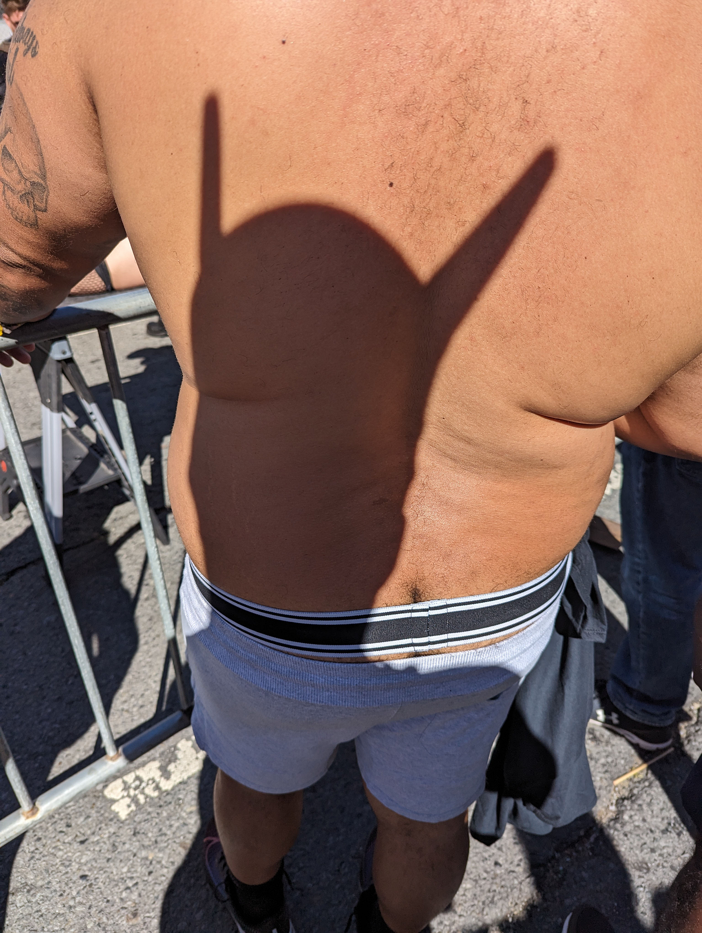 I entered at 8th and Folsom, taking off my shirt and tucking it into my back-right jeans pocket. Yes: If you know, you know.