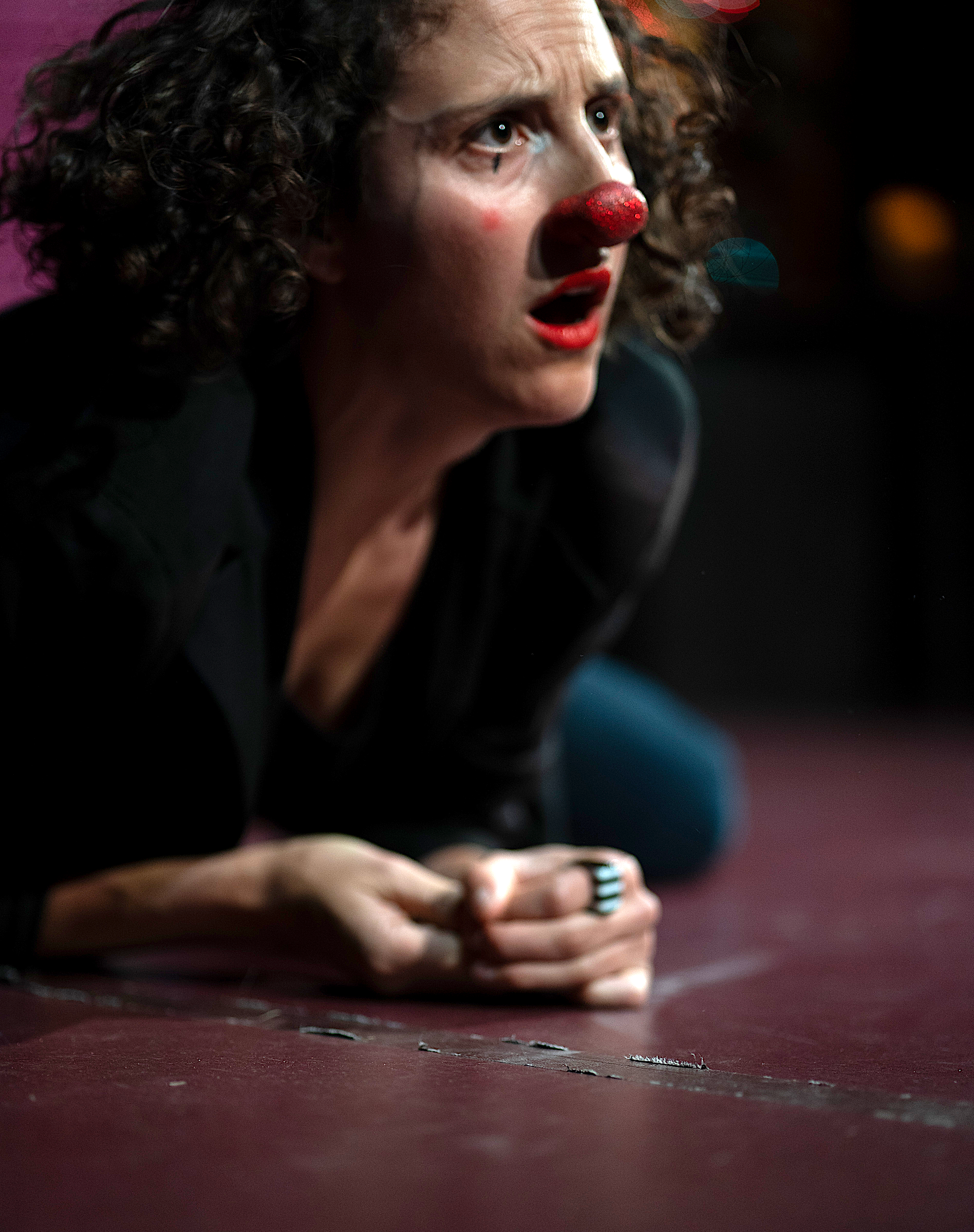 The modern Western clown tradition has French origins: Jacques Lecoq, Marcel Marceau, and Philippe Gaulier. Gaulier, mentor to Sacha Baron Cohen and Emma Thompson, uses via negativa, a method of excising all that is false to find humor propelled by authenticity. Clowns in popular culture have come to be seen as sad, self-loathing, or scary. We are fascinated by the dichotomy that clowns represent — happiness and suffering, artifice and reality. We believe there must be something broken inside clowns, driving a relentless need to amuse.