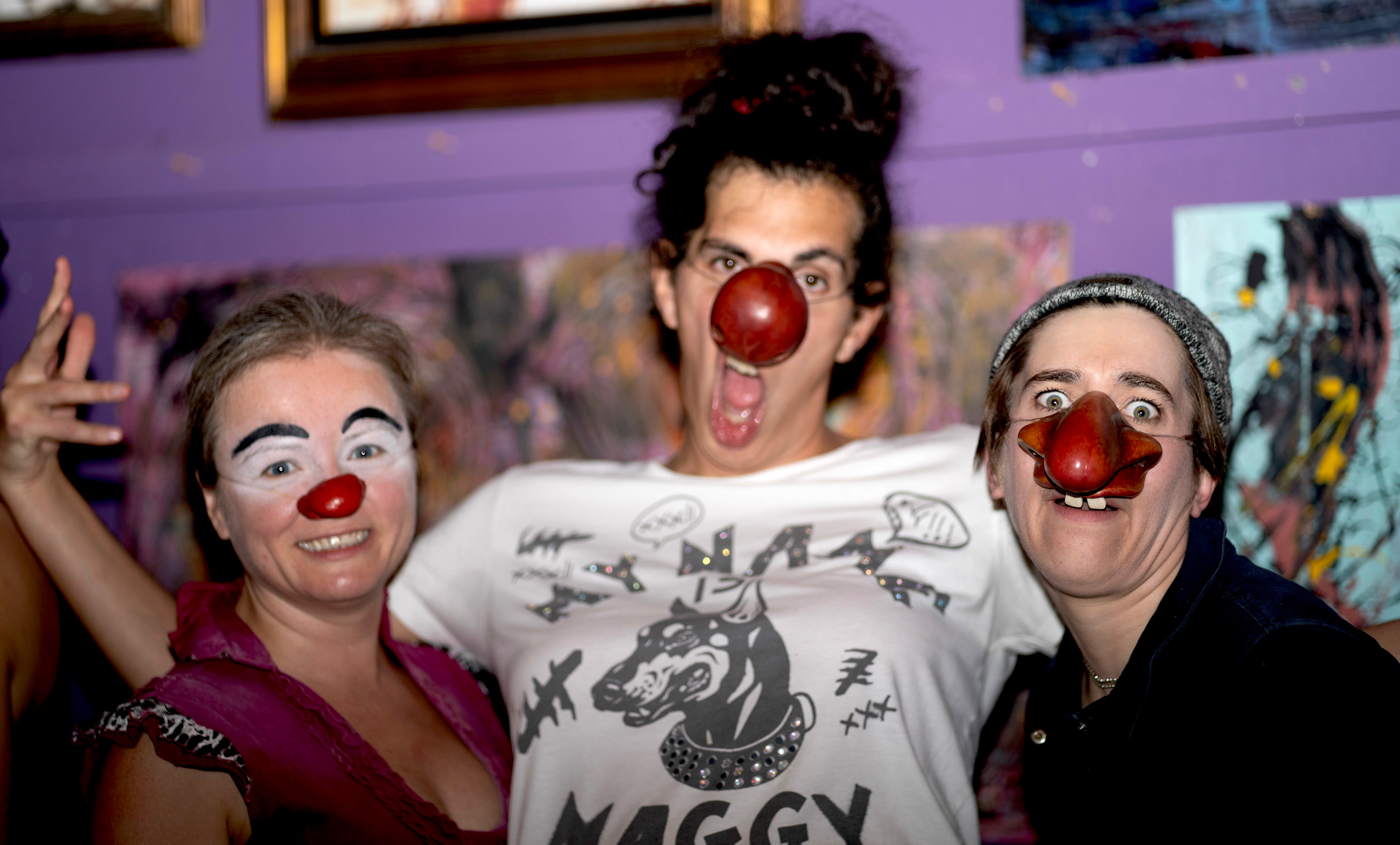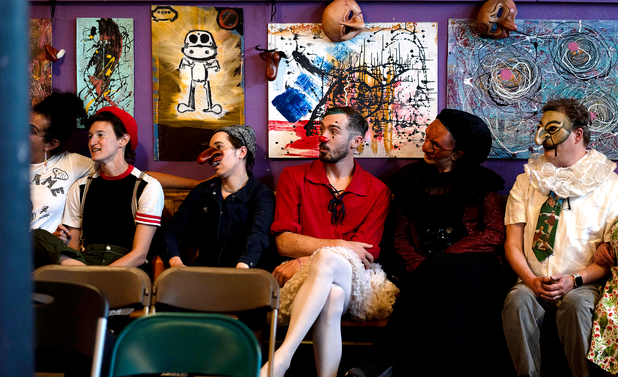 “In a clown show, everything that happens — everything is a gift. You have to work it that way,” Griffiths said. “In this space, the bus goes by, the train goes by, it’s loud in here. You have to roll with it.”