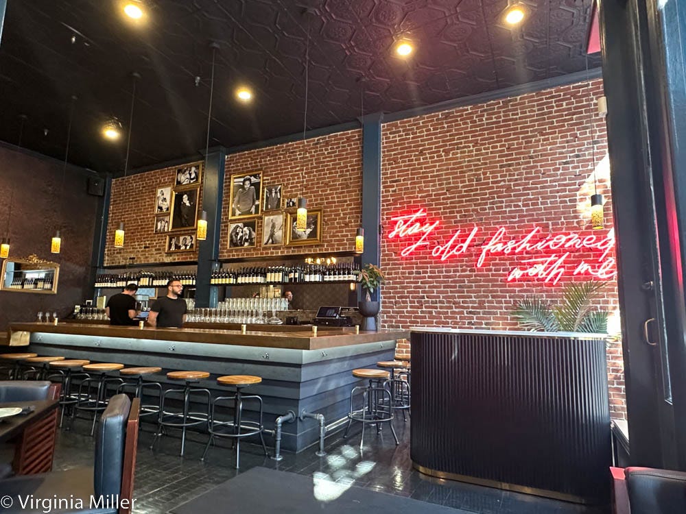 Menus are printed up simply with no frills and practically no description. The wine list, created by Perle Wine Bar’s Marcus Garcia, is likewise unadorned, heavy on France and California. Waitstaff were helpful in pairings as we indulged things in two of life’s greatest taste joys: Champagne and Chablis. We veered from Champagne Henriot Brut NV Rosé to a stony, mineral 2021 Louis Michel Chablis Villages, to a richer 2020 Bouchard Pere et Fils Bourgogne Blanc Reserve ideal with the lobster mac. A lean 2020 Francois Labet Burgundy Pinot Noir and earthy, layered 2016 Stephane Ogier La Rosine Syrah did the burger and bologna right. A craft beer list is underway, as is a full liquor license, ready for those 13 bar seats near a pink neon sign that reads, “Stay old fashioned with me.”