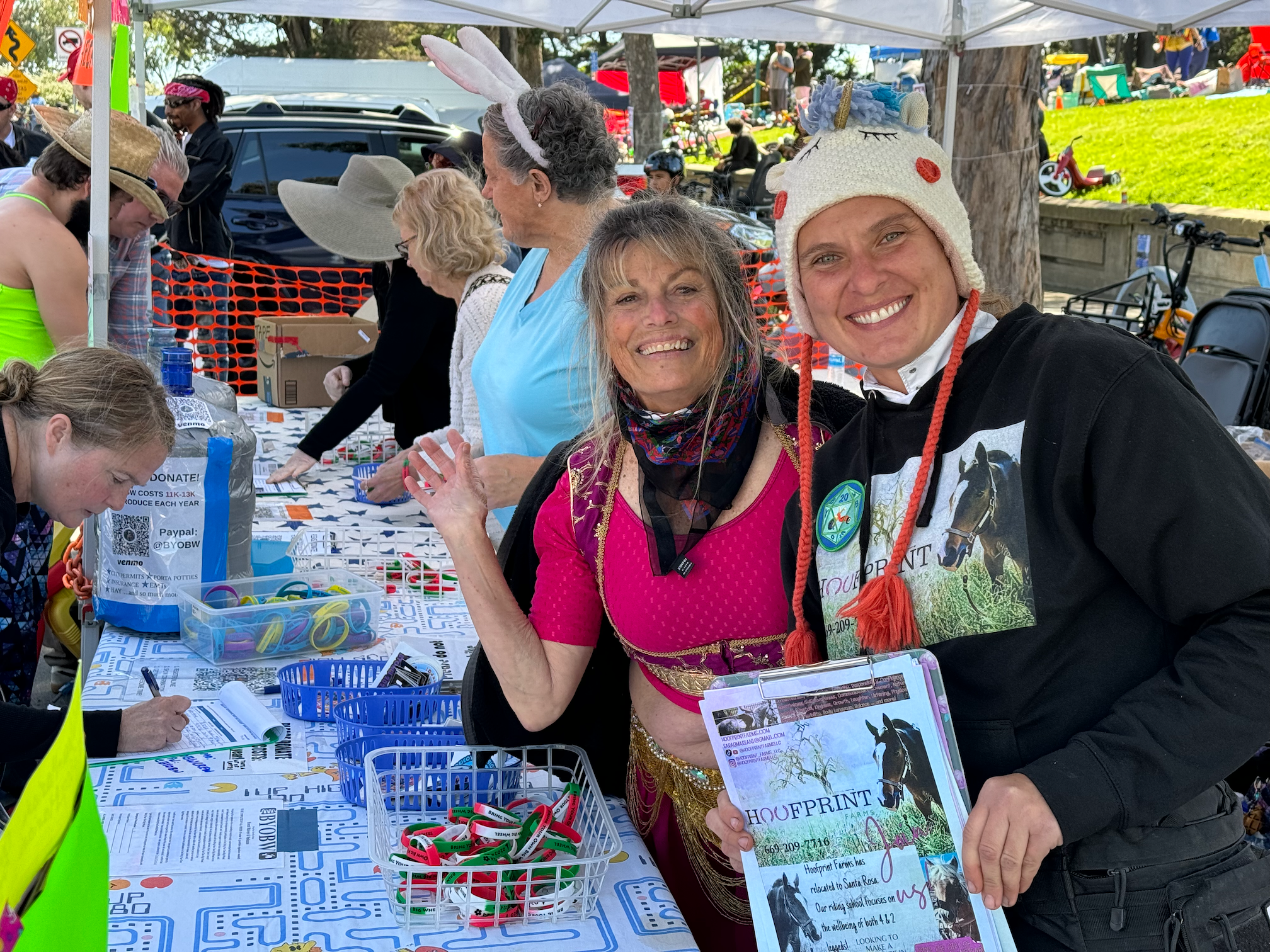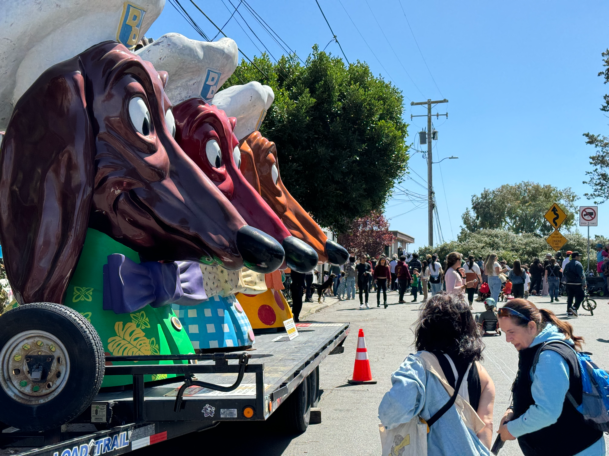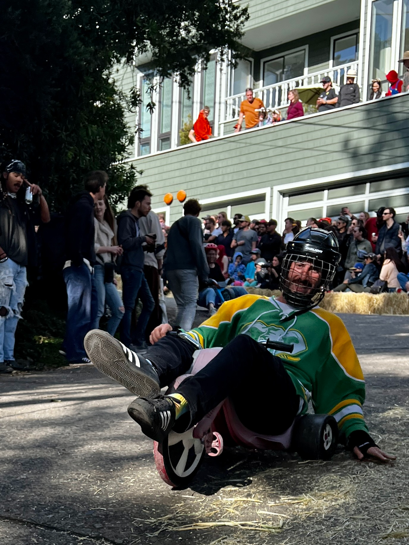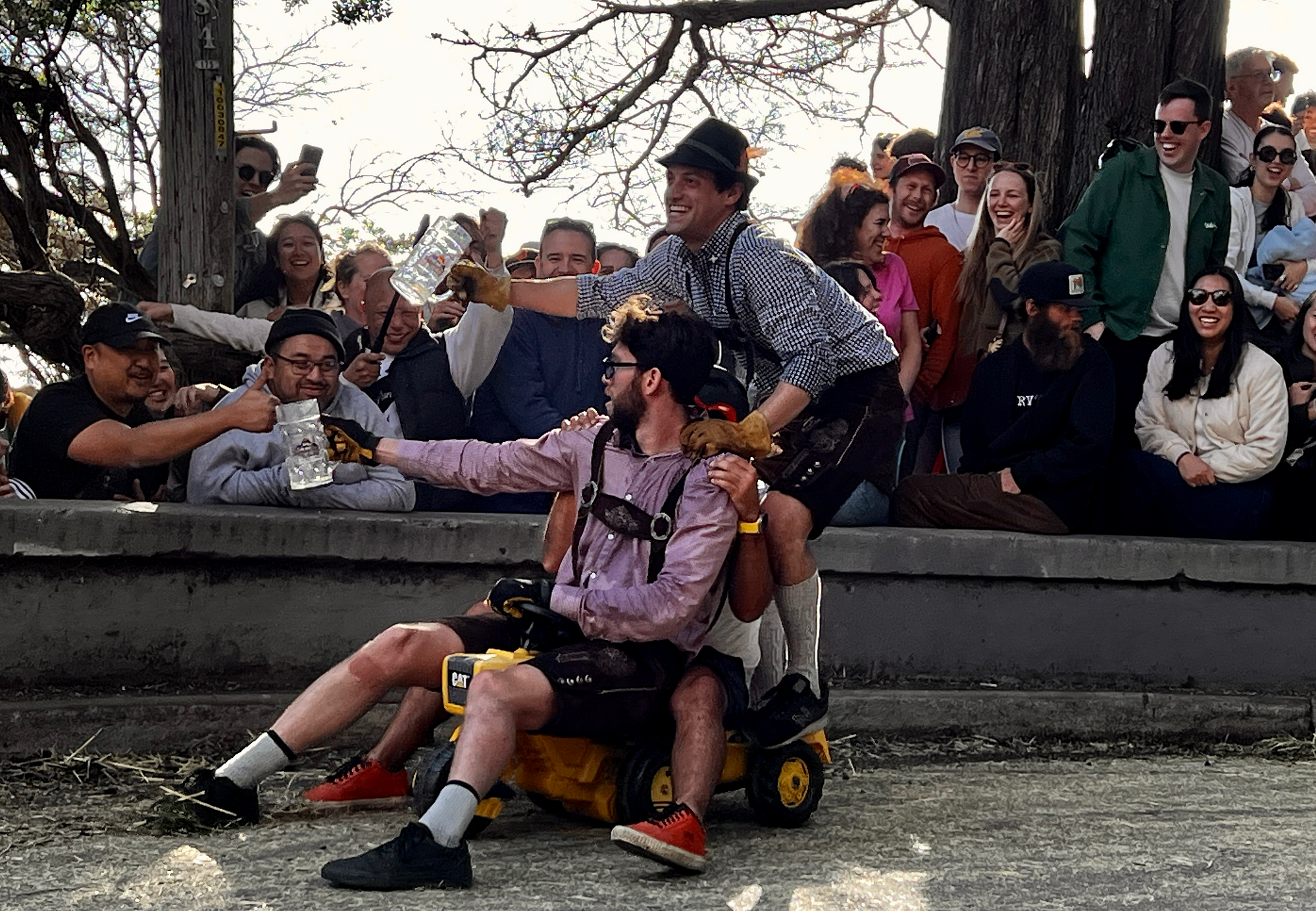 This year’s BYOBW, per usual, was not without its uncertainties. Rain threatened nearly all Bay Area Easter activities, so we were watching the weather forecast closely. But Sunday saw more riders and larger spectator crowds than I’ve seen in my decade-plus of volunteering, and the riders didn’t disappoint with costumes. Personal favorites: the He-Man riding a plush Battle Cat, a duo of gentlemen in lederhosen who tag-teamed their rides holding (sometimes full) beer steins, and a Rolleblade Ken who wore actual roller blades while also maneuvering his trike down the hill. Life in plastic is fantastic.