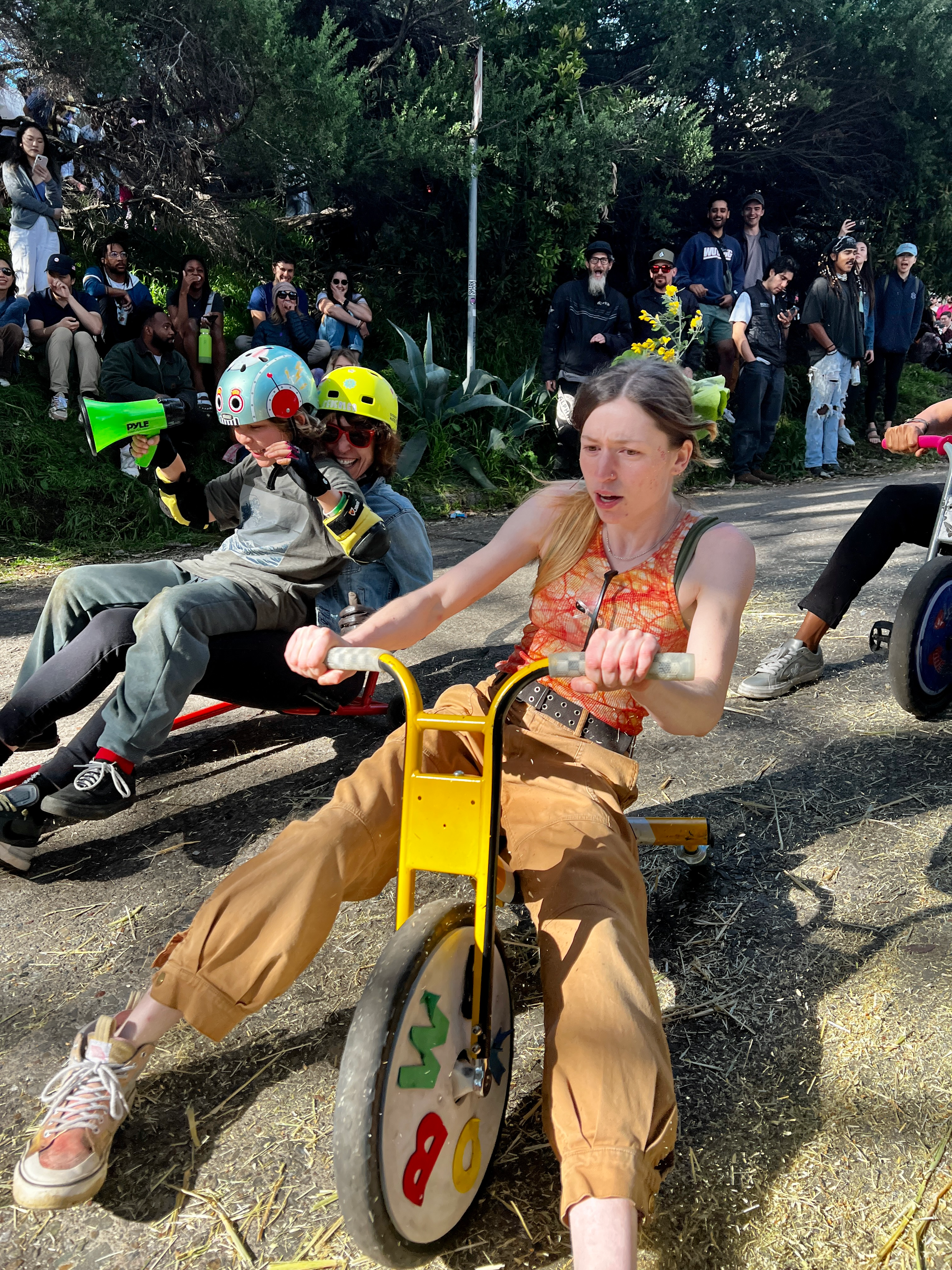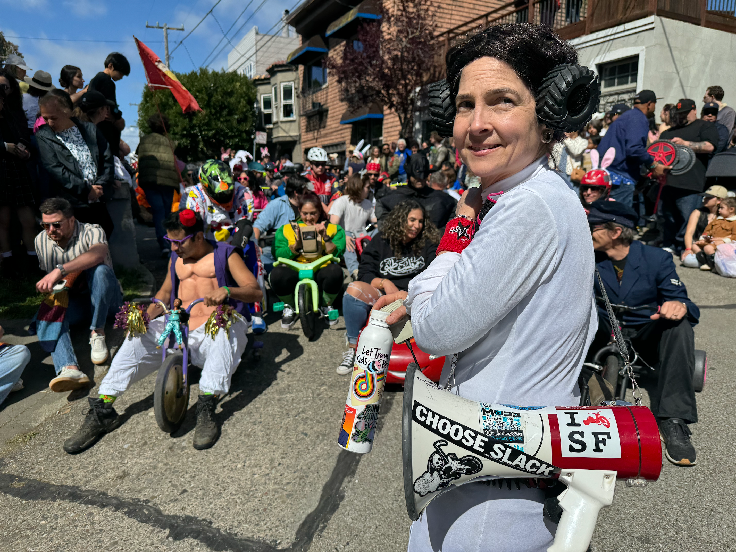 Every year on Easter Sunday I clip on my walkie-talkie and join over two dozen volunteers as a cacophony of hollow plastic wheels echoes against the Victorian and Edwardian façades of the homes on Potrero Hill. After paying homage to the city permitting gods, and in every kind of weather, we keep a careful eye as hundreds of riders gather for the opportunity to sit astride a Big Wheel and throw caution to the wind as they pitch themselves down the serpentine street and let gravity do the rest. Pads and helmets are optional, but signing a liability waiver is required: You ride at your own risk, bish.