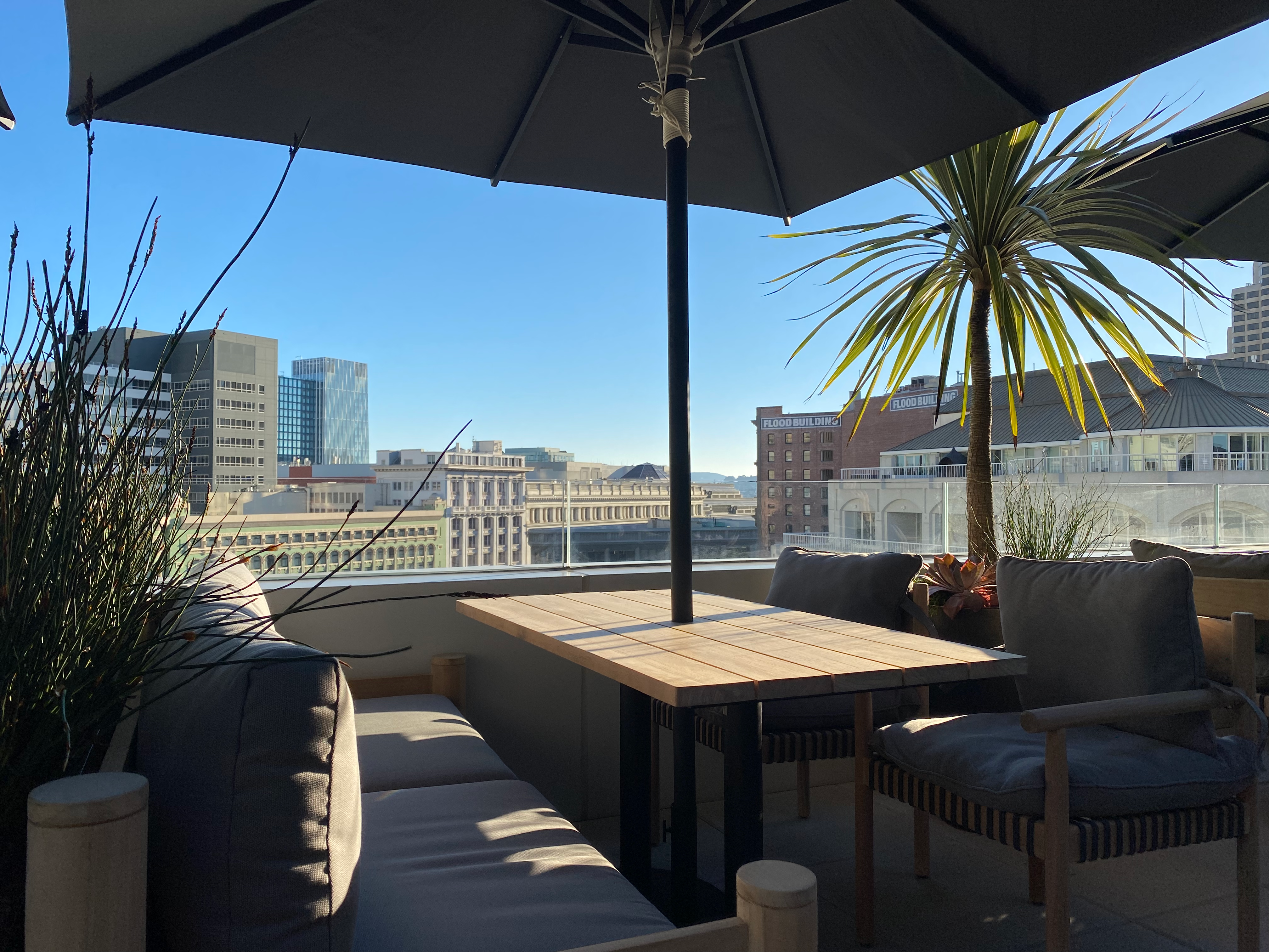 Slightly different is a San Francisco rooftop bar in late October. A stroke of genius, really: blue skies overhead for those early reviews instead of a foggy blanket nuzzling up against the tall buildings and driving influencers inside.