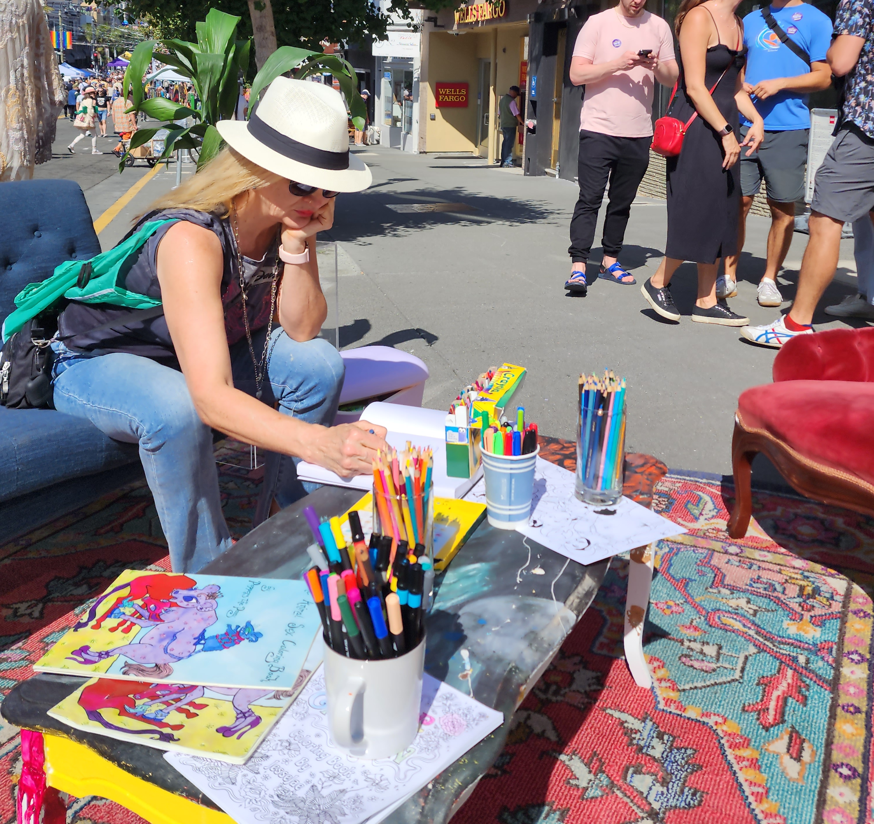 - Beautiful artwork in booths, on sidewalks, and in queer coloring books.