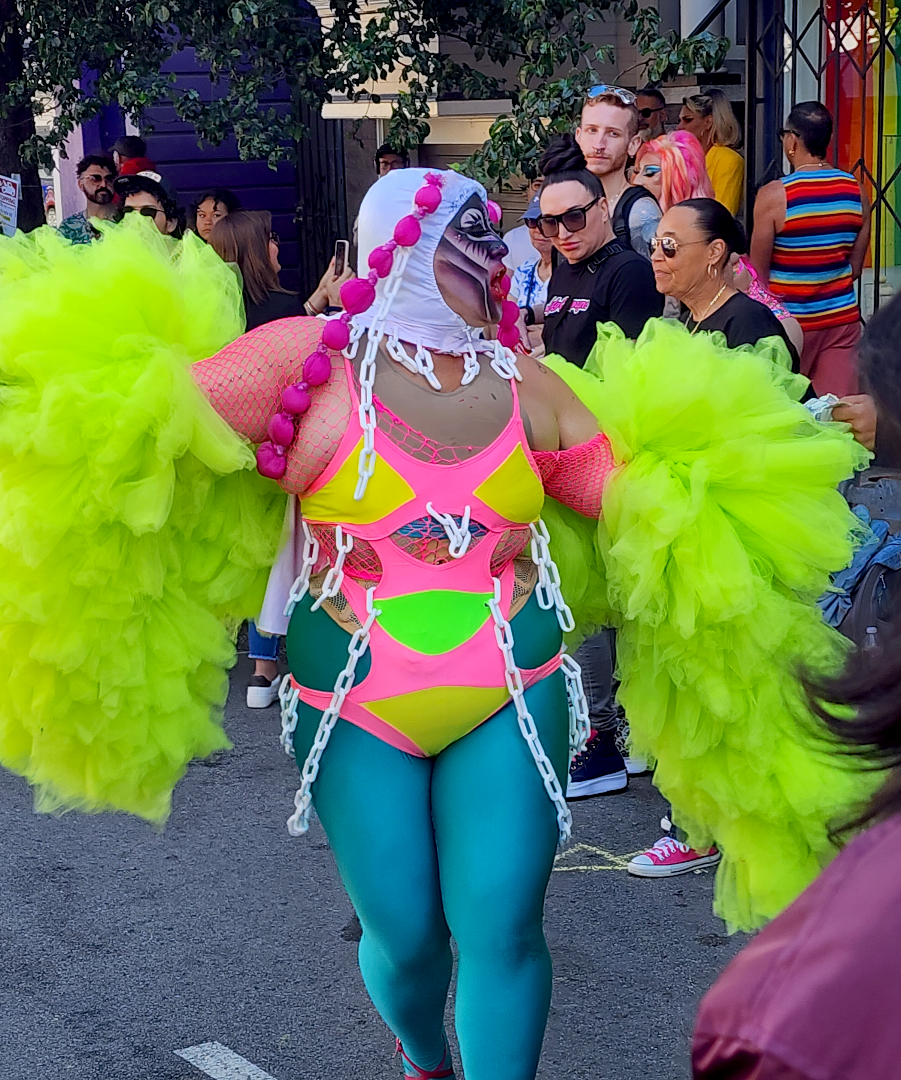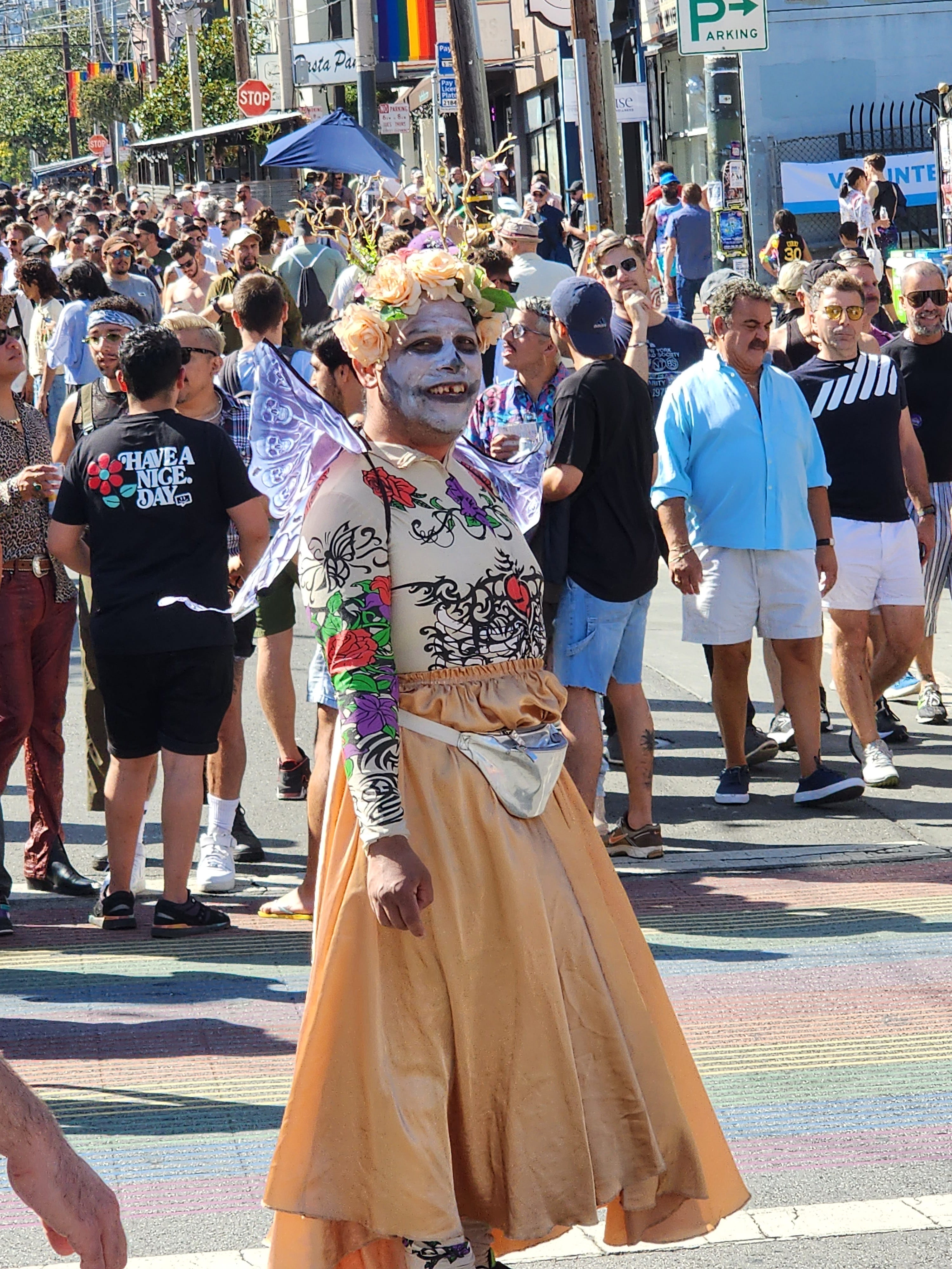 I personally like to attend because it’s a good time to be seen by a cross section of the LGBTQ+ community that perhaps I missed at a house party I couldn’t attend, or concert, or other festival. And I wear something very noticeable, so people can find me, of course.