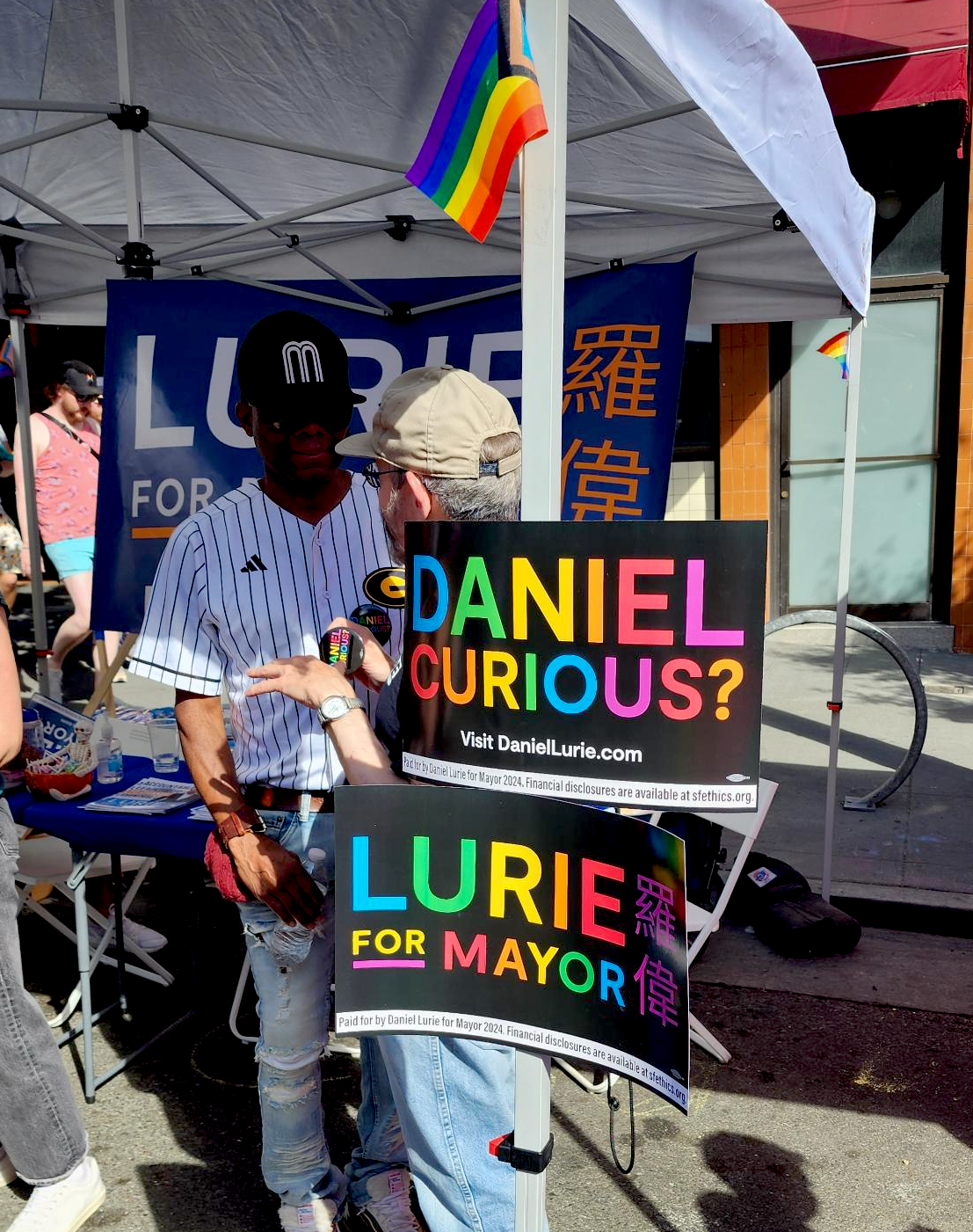 Also of course lots of pamphlet pushing, specifically the political campaigns from the moderate frontrunners popped up all over. I didn’t know Daniel Lurie was courting the gay vote, but of course that’s not surprising. I also spotted Senator Scott Wiener doing his typical walkaround, and then there’s this hilarious photo Mark Farrell posted.