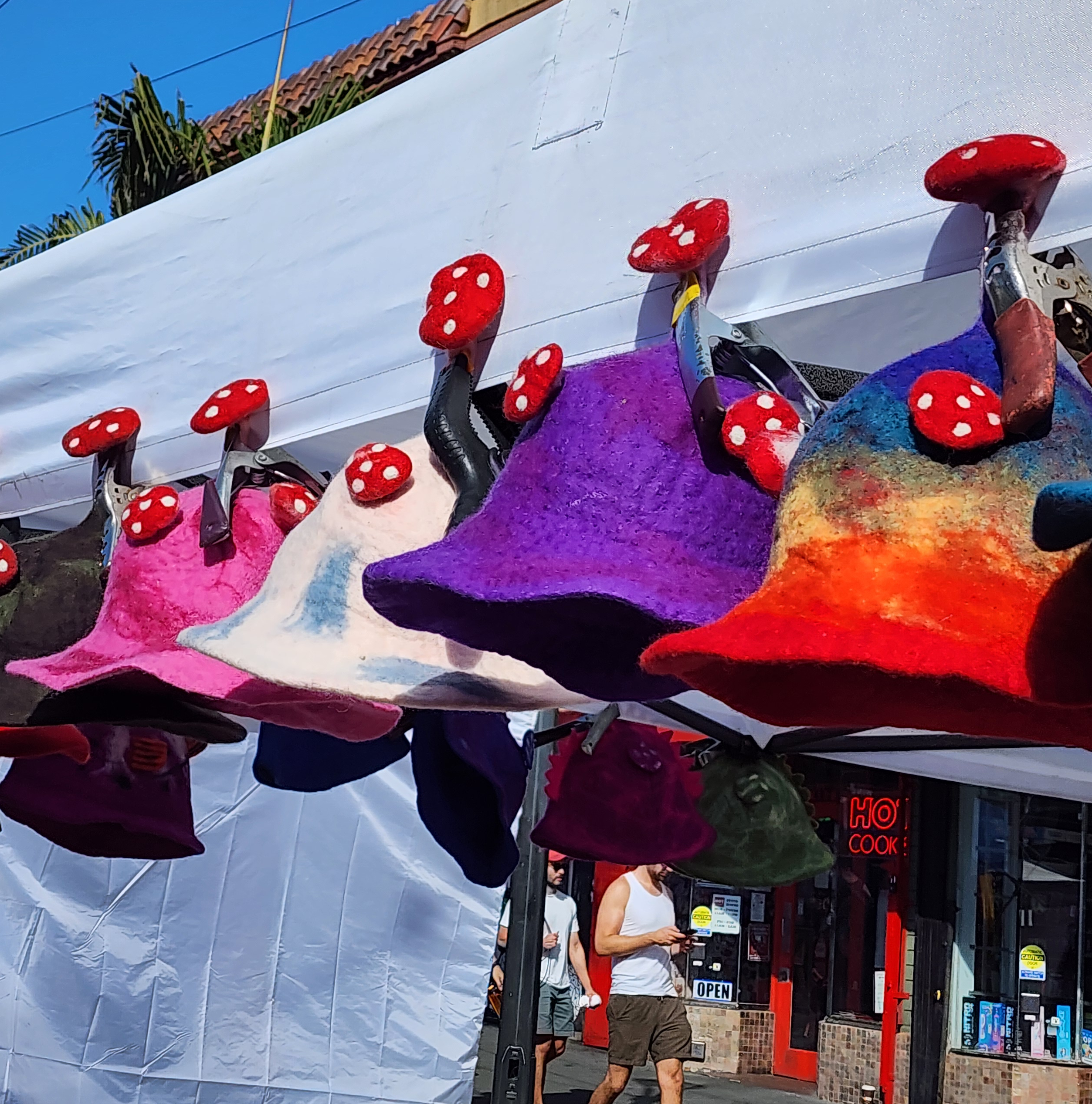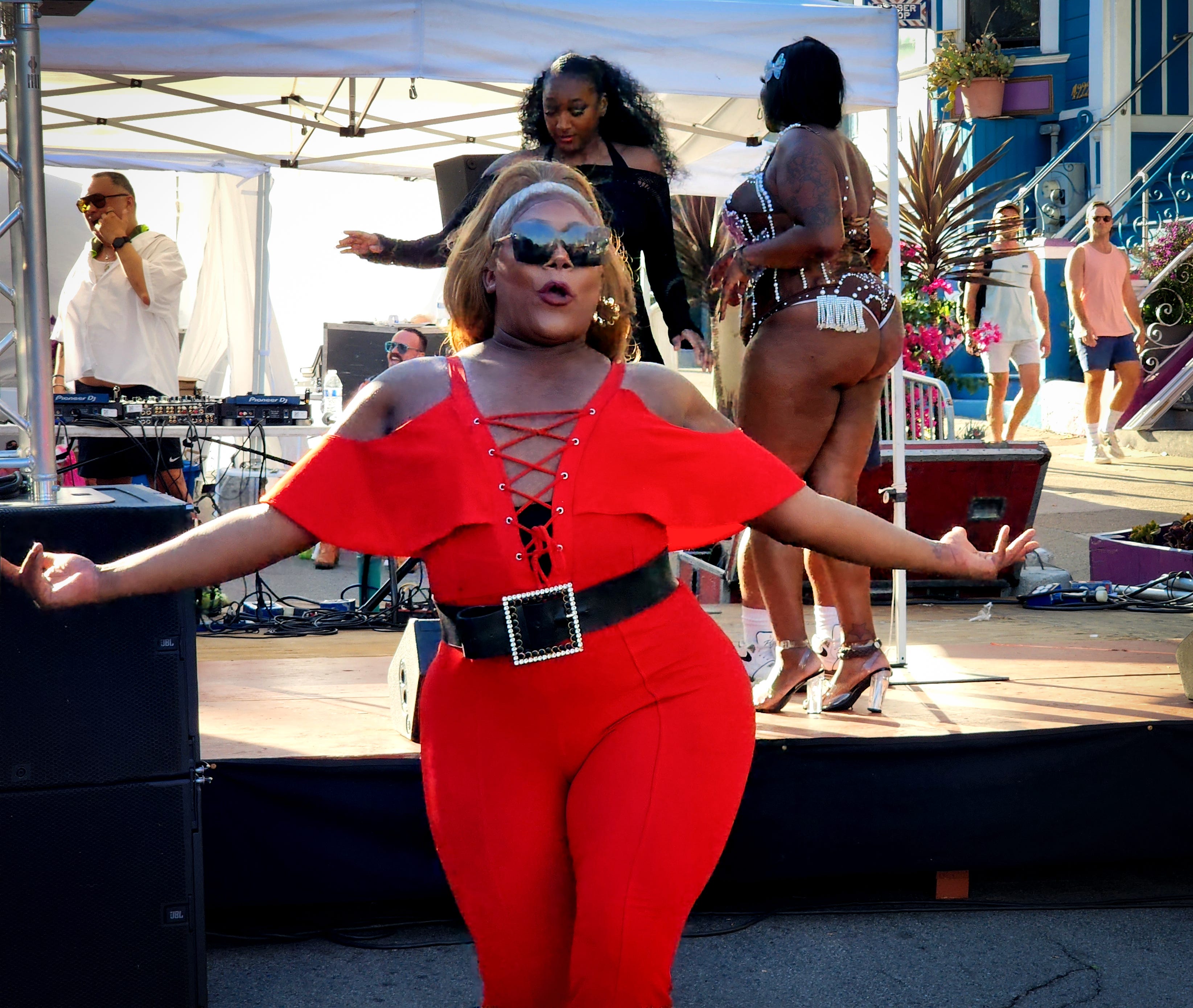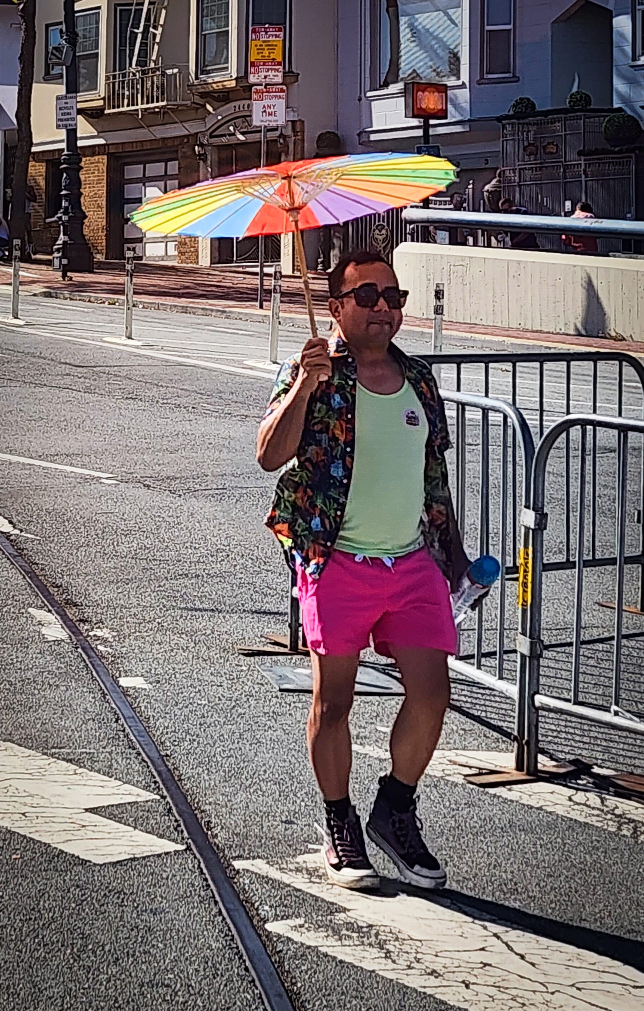 The 2024 street fair brought us a blistering 94-degree sun, which on the one hand created a veritable meat market with eye candy everywhere. On the other hand, we all huddled beneath every shady area and whined our way through the day. But this also gave us an amazing parasol parade: