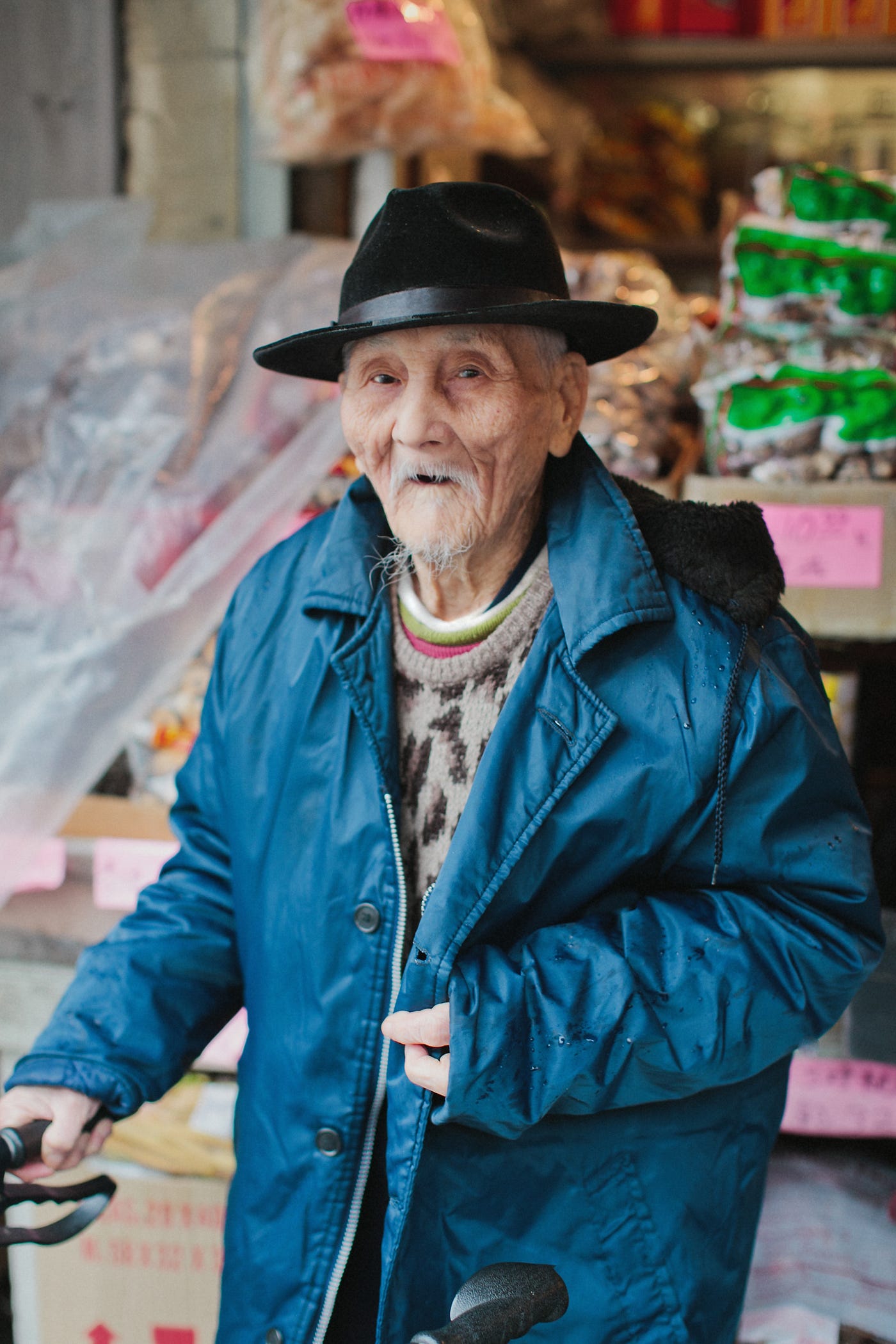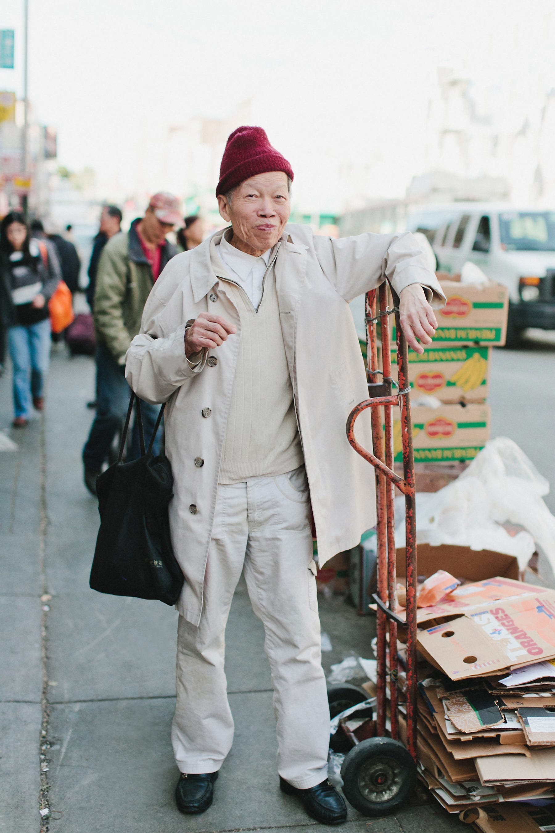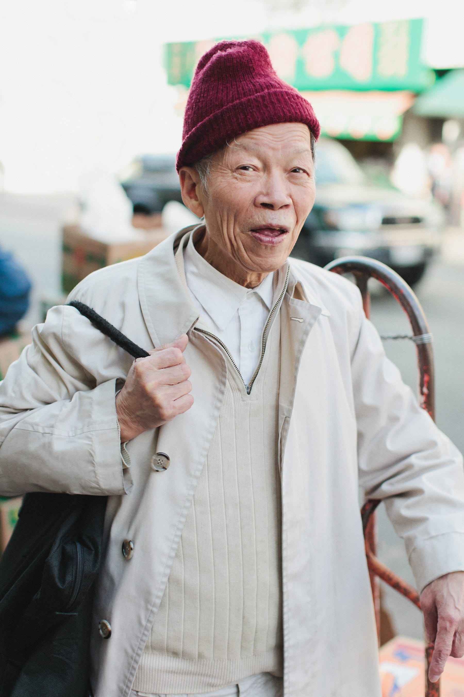 I asked her about the layering in Chinatown. “The elderly like vests to keep warm,” she said, pointing out that it’s not as bulky as a long puffy jacket.