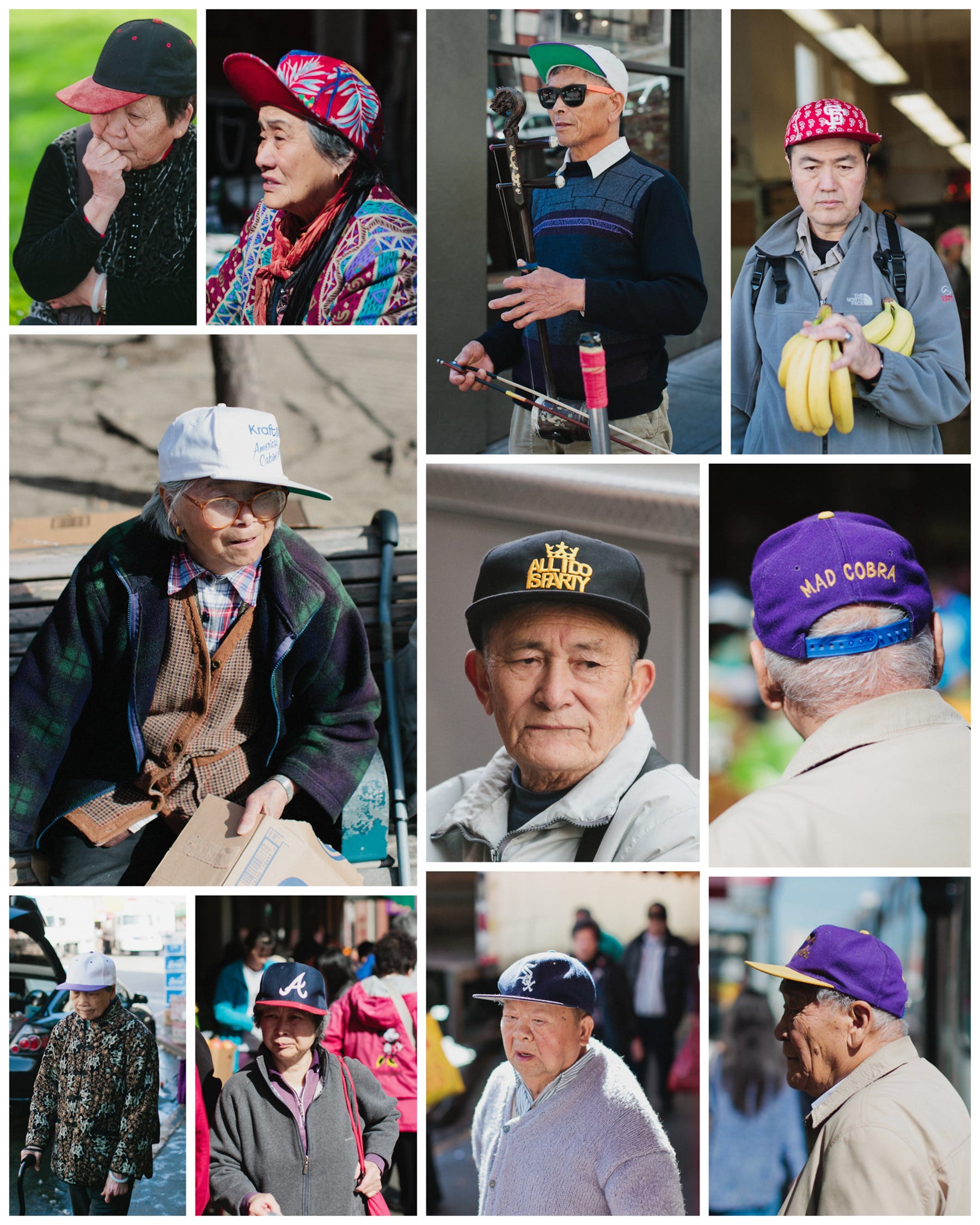We saw them at Portsmouth Square and frantically made a beeline for them. The were both in a brown, earthy palette, with matching cheetah sweaters and furry hats. He didn’t want to pose for us or reveal his name, but thanks to the persistence of Kat, our translator, she bantered with them long enough for them to agree to a portrait.