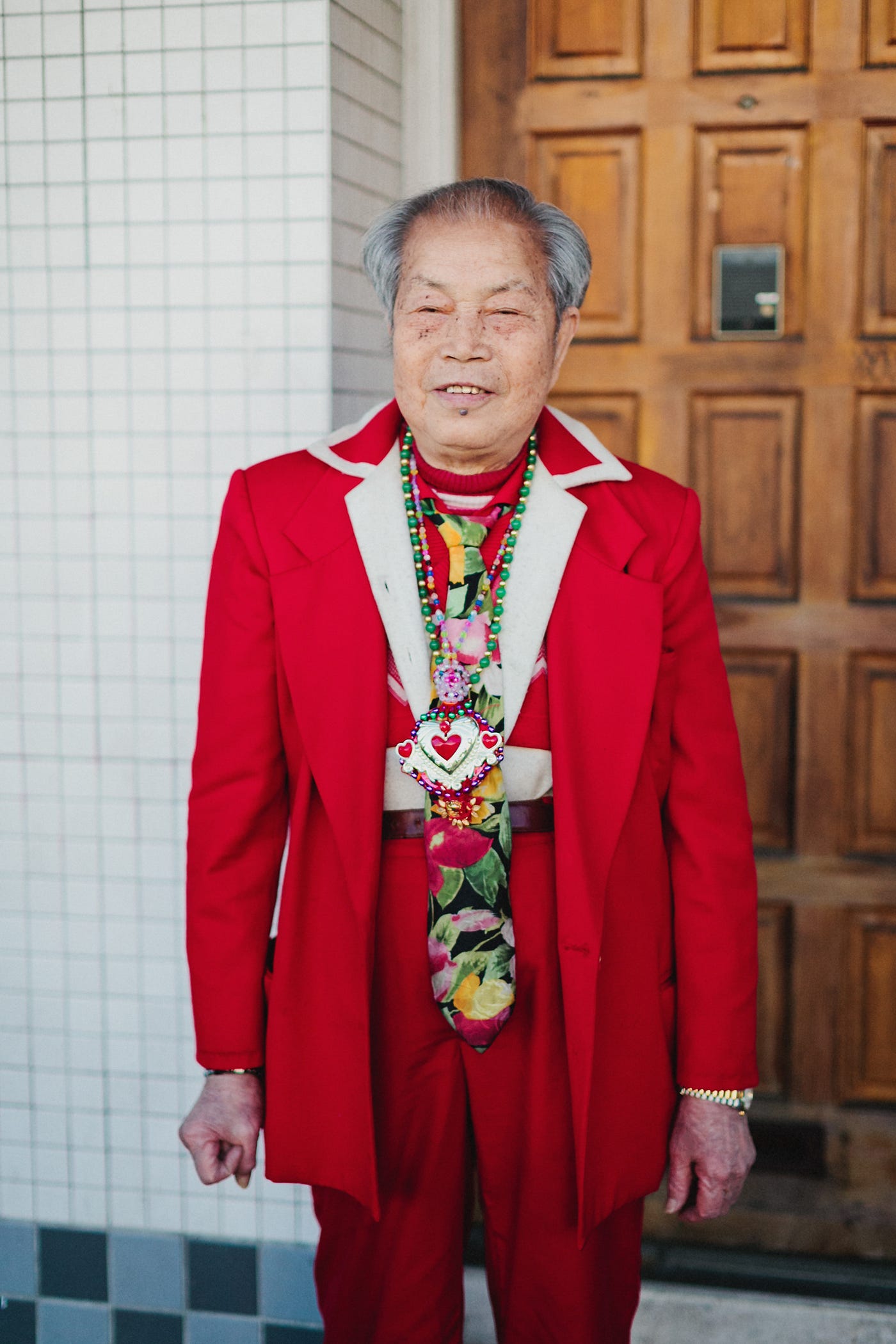 It was the last day of our shoot. We went to Young’s Dim Sum and shared a table with this older gentleman, clad in an all-red suit and a bolo he had fashioned out of old Mardi Gras beads. Our eyes grew wide when we realized that he was “The Best Dressed Man in the World” — a guy our friend Pete Lee showed us pictures of on the Tumblr Accidental Chinese Hipster. He was famous.