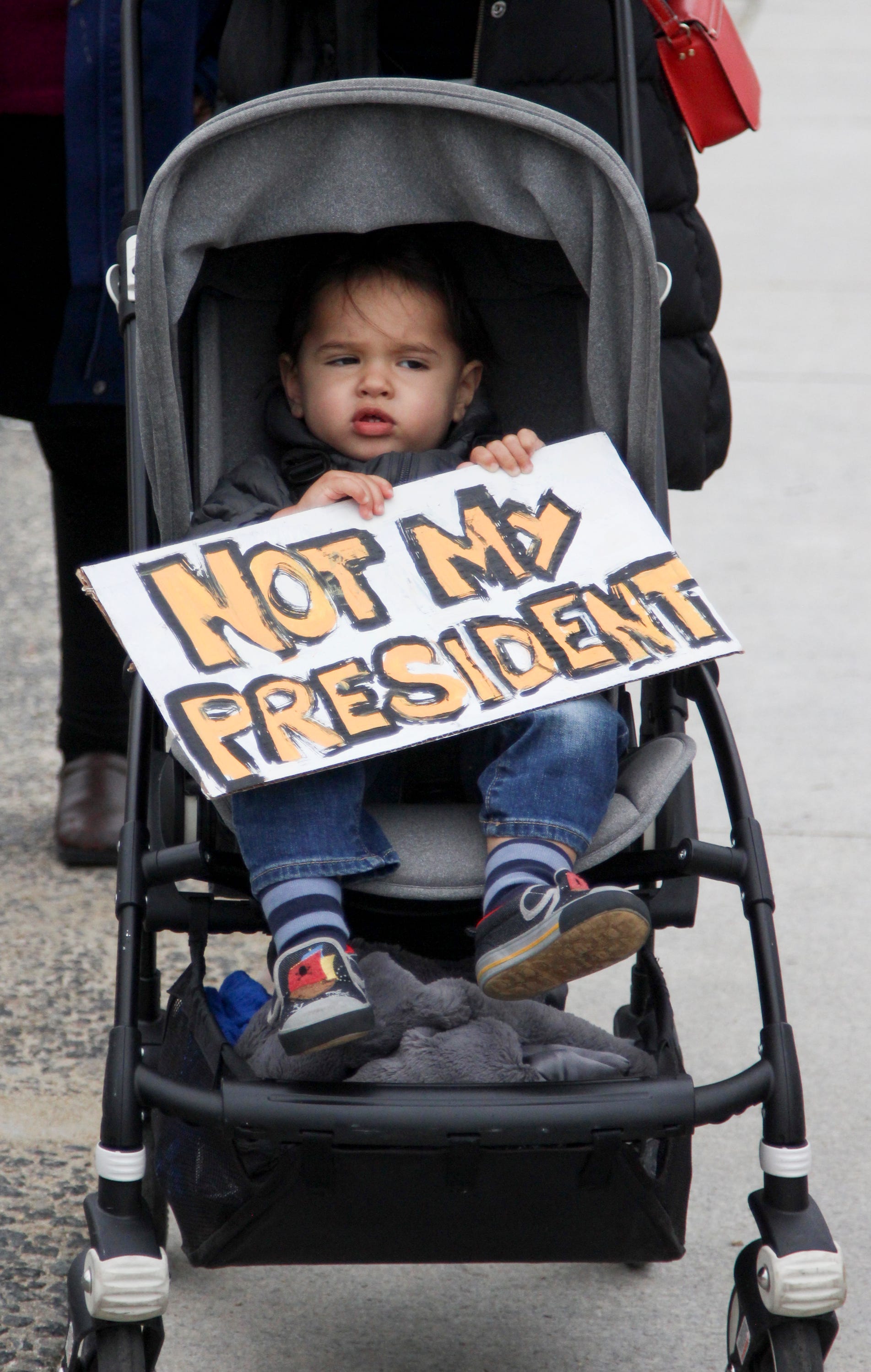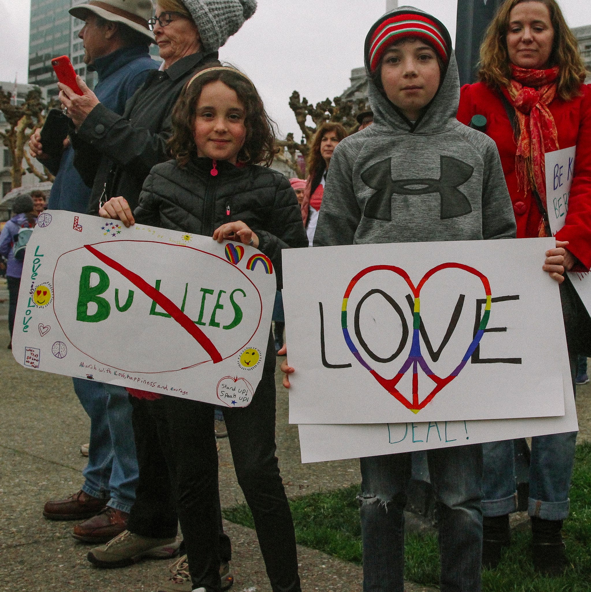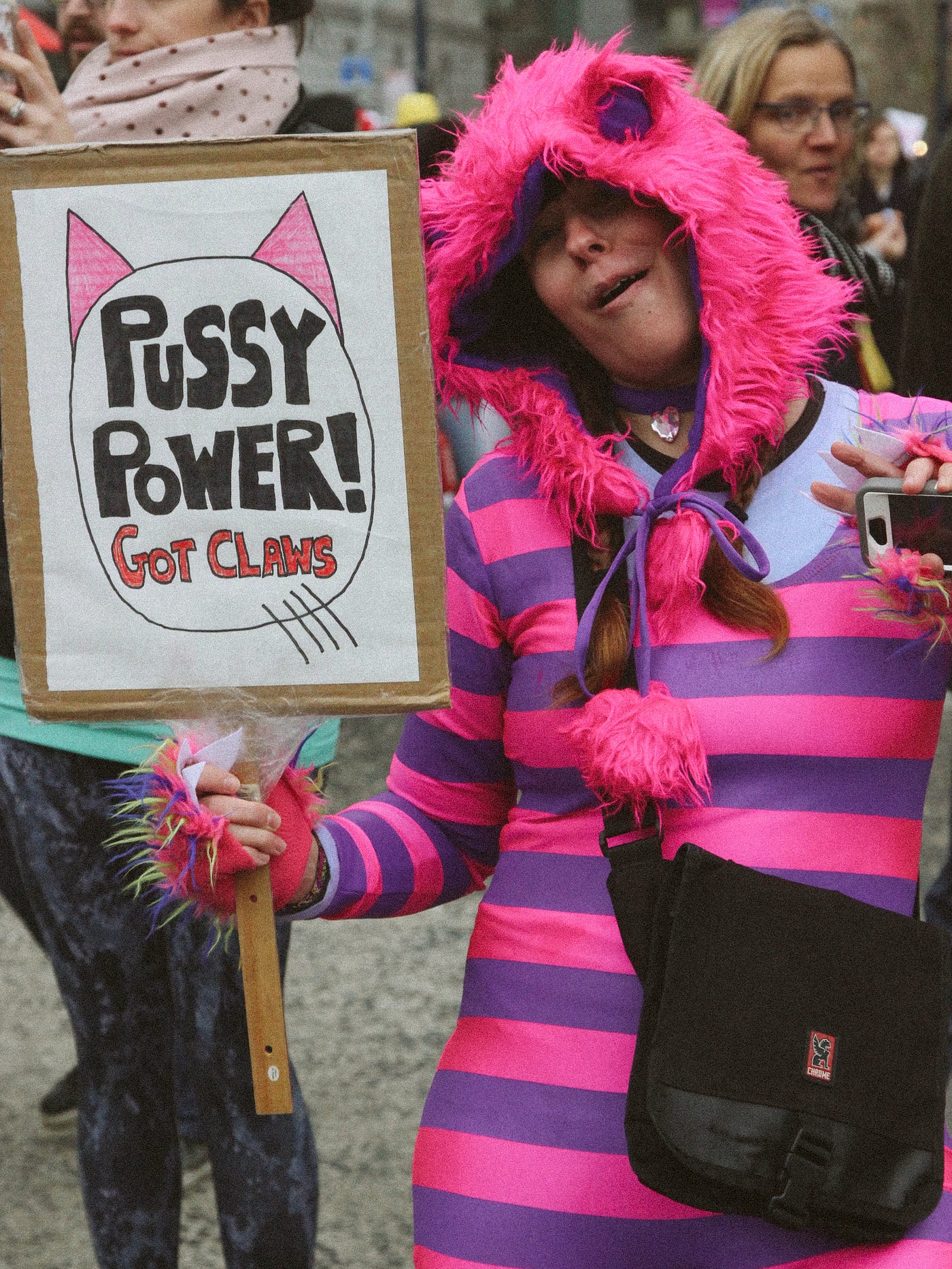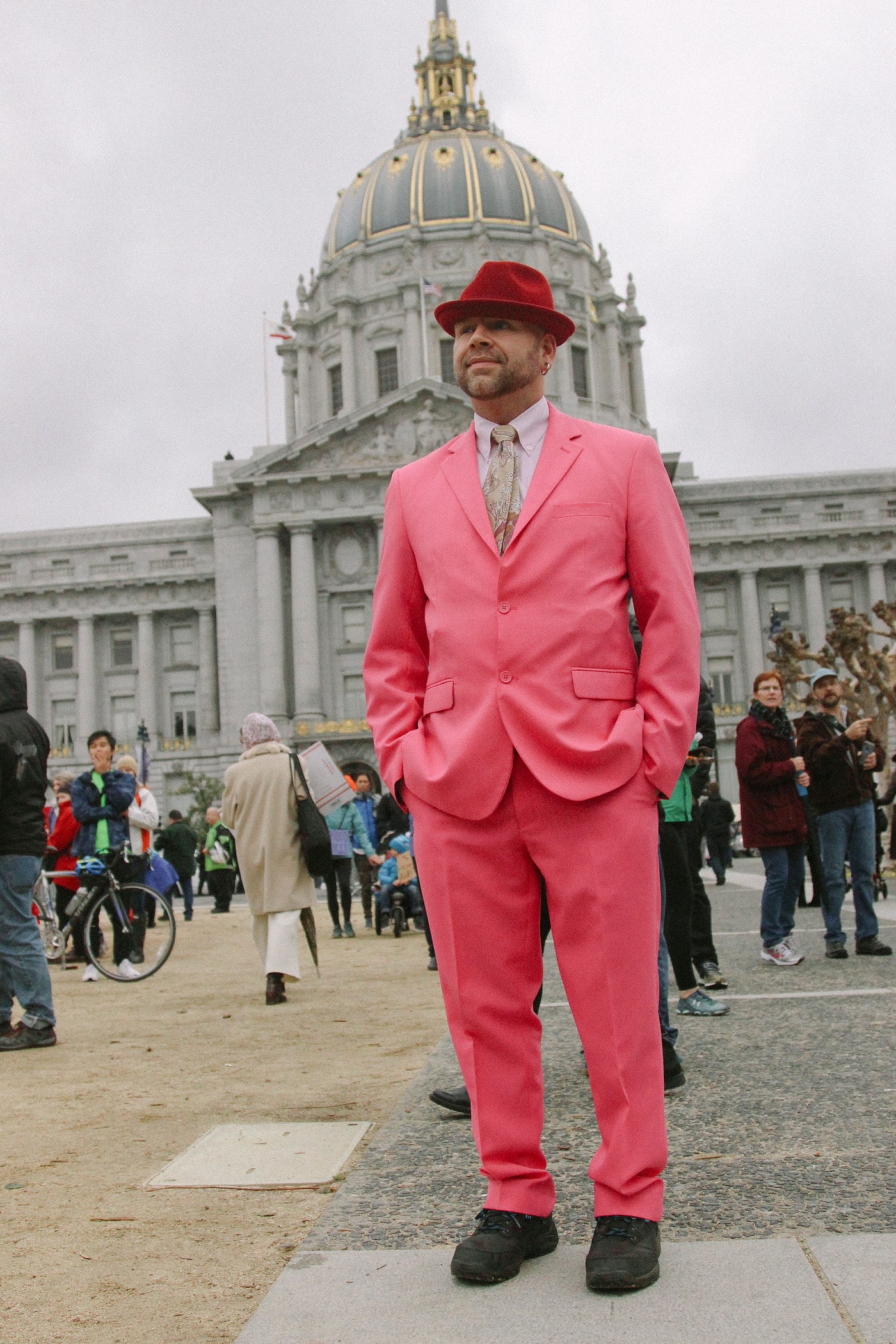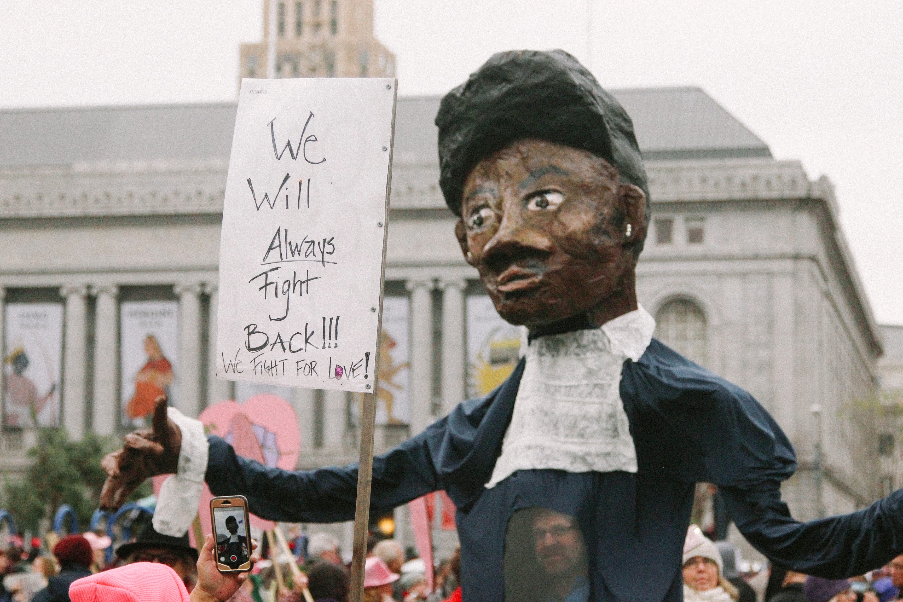 Protesters whose ages ranged from newborn to 99 streamed into Civic Center Plaza, carrying clever signs and sporting pink “pussy” hats. Despite the rain that began to fall heavily at the start of the march, tens of thousands marched from City Hall to the Embarcadero well into the evening, carried by their rallying cries and rain boots.