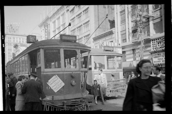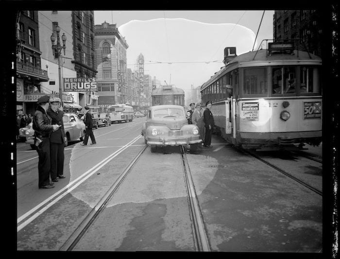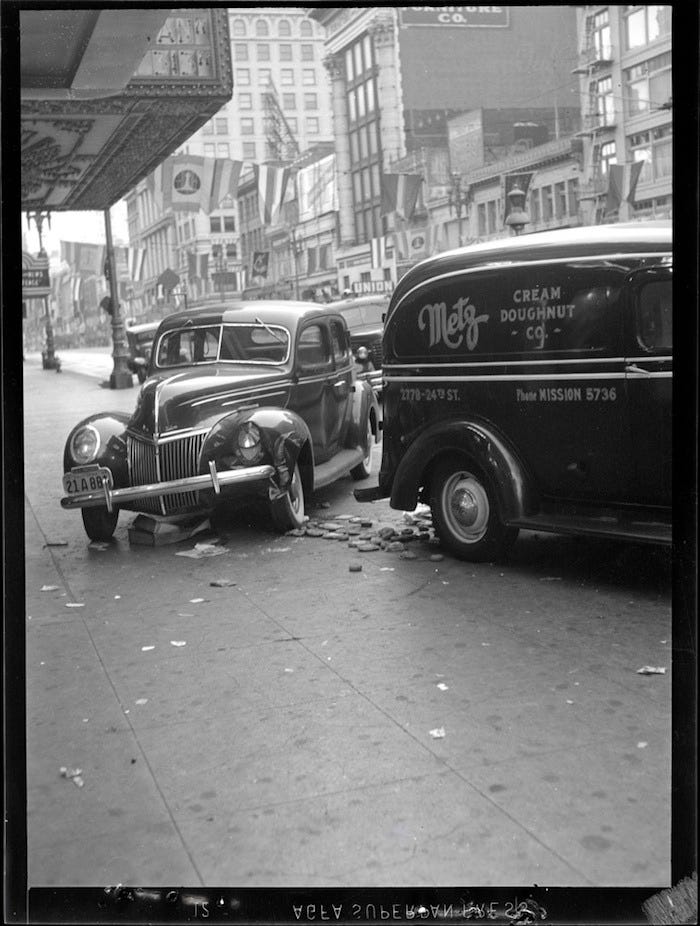 The photos with the thick borders are from the San Francisco Police Department Records within the SF History Center archives. Among these pics, you’ll see an donut truck collision from multiple angles together with the San Francisco fashion and car styles of the times.