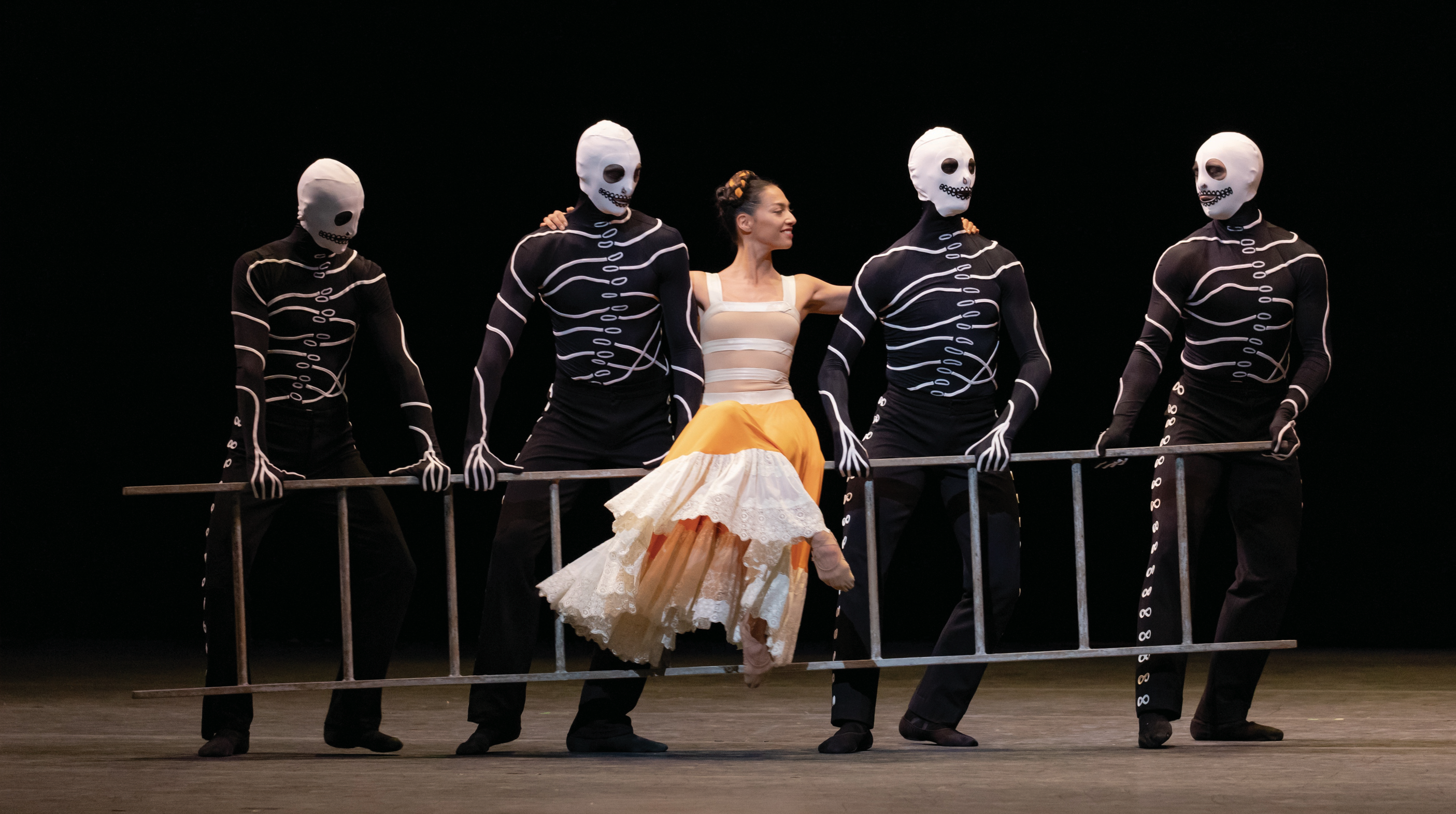 Broken Wings — a piece created by Annabelle Lopez Ochoa for the English National Ballet in 2016 — examines Kahlo’s known journey and imagines her inner fantastical life. In the mesmerizing performance, Kahlo’s paintings come to life through dance. Elements that reflect Mexican heritage, for example, dancing skeletons, which bring to mind Dia de Los Muertos, are layered throughout.