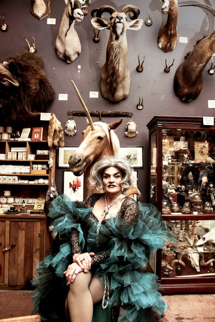 This is the first time the complete House of MORE! will be performing at the Winter Ball, so in anticipation (and because it was just guaranteed to look amazing), we took Juanita MORE!, Glamamore, Vivvyanne Forevermore, and Dulce De Leche to one of SF’s coolest little shops, Paxton Gate, for a photo shoot.