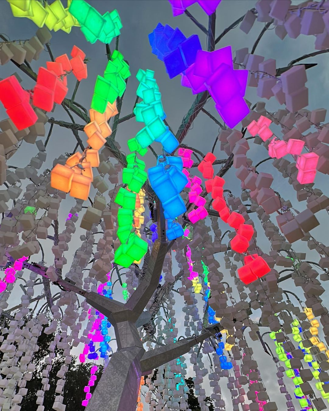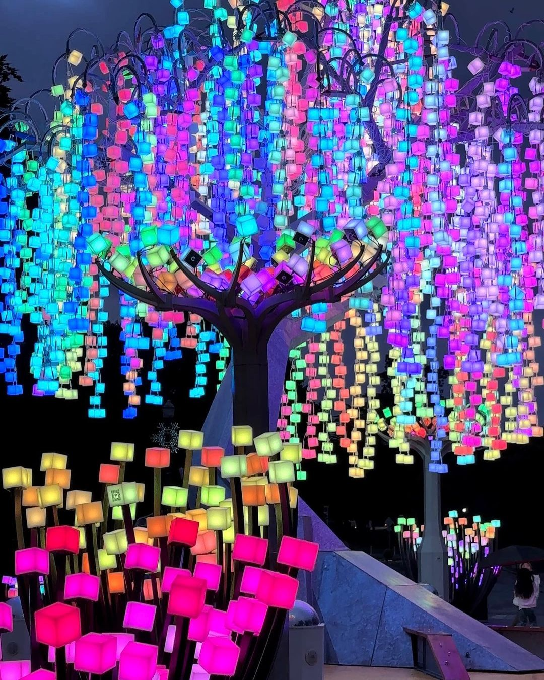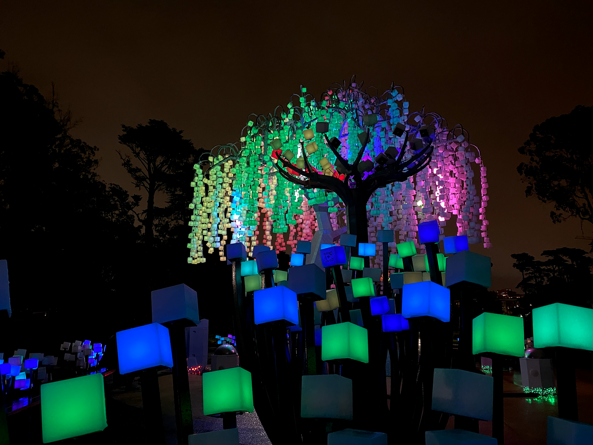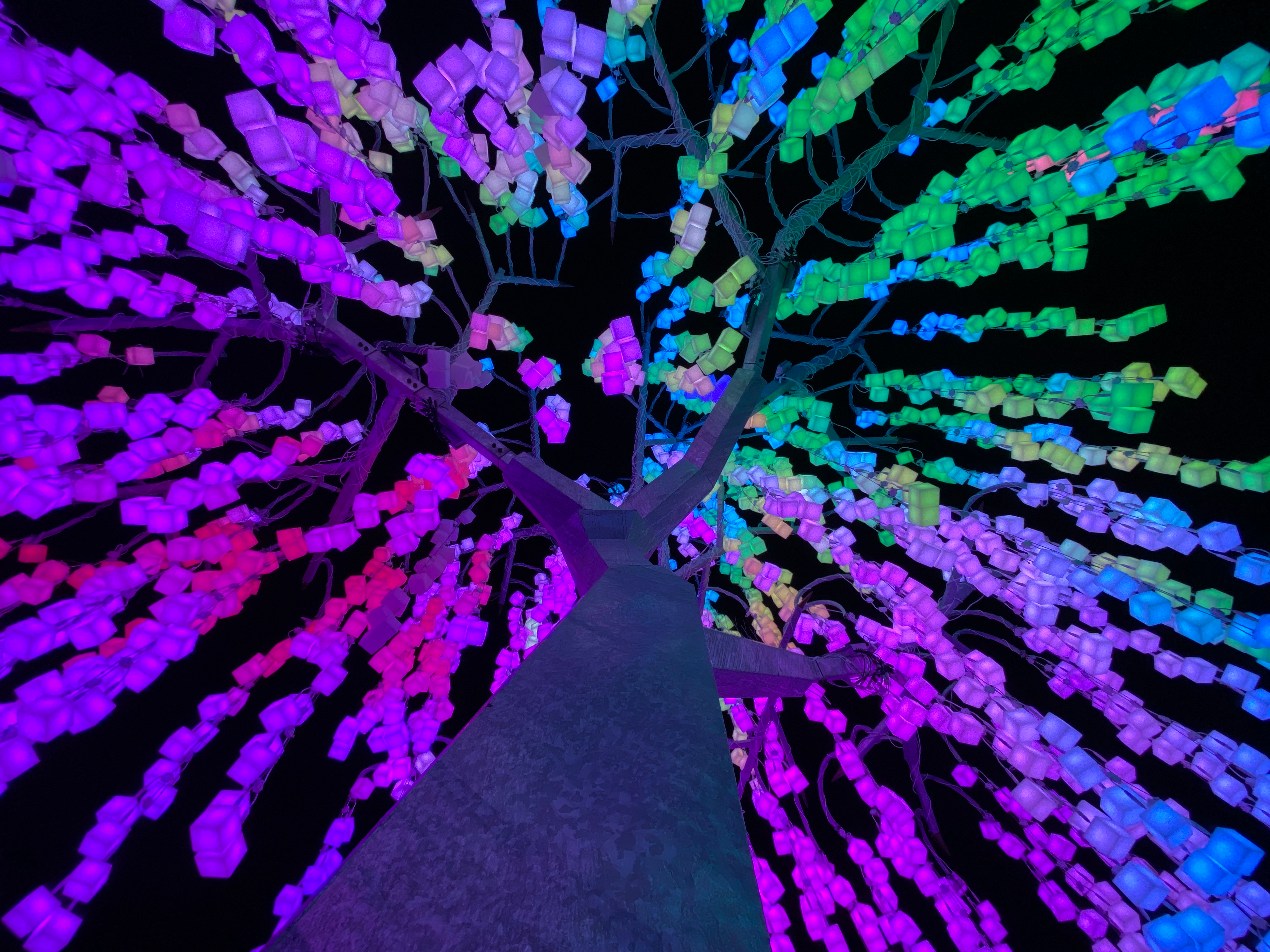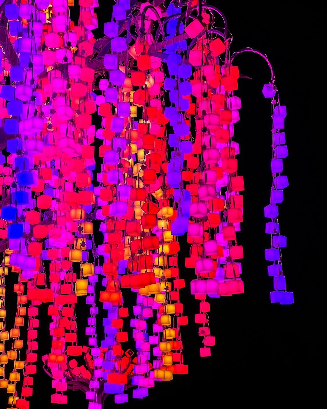 Elder Mother’s thousands of LED cubes glow in concert, flashing autumnal fire one moment and waves of pastels the next. Keep an eye out for QR codes that allow you to control certain sections — some with emoji-buttons, color slides, or the sound of your voice. The elder mother is a little deaf, though, so speak up.
