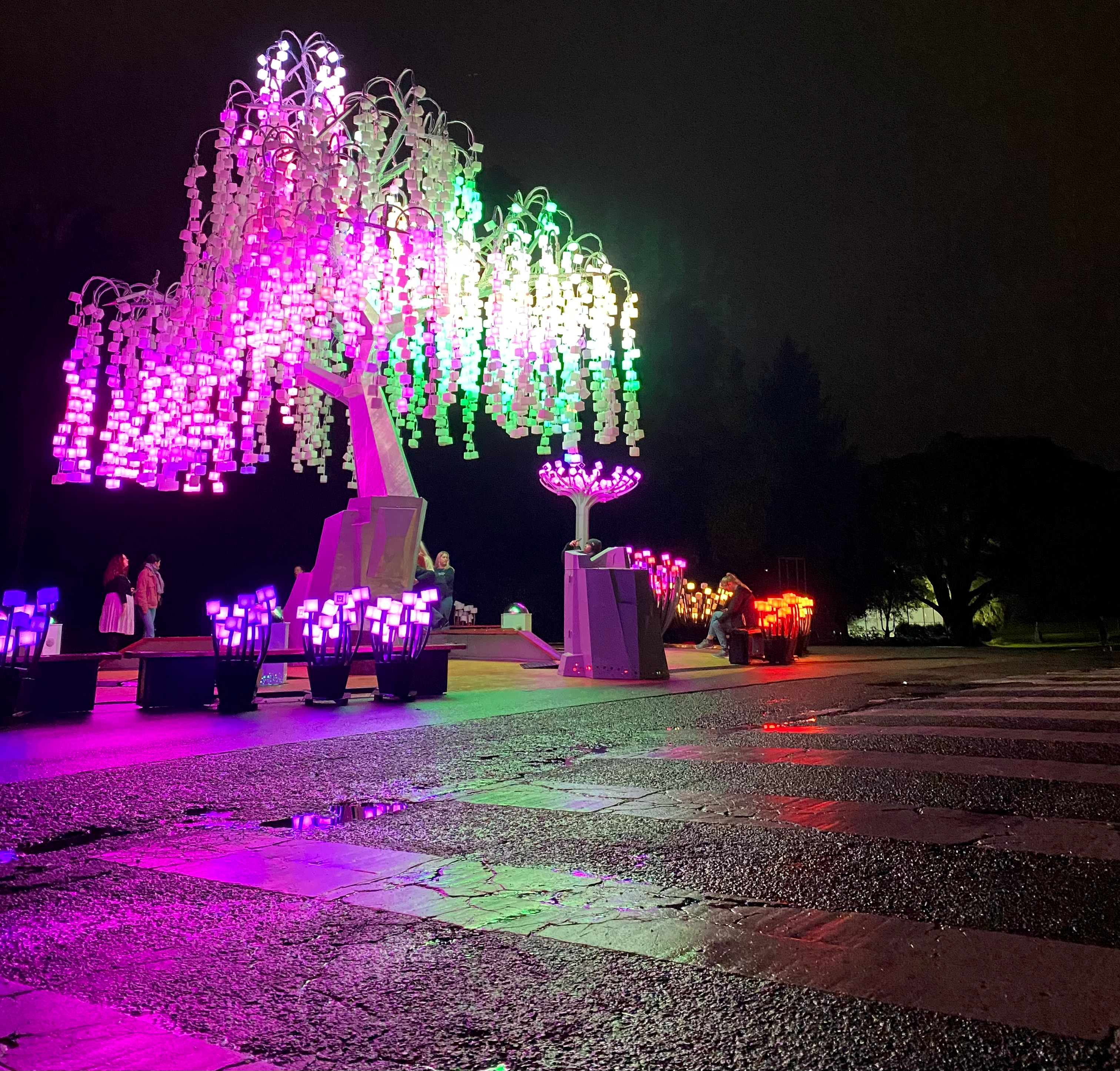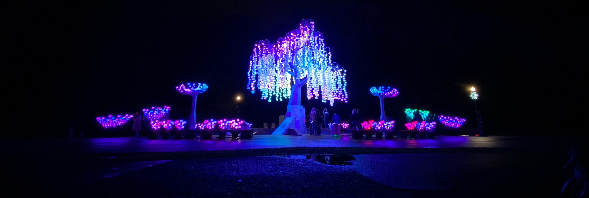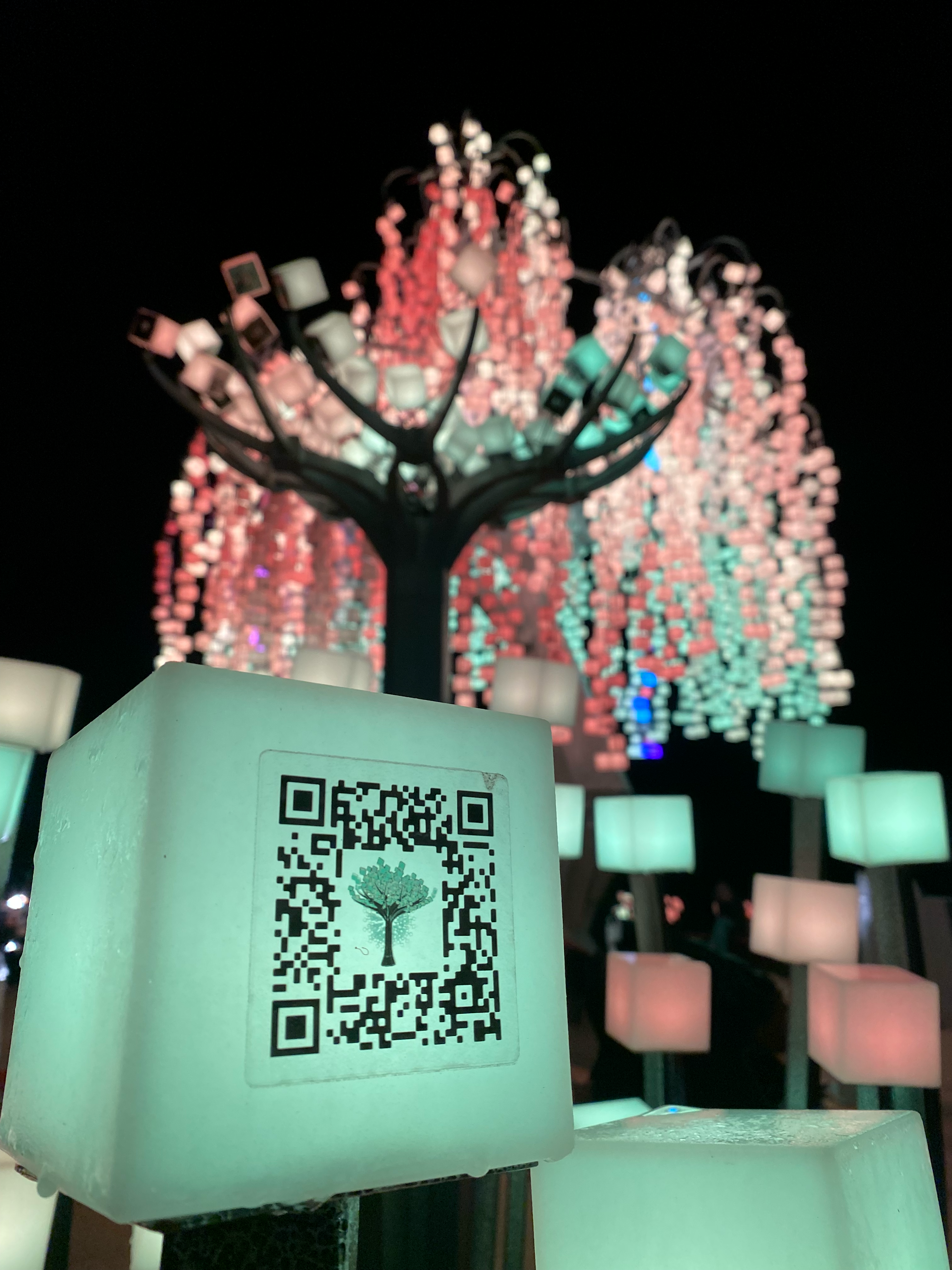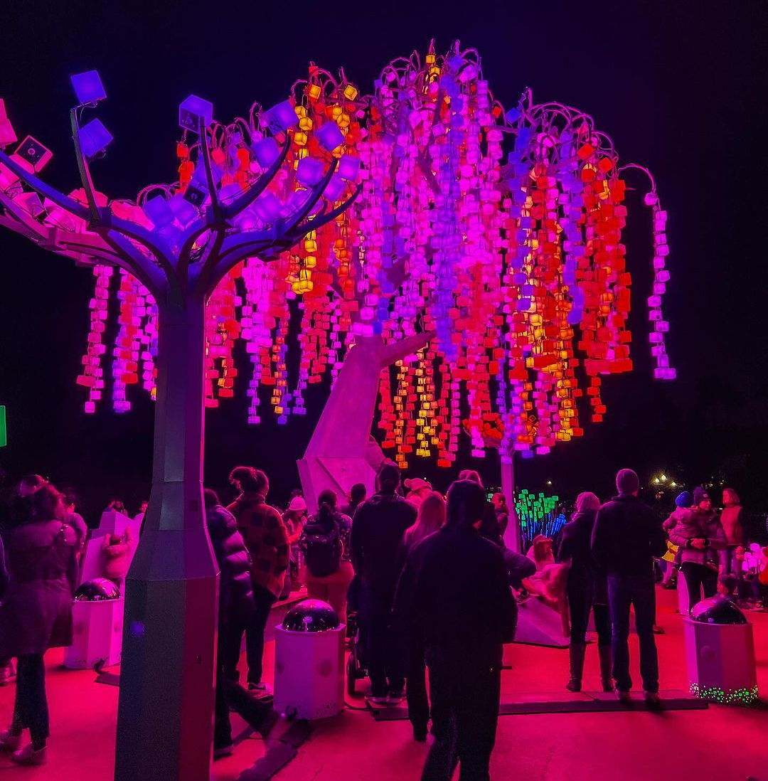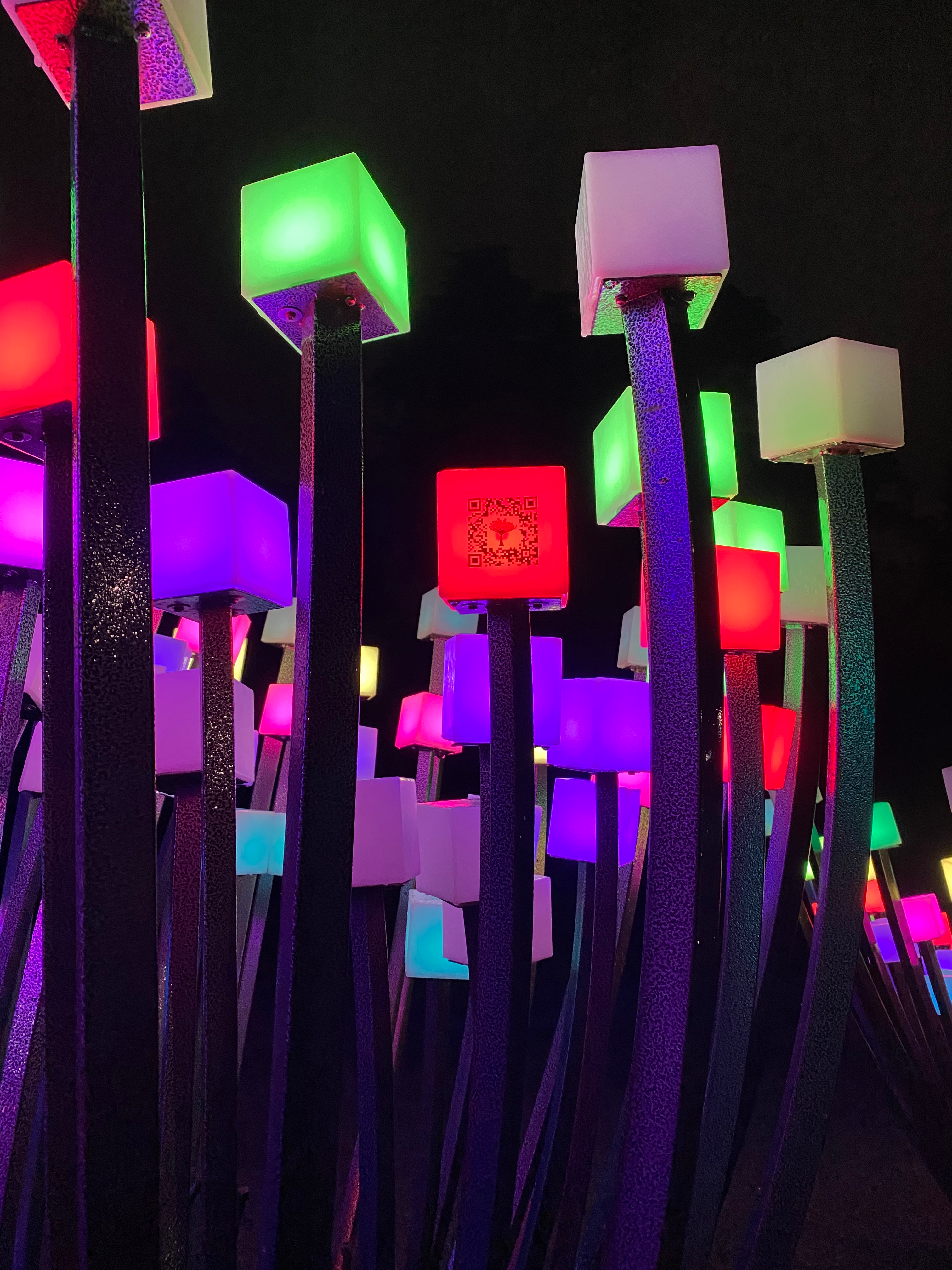 Elder Mother’s thousands of LED cubes glow in concert, flashing autumnal fire one moment and waves of pastels the next. Keep an eye out for QR codes that allow you to control certain sections — some with emoji-buttons, color slides, or the sound of your voice. The elder mother is a little deaf, though, so speak up.