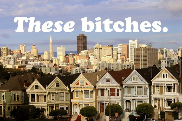 I know what you’re thinking, and YES! These are printed and on sale now, exclusively at The Bold Italic shop. Buy them, get out your favorite pen, and send them off to 14 of your favorite, wise-ass friends.