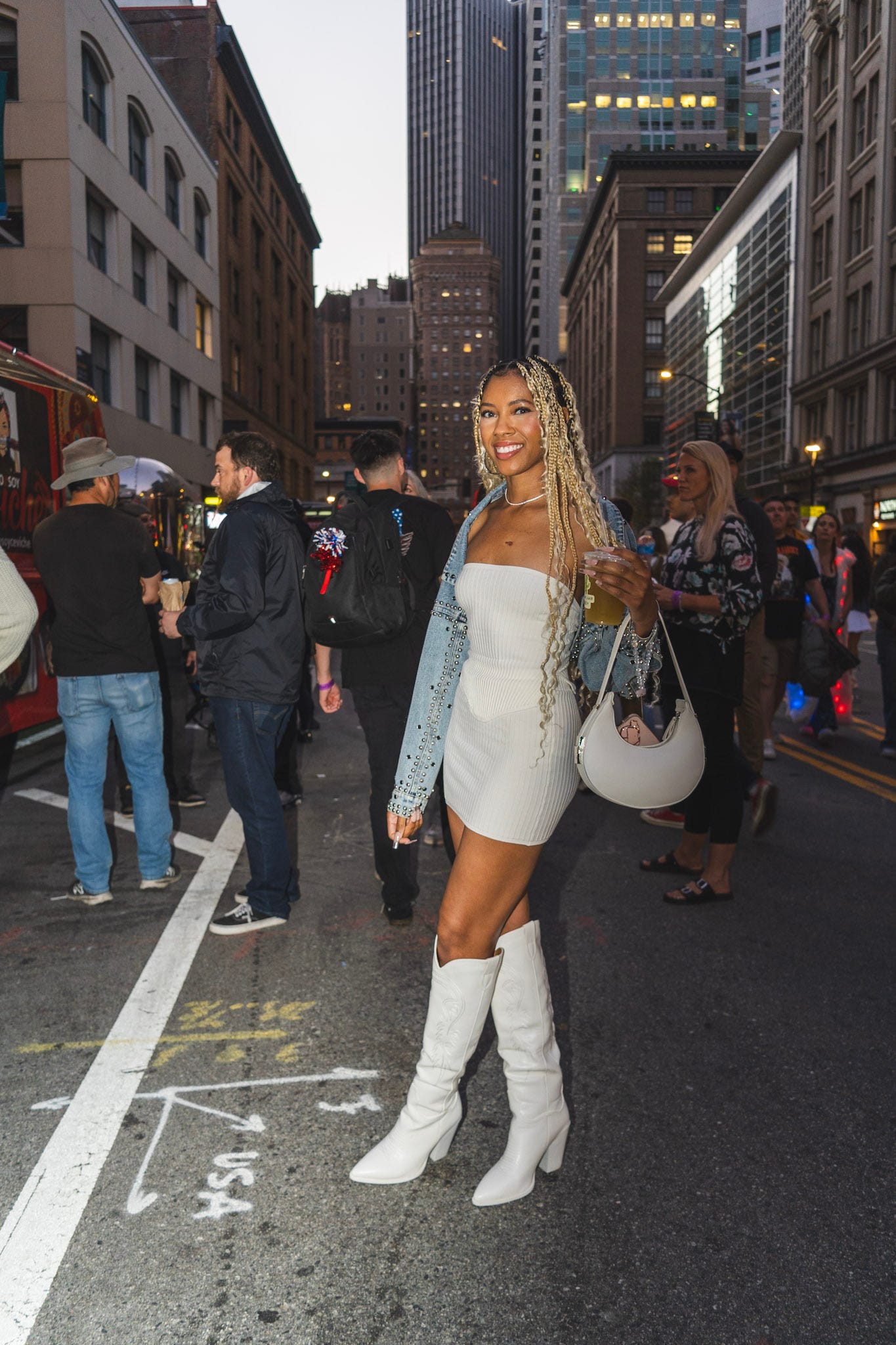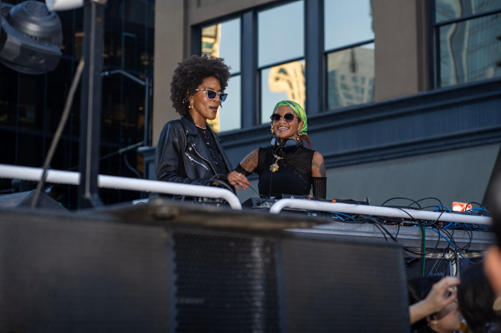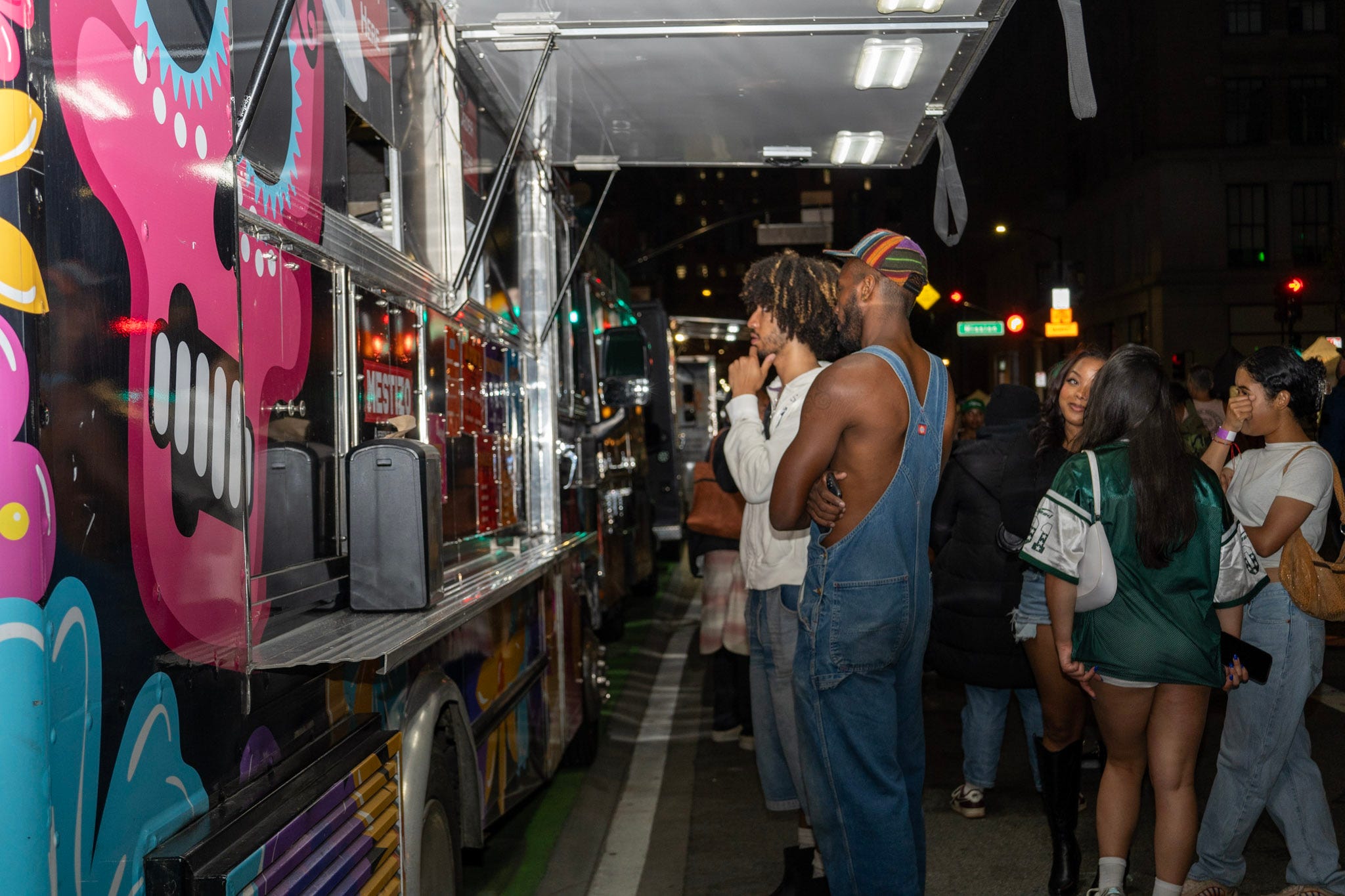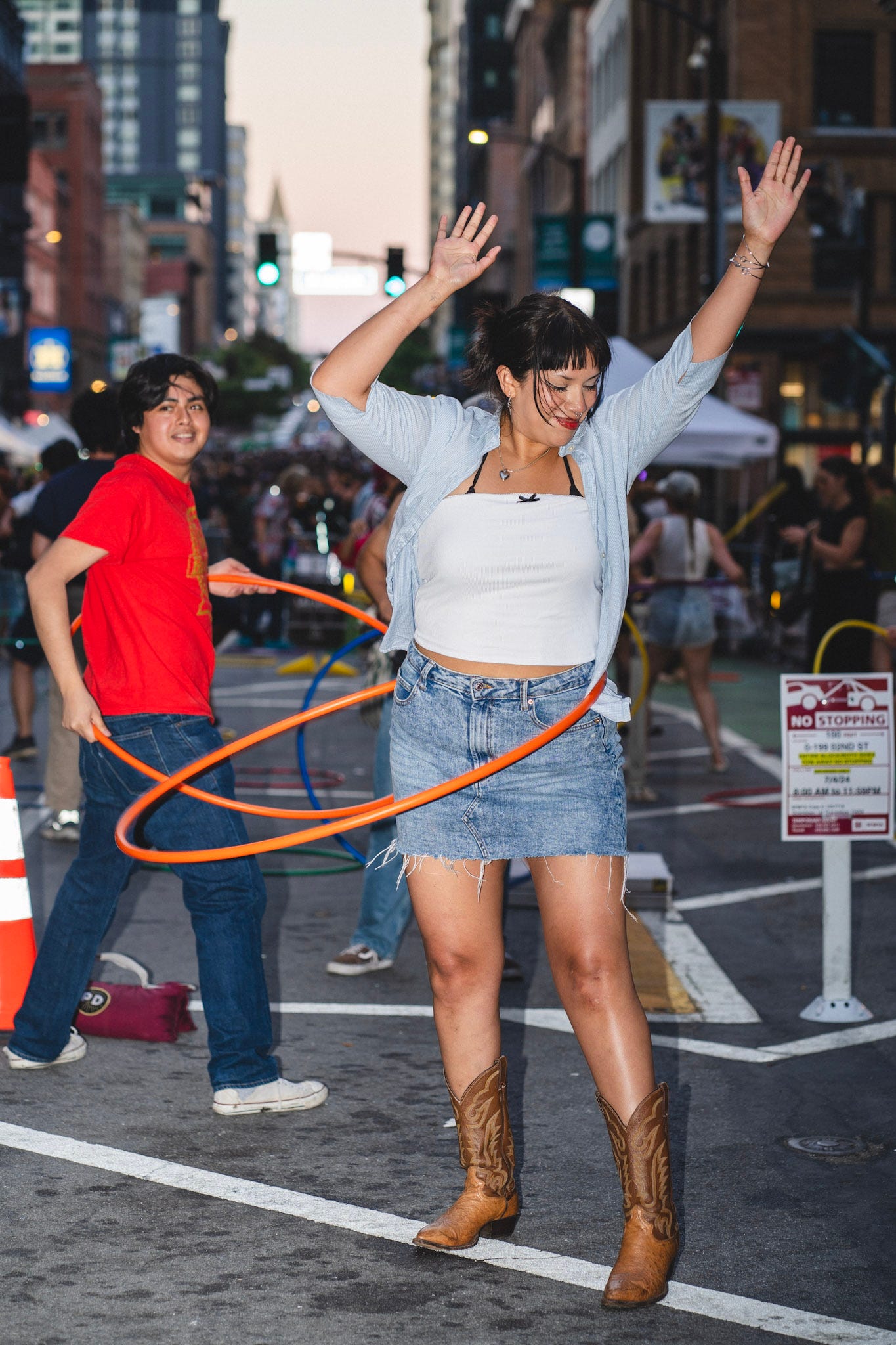 Seeing adults getting into hula hoops and jump ropes was pretty hilarious; It added to the overall vibe of just having fun and not taking things too seriously. In the midst of that stood a giant outdoor bar, crowned with a massive disco ball suspended from what appeared to be a forklift — a quirky yet perfect centerpiece for the night’s festivities.