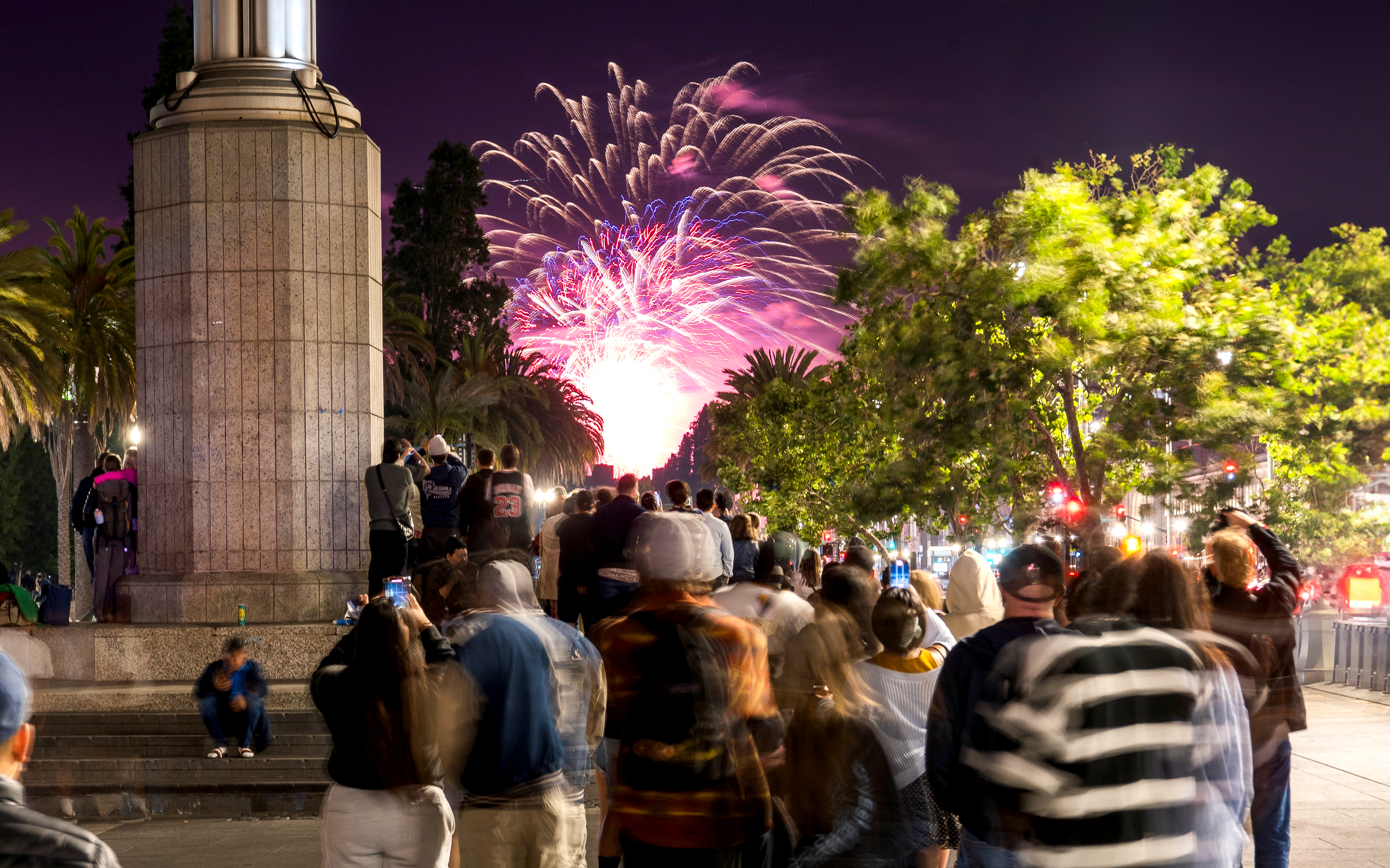 Sure it was a little hazy, but our usual thick blanket of fog took the night off July 4th, giving us clear skies and a great view of the fireworks at First Thursdays, a new-ish series that transforms downtown streets into a celebration of music, fashion, and fun.