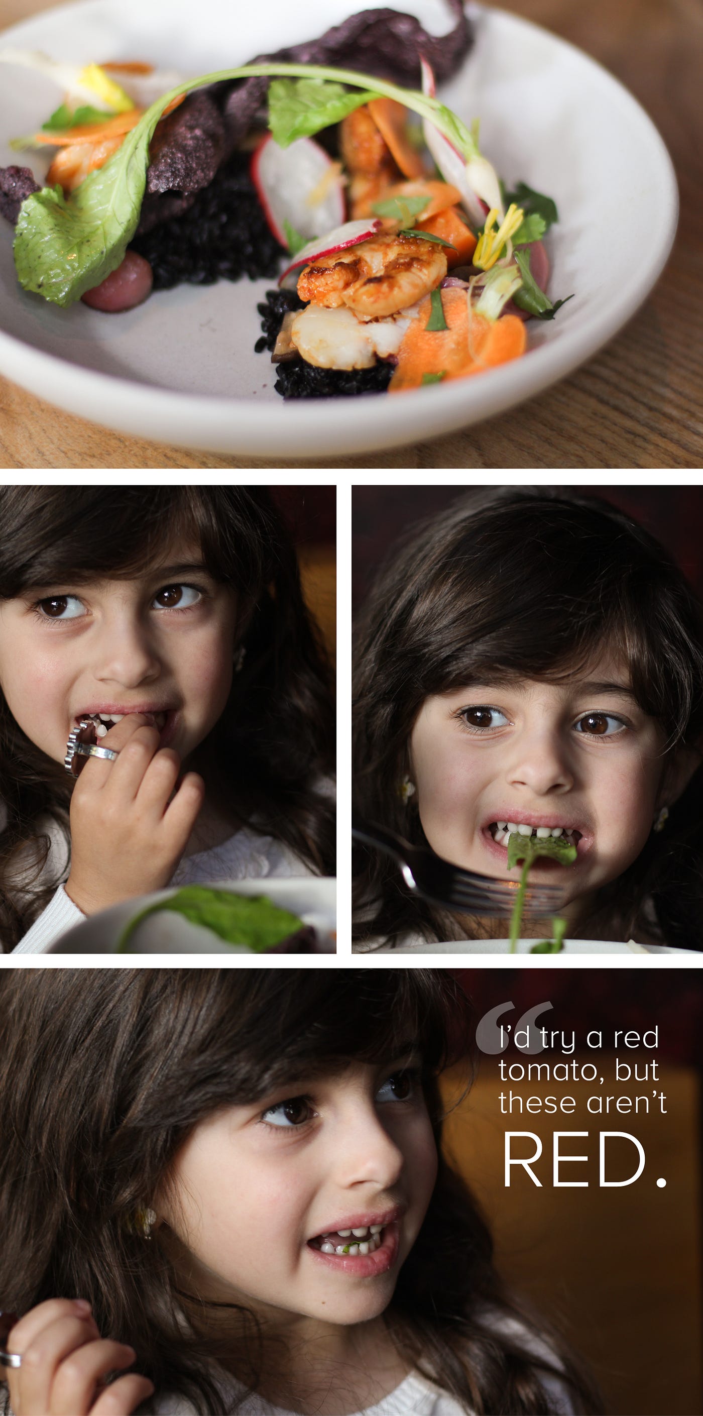 Plum is the kind of restaurant where every dish is an explorative twist on ingredients you thought you knew, the kind of place that pickles green strawberries and ferments oatmeal — which, for the photographer and me, were a little mind blowing. Four-year-olds don’t care about fascinating twists, though, and Elai was difficult to impress.