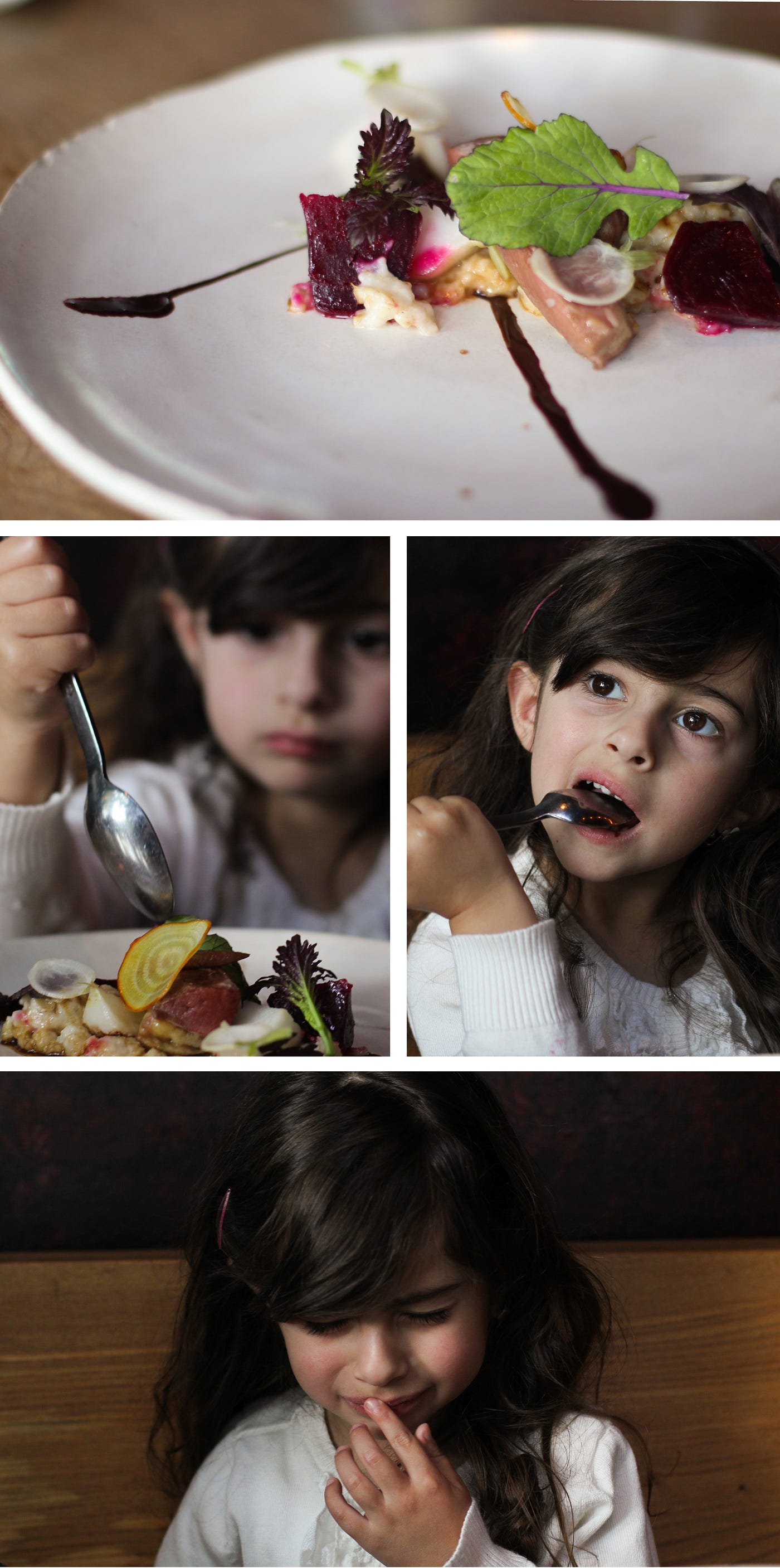 In hindsight, following squid with pigeon was like orchestrating the “things kids don’t like to eat” parade; but hey, you never know! (Except now I do know.) Plus, Elai was once again convinced that someone had drizzled paint all over the dish (and she does not eat paint!!).