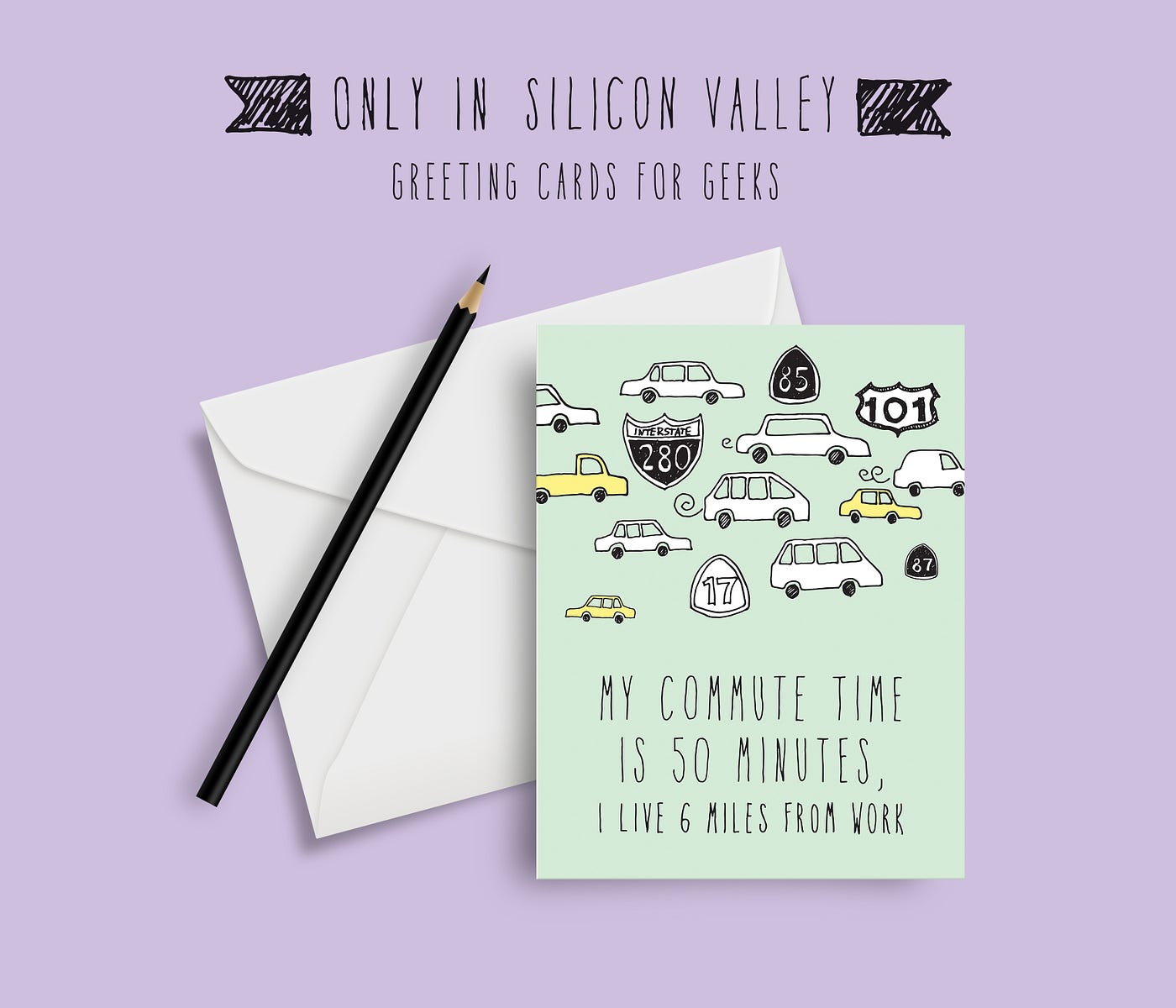 I have lived and worked in Silicon Valley for more than 20 years, and it’s a truly unique place, but it’s a bit underserved when it comes to cheesy, touristy design fun. New York, San Francisco and other cities have been getting way too much love—until now! Introducing a greeting-card collection for geeks named “Only in Silicon Valley.”