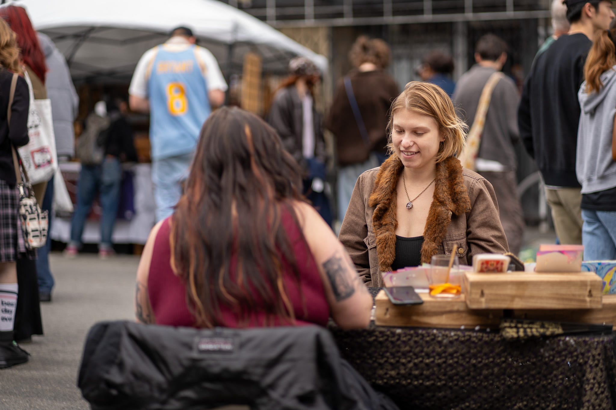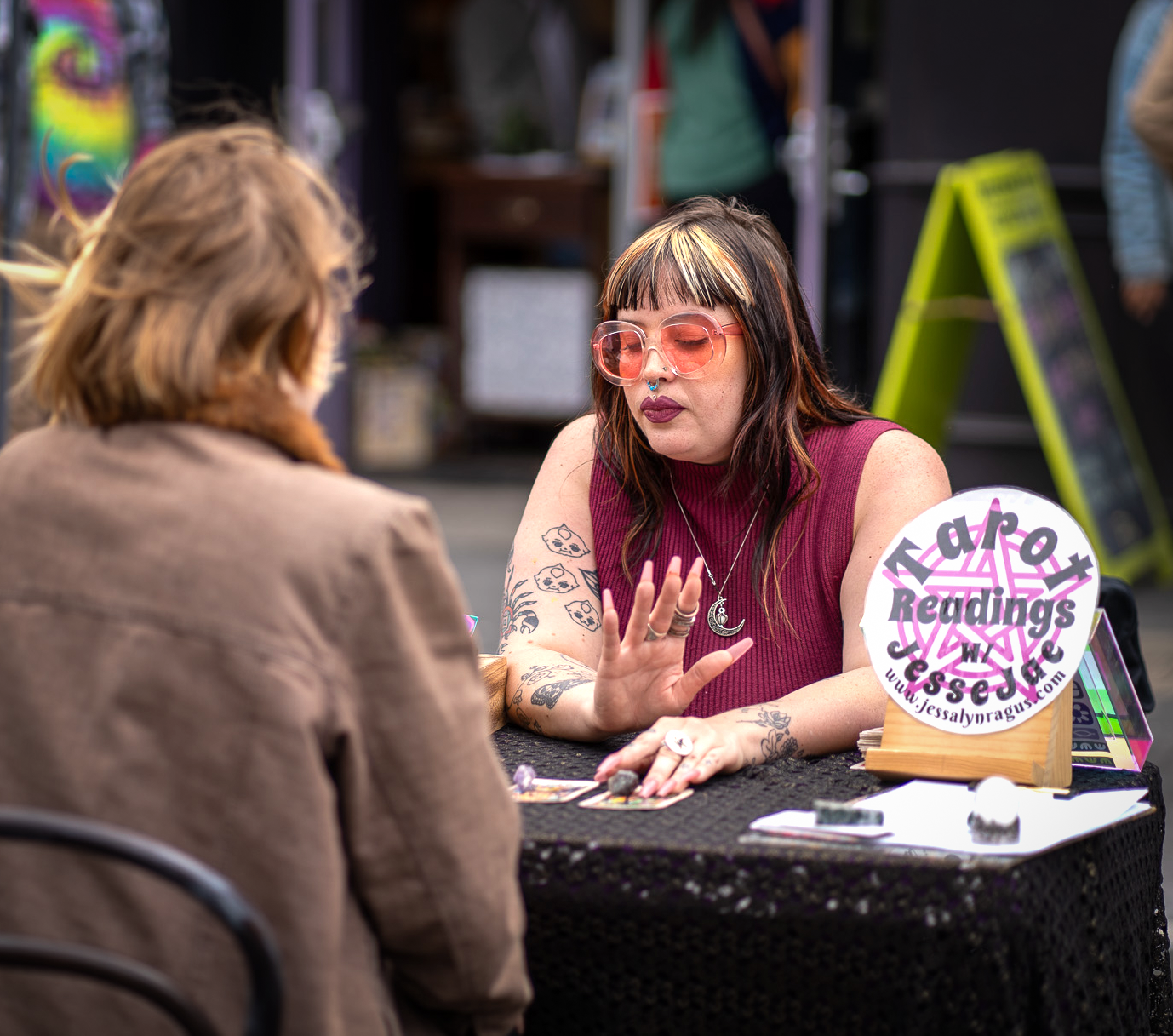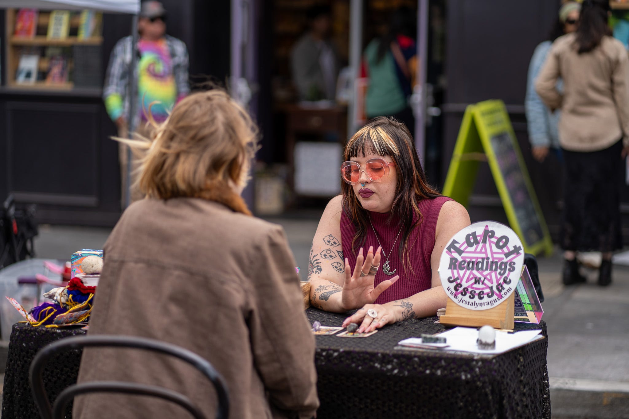 In true Haight Street fashion, tiny dogs in tote bags were everywhere, practically lifted above the crowd as their humans navigated the packed sidewalks. Mystical tarot readers dotted the scene too, reminding everyone that there’s always a bit of magic to be found in this city.