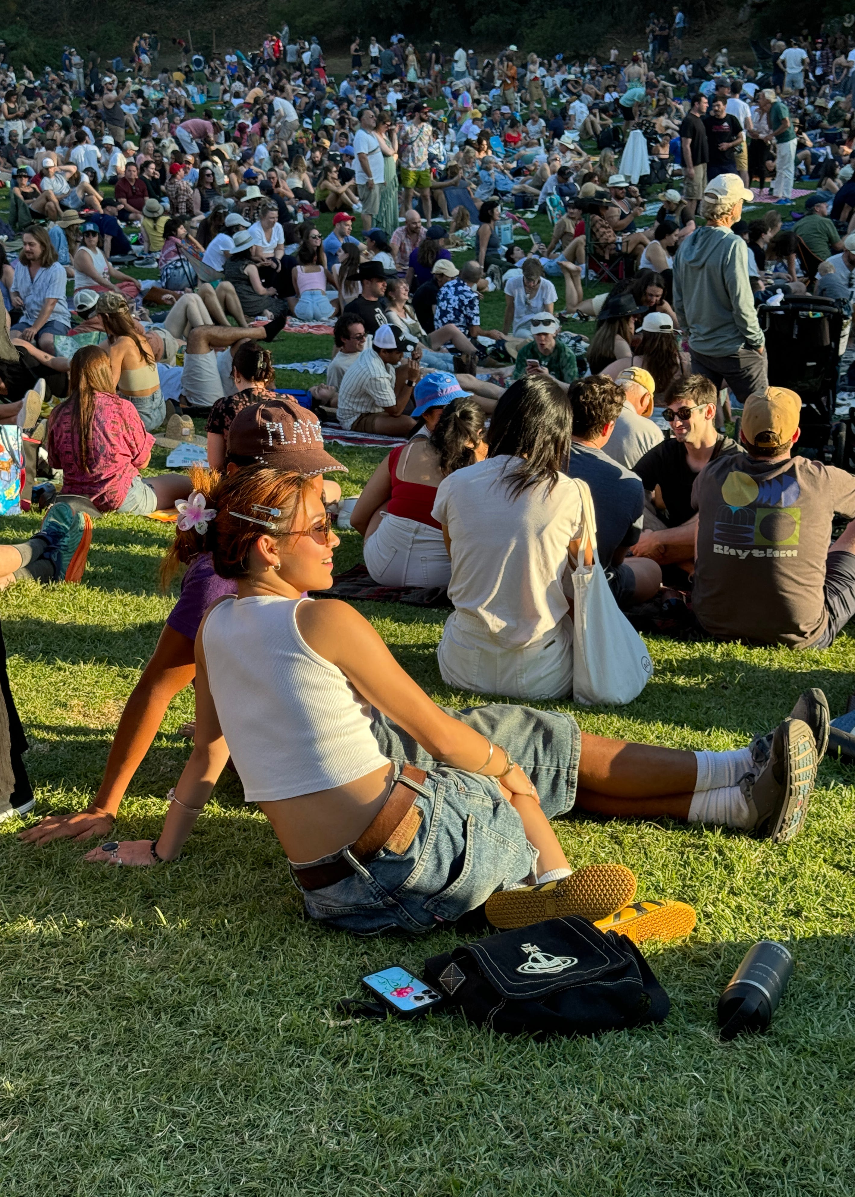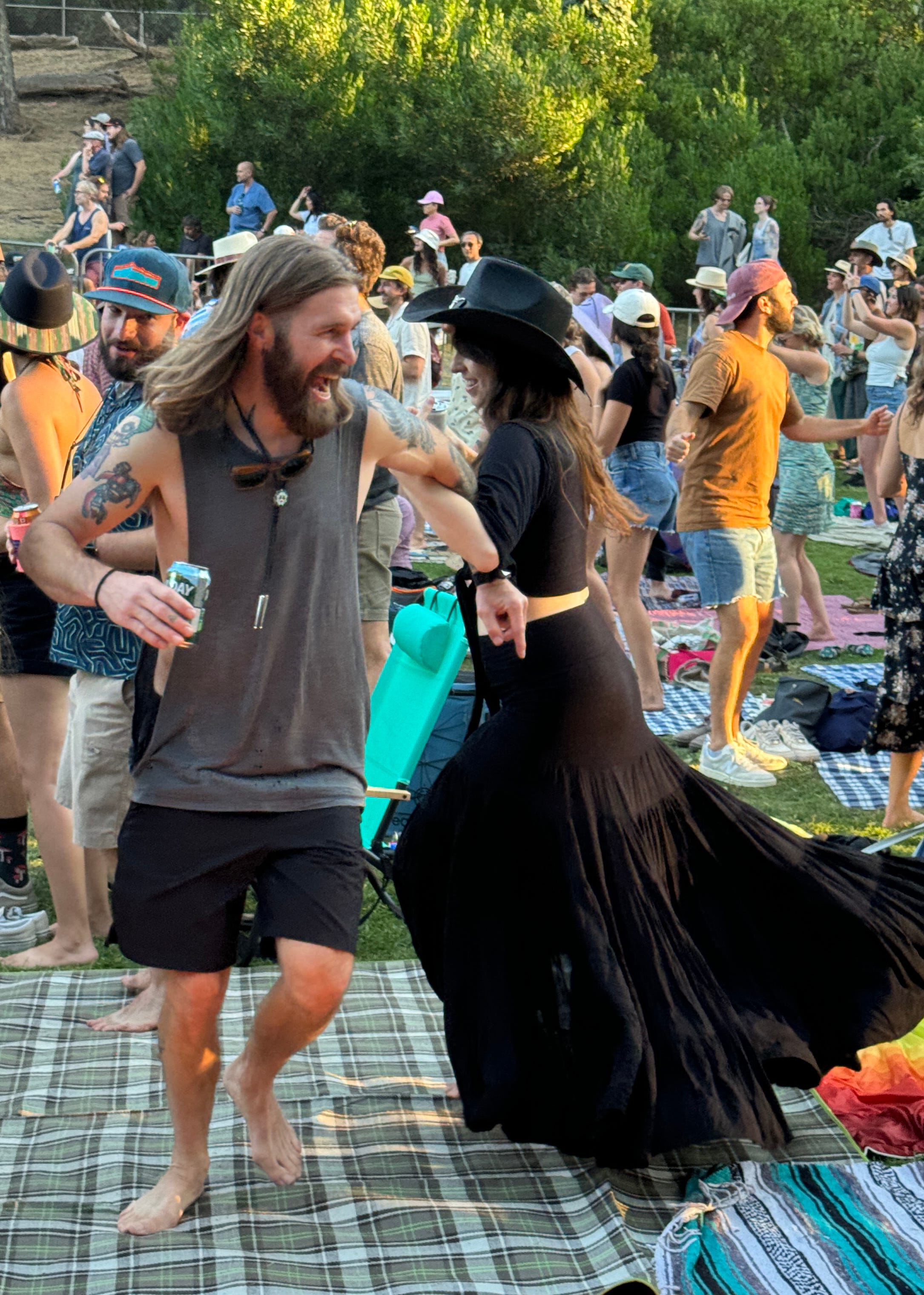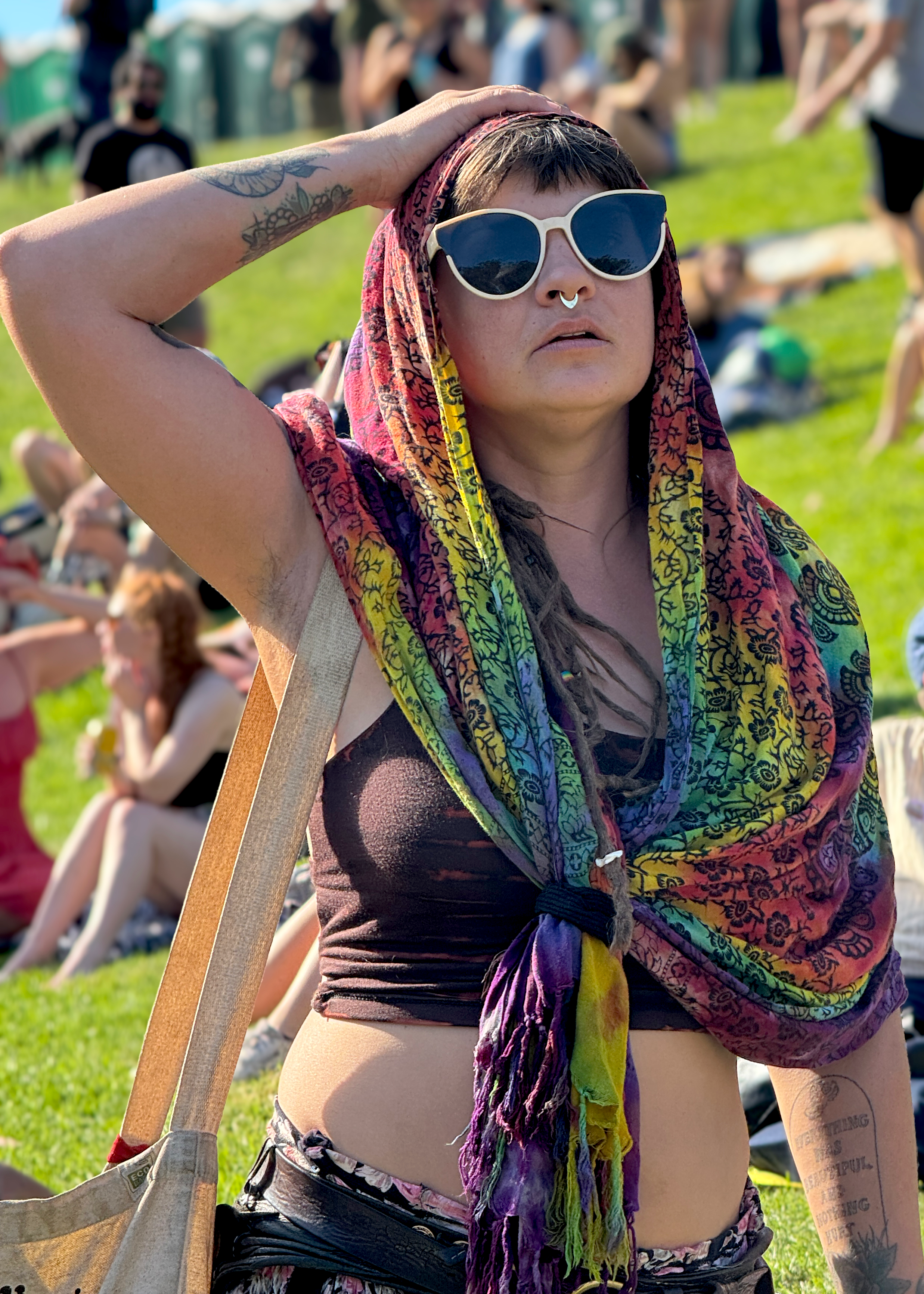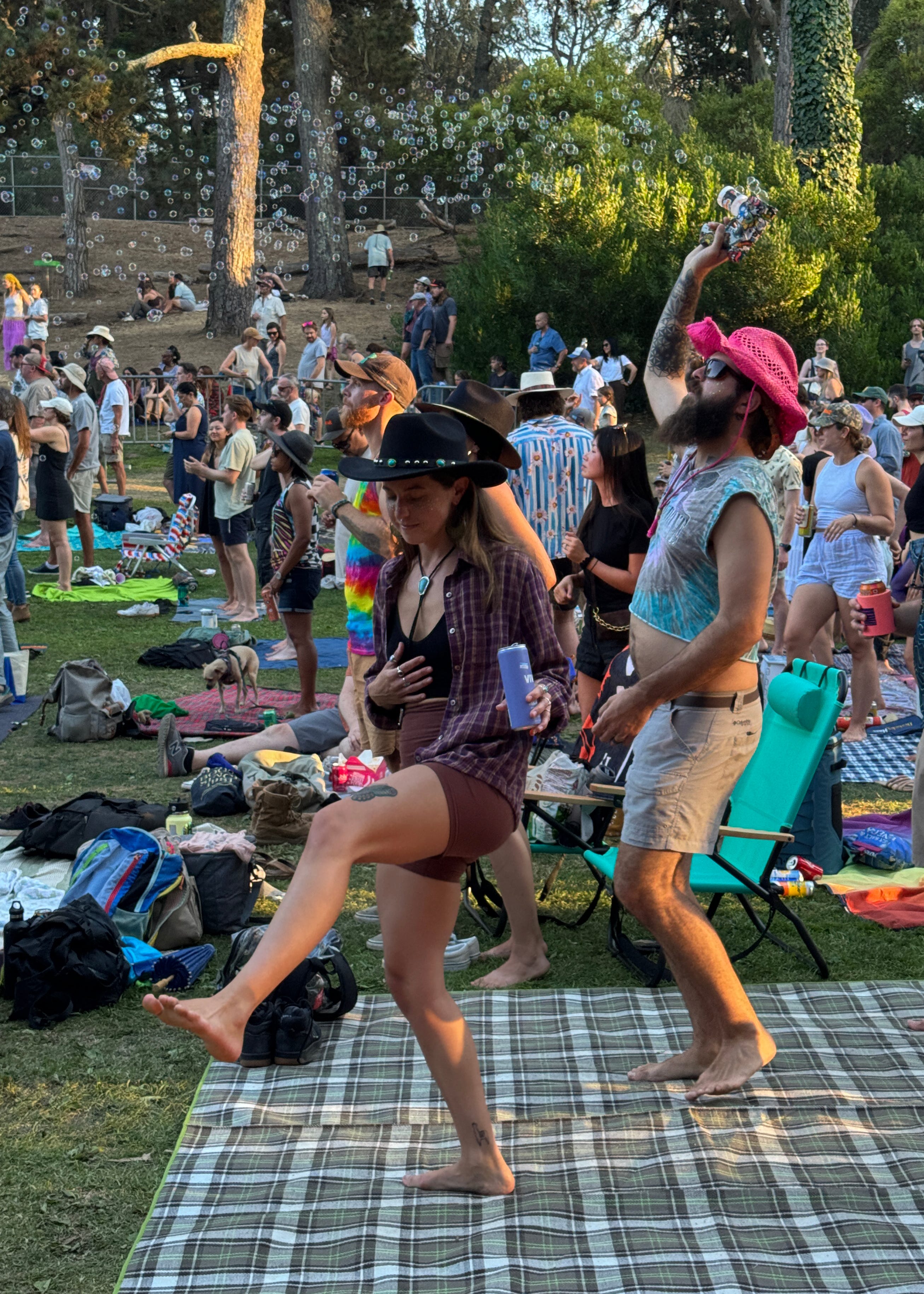 The fashion leaned hard into the boho-western vibe. Straw hats? Check. Cowboy hats? Double check. It felt like everyone took the opportunity to dust off their best western wear, blending “hardly” and “strictly” with ease. Think: boho chic meets “hardly strictly cowboy.” For those of us who didn’t pack sunscreen, hats were a saving grace, perhaps the only one because omg it was hot. Right?