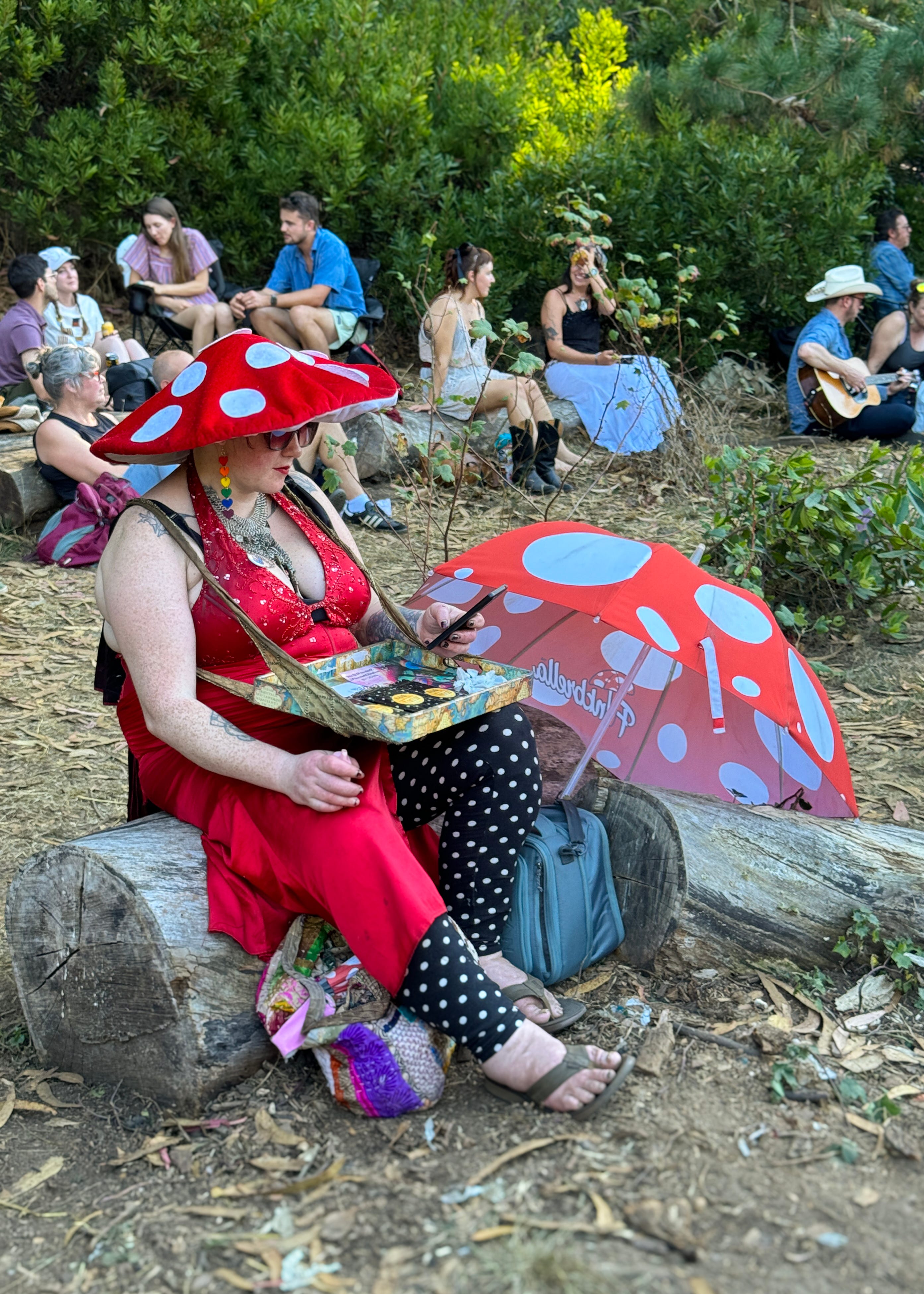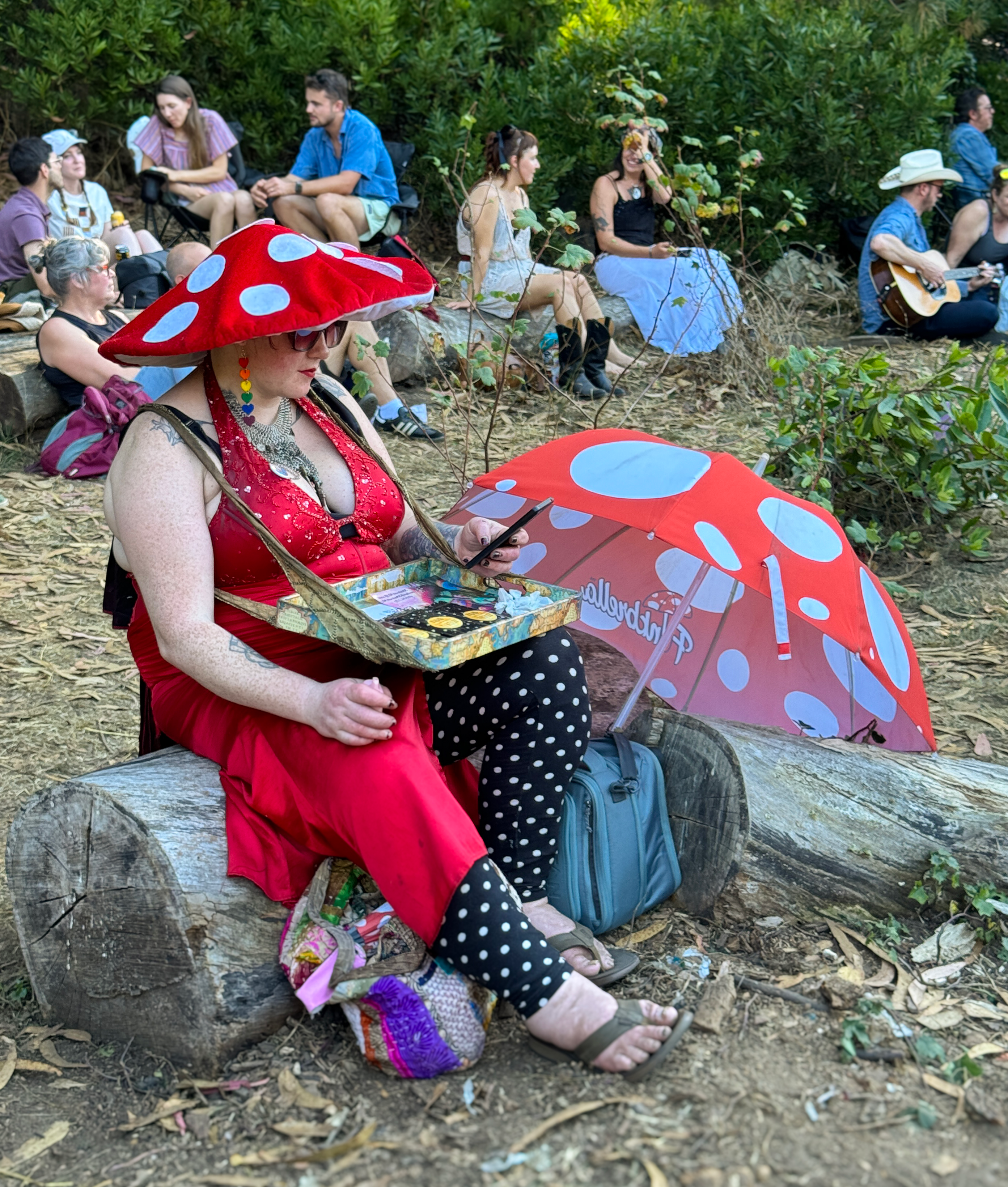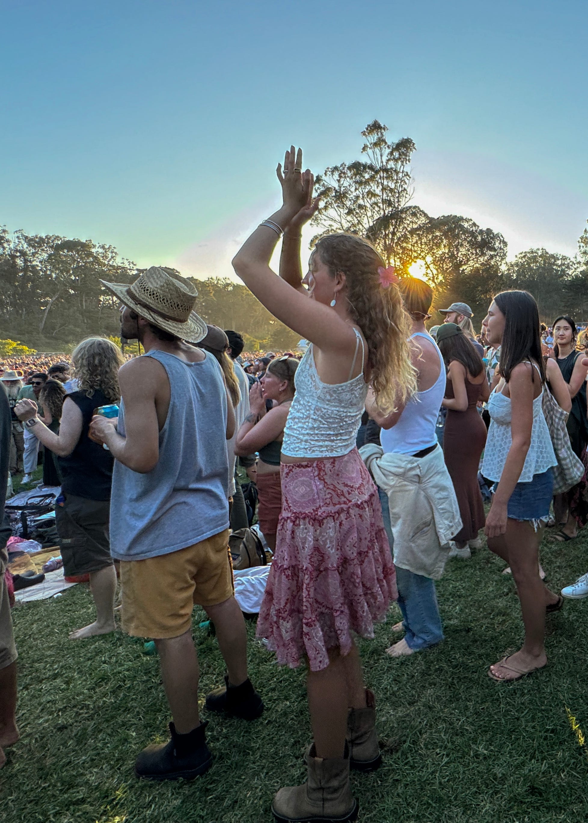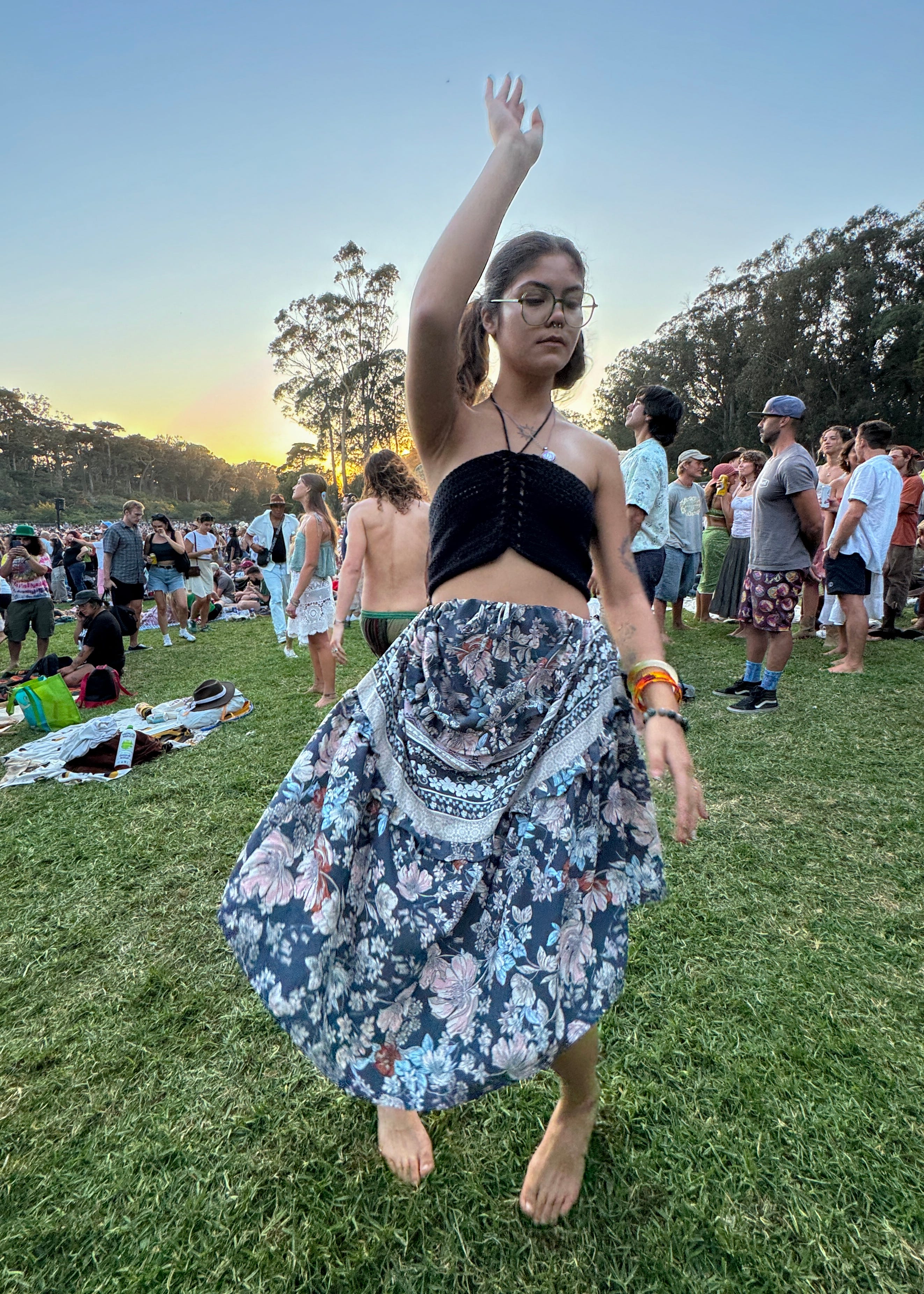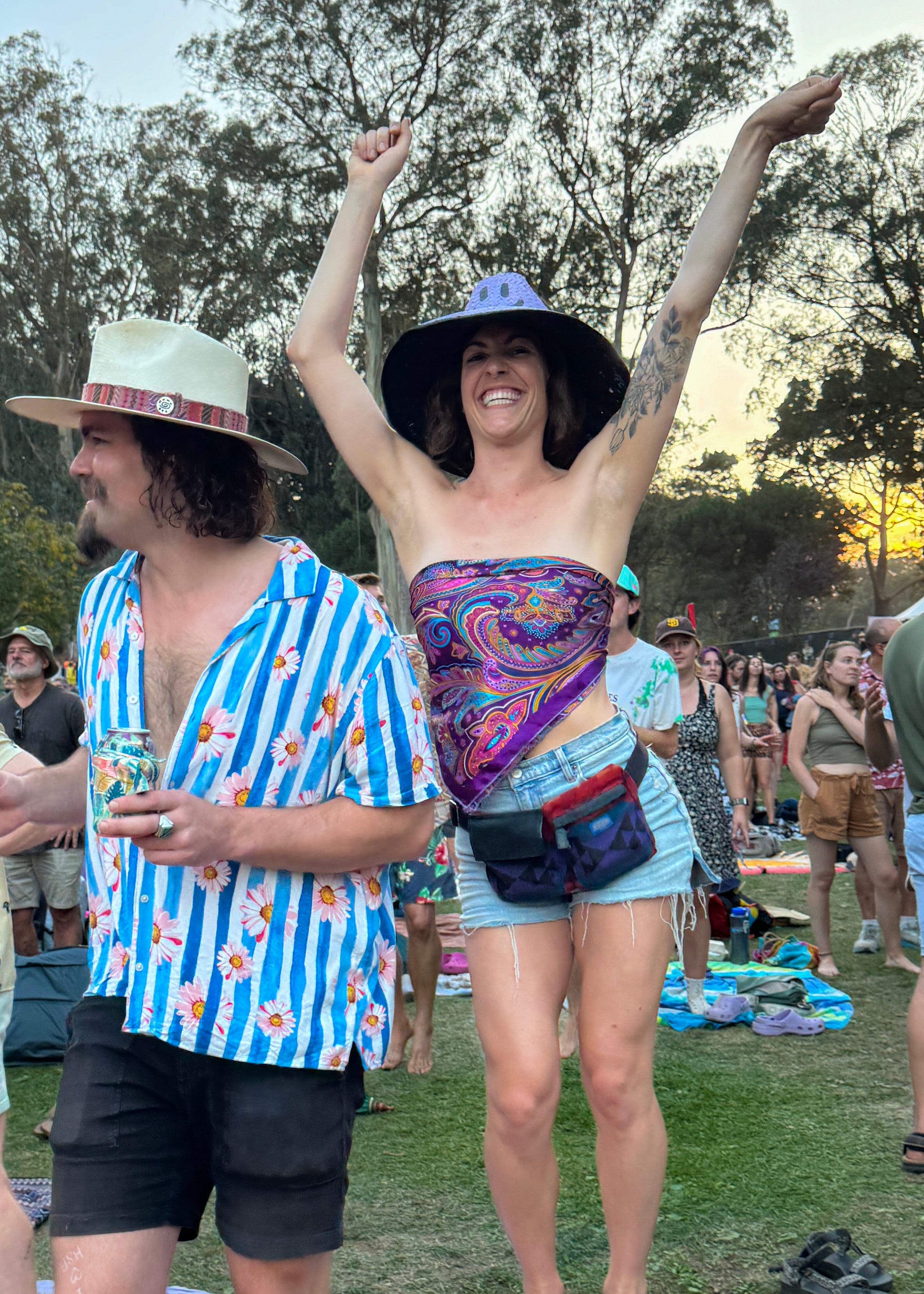 The fashion leaned hard into the boho-western vibe. Straw hats? Check. Cowboy hats? Double check. It felt like everyone took the opportunity to dust off their best western wear, blending “hardly” and “strictly” with ease. Think: boho chic meets “hardly strictly cowboy.” For those of us who didn’t pack sunscreen, hats were a saving grace, perhaps the only one because omg it was hot. Right?
