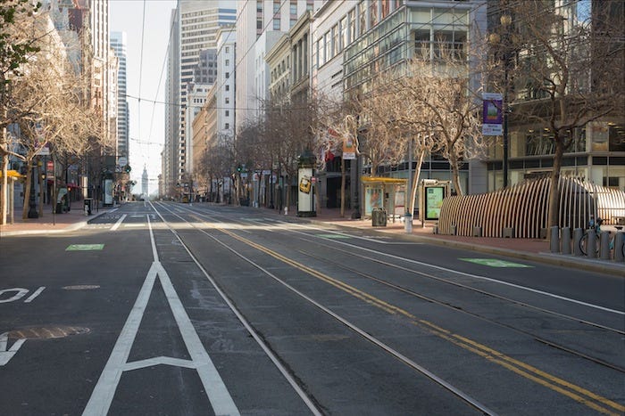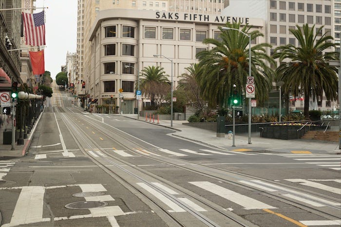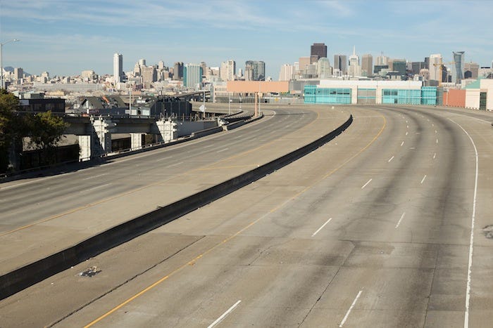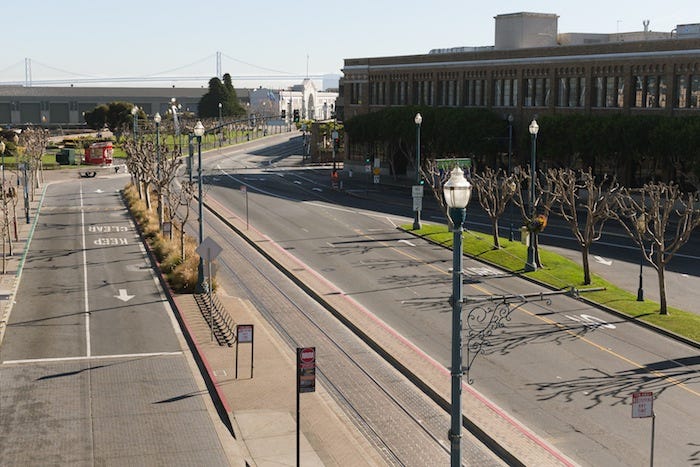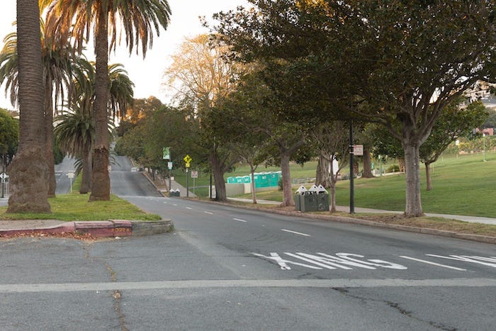 Aside from those rare occasions like Christmas morning and Super Bowl Sunday, it’s almost impossible to find more than a block of empty San Francisco blacktop at any one time. And that’s not even accounting for on-street parking. According to David LaBua, author of Finding the Sweet Spot, there are about 320,000 parking spaces in the city and I’m pretty sure every one of them is taken, like 23 hours a day. So with some strategic timing and a little Photoshop kung fu, I brought this fantasy to life in a handful of otherwise busy locations.
