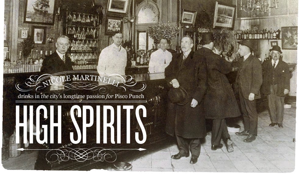 I’m a third-generation San Franciscan but caught the Pisco Punch fire only recently. It’s likely that even my grandma Tess, known to mix a mean Pink Lady, wouldn’t have been a big Pisco drinker — the craze dates back to the late 1800s and suffered a mortal blow with Prohibition. Duncan Nicol invented Pisco Punch at the Bank Exchange & Billiard Saloon, which stood where the Transamerica tower does today. Pisco Punch aficionado Rudyard Kipling described it as “compounded of the shavings of cherubs’ wings.”