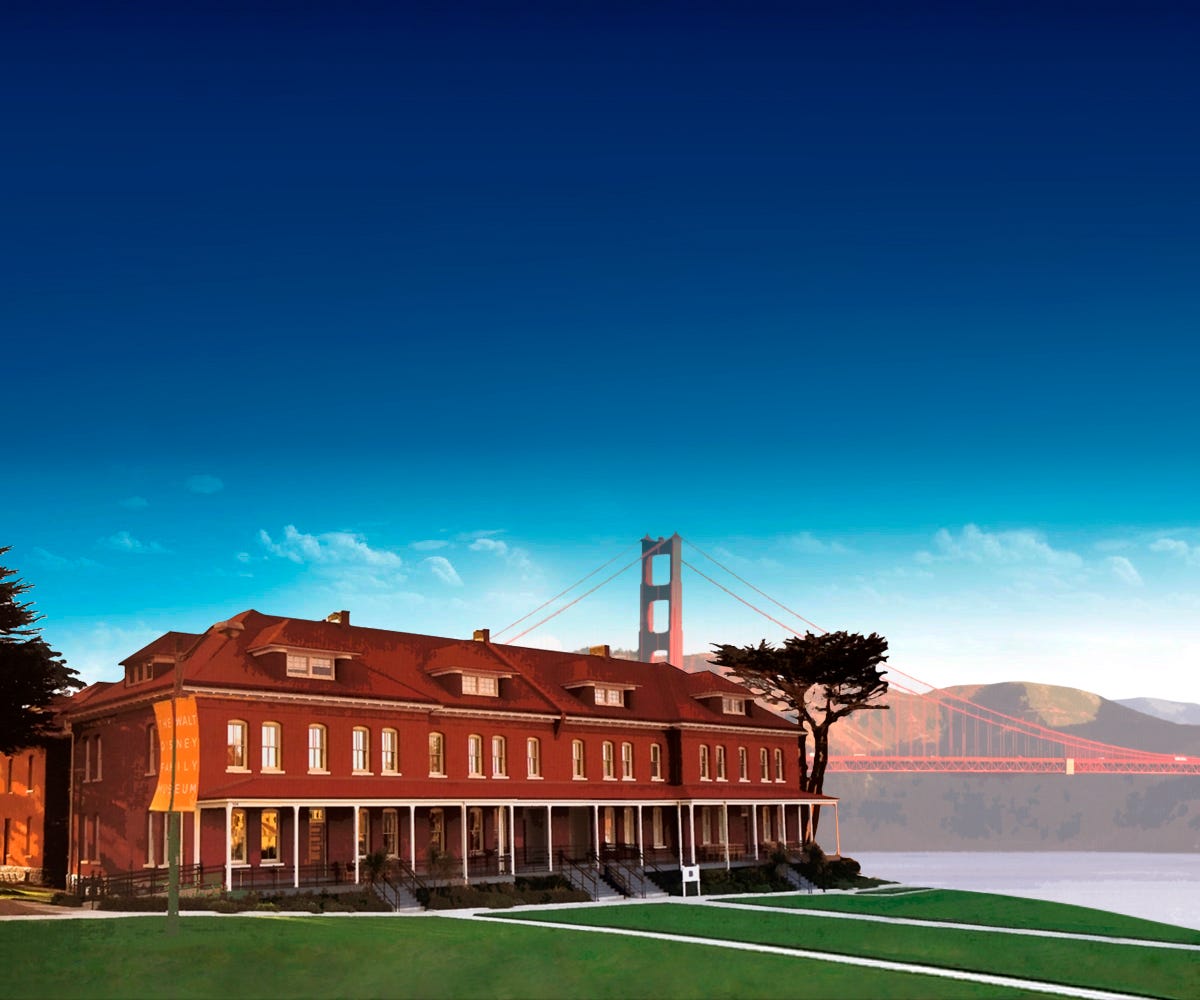 “When they relocated from the Los Angeles area, they moved their collection (of Disney memorabilia) to a warehouse in the Presidio, so they were familiar with this area,” says Komoroske. “They looked all over the country at sites that people would associate with Walt. But Diane really loved the Presidio and thought her father would’ve liked the history of it being a military base.” (Walt Disney joined the Red Cross as a teen and was sent to France during World War I.) “It’s absolutely gorgeous and pristine with the wonderful views. She also wanted to be close by while it was being built and designed. She was here on site with her hard hat on.”