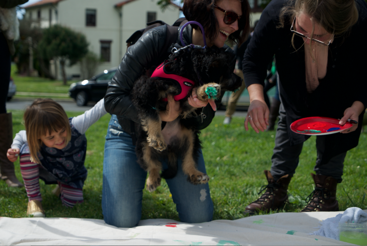 To keep things fresh, I brought in an animal communicator to channel the inner voices of our precious pets. Together, everyone came together and created the largest human tunnel that Patrick has ever attempted to run under. Then, I created a paw print paint station so people could walk away remembering the parade experience with a unique memento.