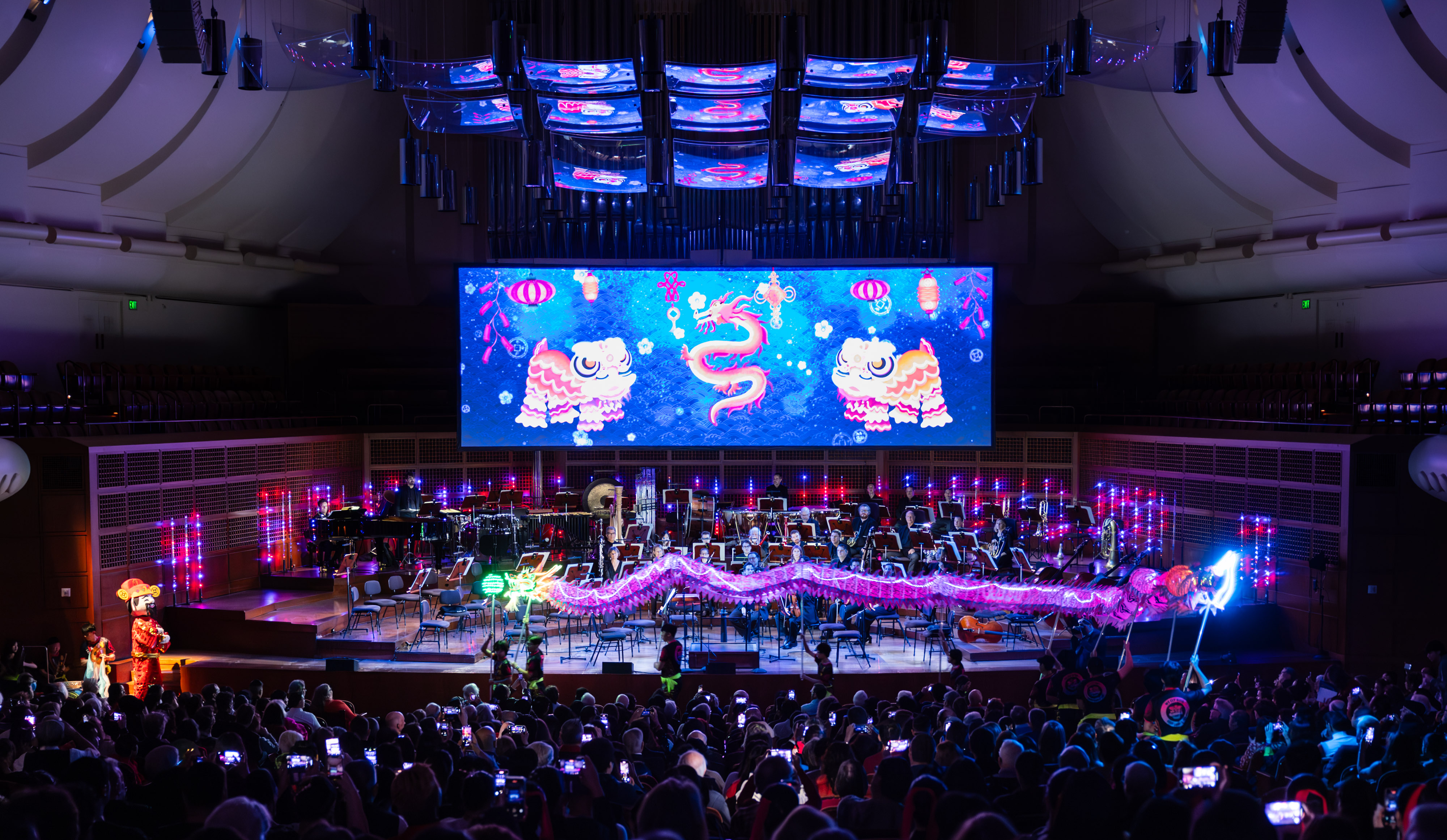 You always know when a dragon dance is about to start. Now in our seats for the concert, the drums gave it away with a rolling rhythm that made my chest vibrate. I remember this last year because that yellow dragon never left us: First in the lobby, then dinner, then the after party; someone held up the dragon’s shaking butt, while another in front opened its mouth for red envelopes.