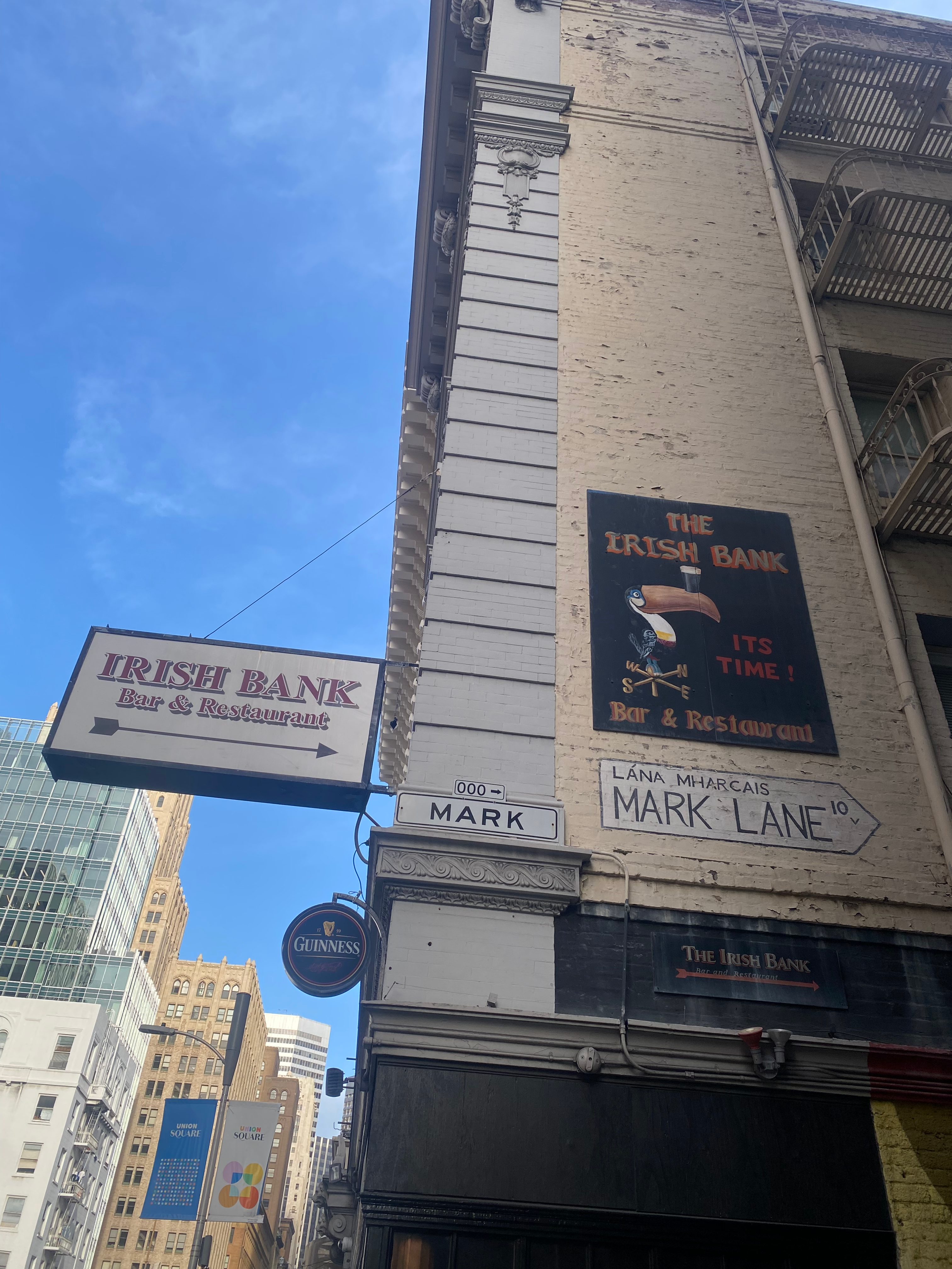 Thus, The Irish Bank: down a forever-shadowy alley off Bush Street and possessing that dank, former coal-cellar feel to it with ruddy lighting. It is the sort of place you can imagine Stephen Dedalus glowering in a corner, thinking about tundishes. And their Guinness pours are, importantly, quite patient.