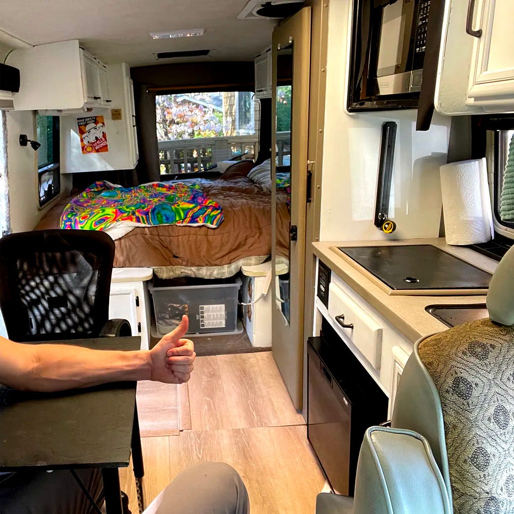 Progressive causes champion rent control and bemoan a NIMBY-ism lack of affordable housing — both of those are solved for in my current life. Millennials dream of going back to the land in rural communes but lack the architecture for it — parking several of these vans next to each other is a great bootstrapped solution.