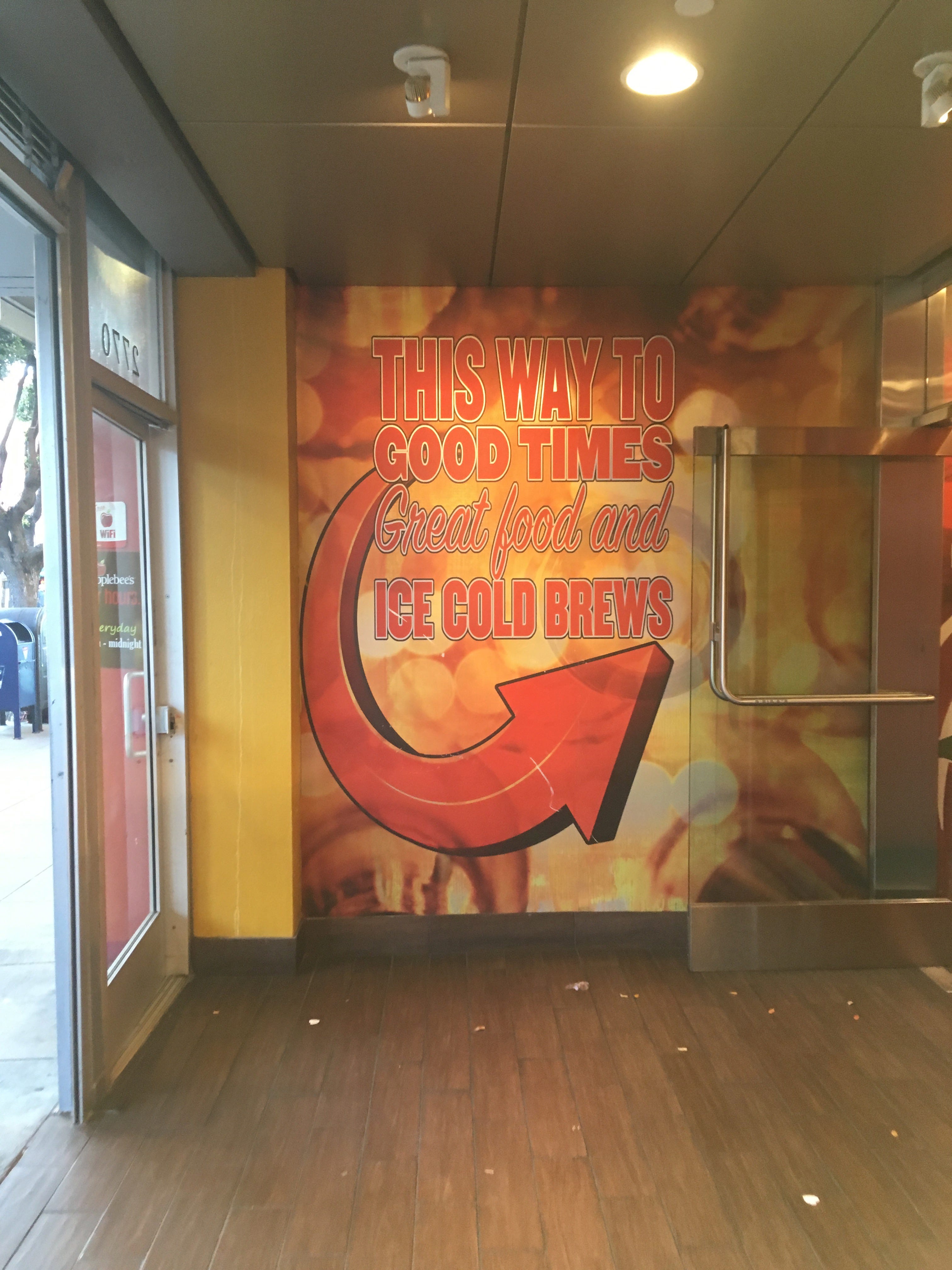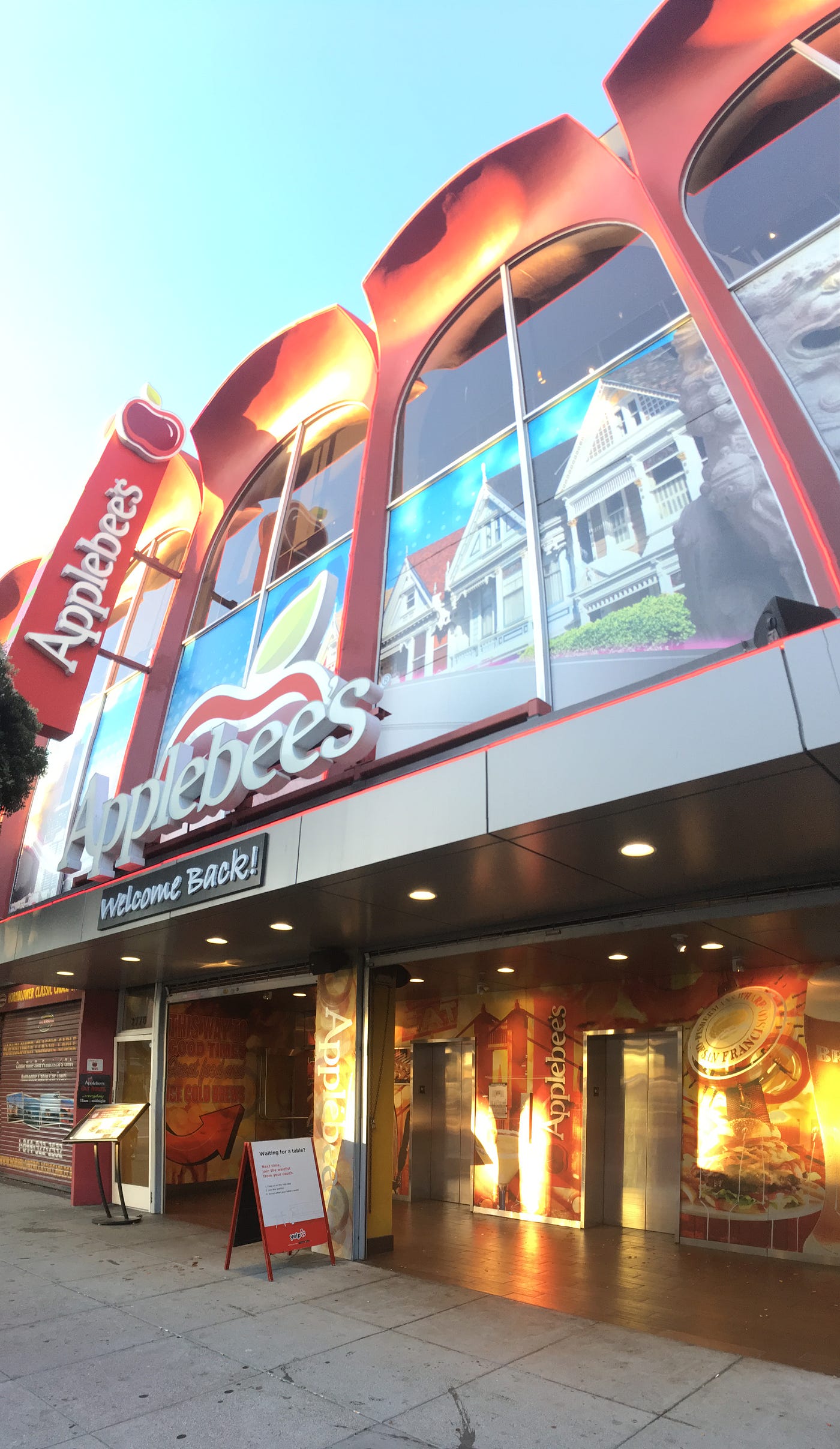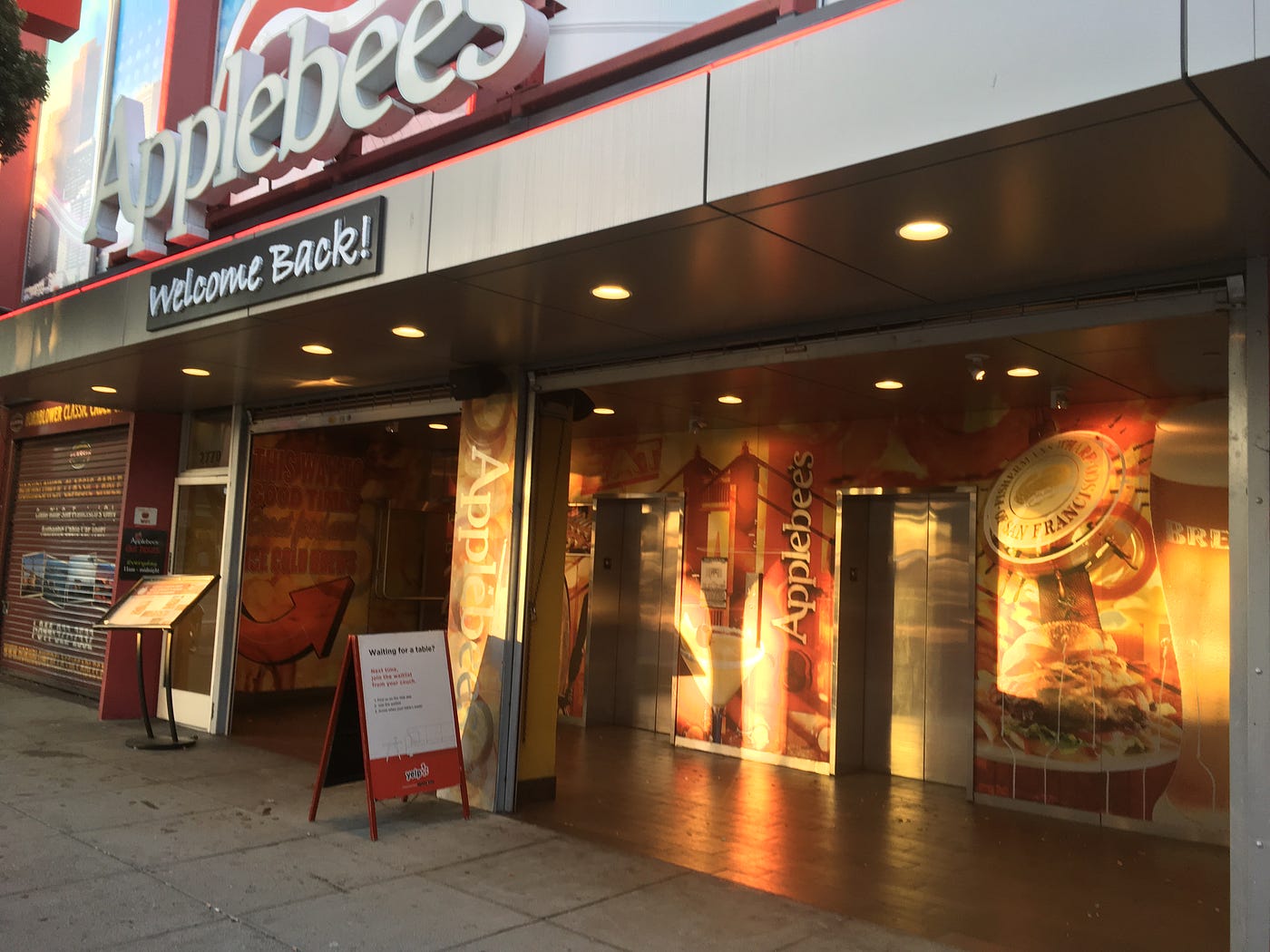 This Applebee’s, on the main tourist strip of Fisherman’s Wharf, has a “flagship” feel to it. I do not know if Applebee’s has flagships the way that companies like Apple and Gap do, but the grandeur of the entrance and the amount of marketing dollars spent on the interior and exterior design suggest that.