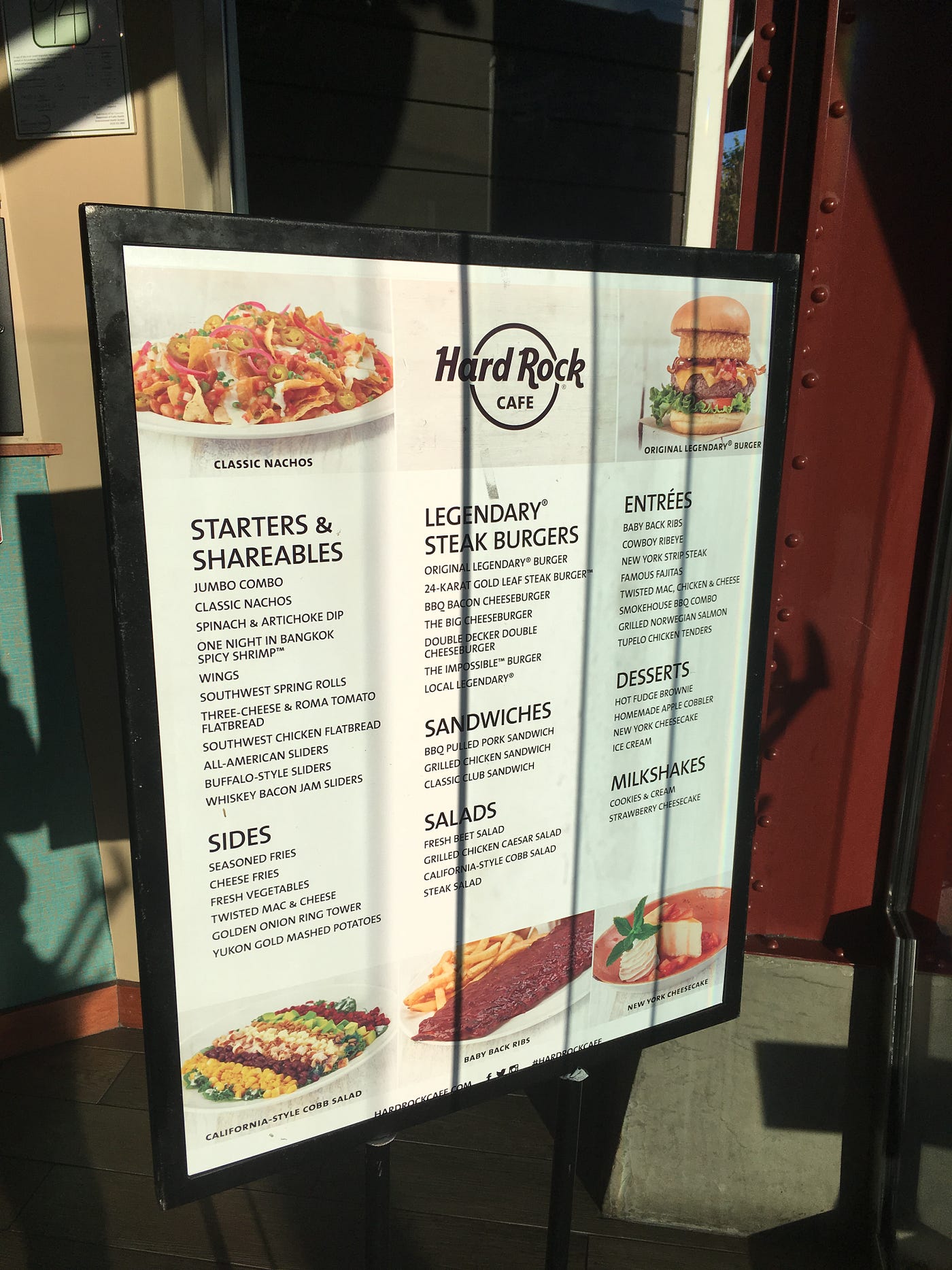 Having never been to a Hard Rock Cafe before, I confess I was confused at first about what it “was.” Is this a restaurant? A clothing store? What is “rock and roll” food? The menu was inscrutable and looked like the menu of any anonymous American brewpub in a middle-class suburb.