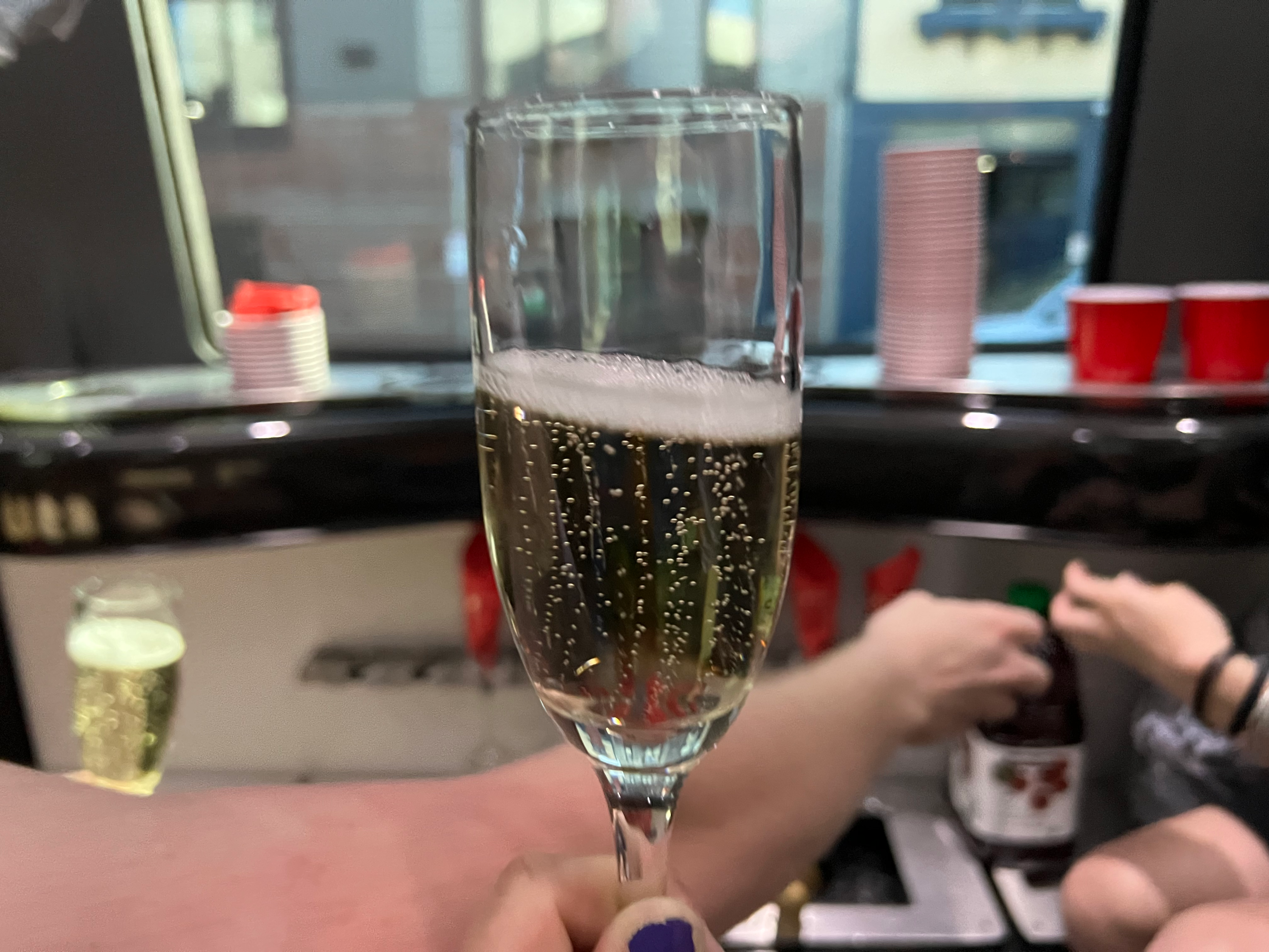 We popped champagne and speculated which surprise songs we might get (I was hoping for “New Romantics” and “Cornelia Street”), listening to non-Taylor pop songs, deciding to save her music for the concert.